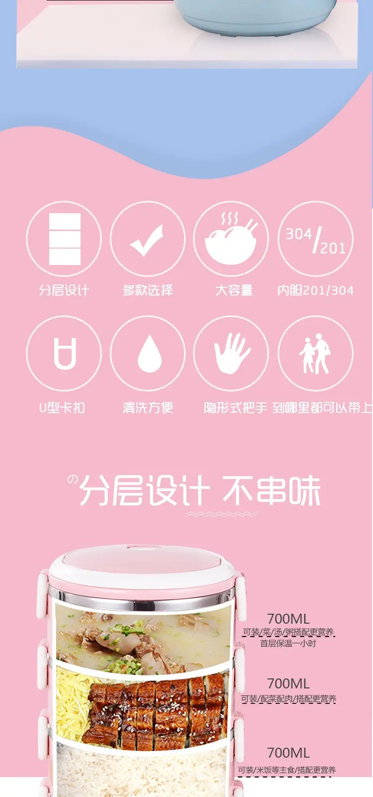 Thickened Stainless Steel Lunch Box for Adults, Large Capacity Multi-Layer Insulated Lunch Box for Office Workers, Student Girls' Compartmentalized Insulated Container