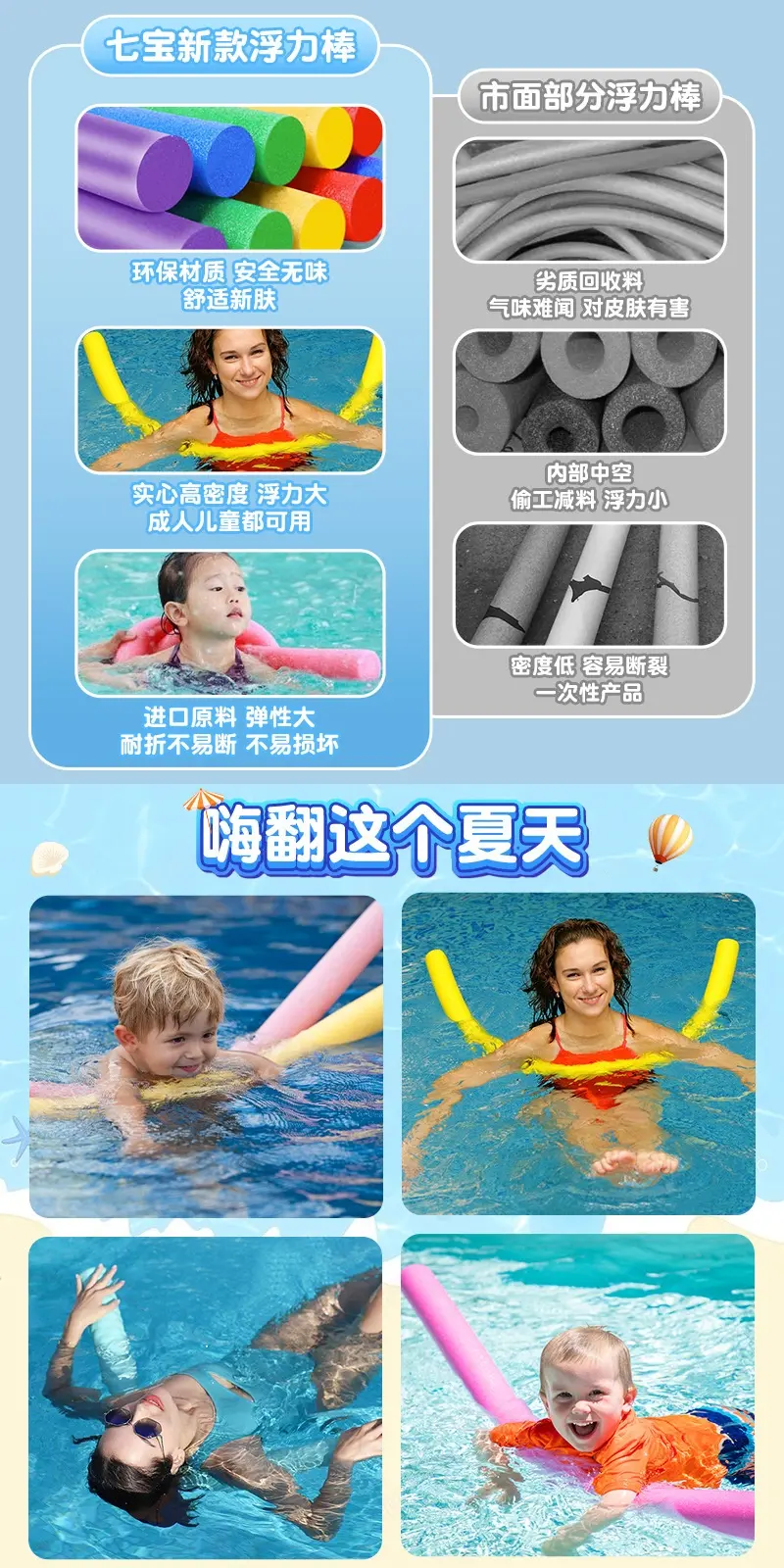 Learn to Swim Buoyancy Stick Floating Board Magic Tool Children's Equipment Floating Chair Buoyancy Strip Adult Foam Stick Life-Saving Sponge Strip