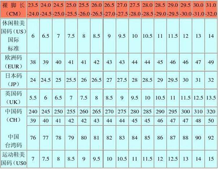 USA 5 5.5 6 7 7.5 8.5 9.5 10 10.5 12 13 14 15.5