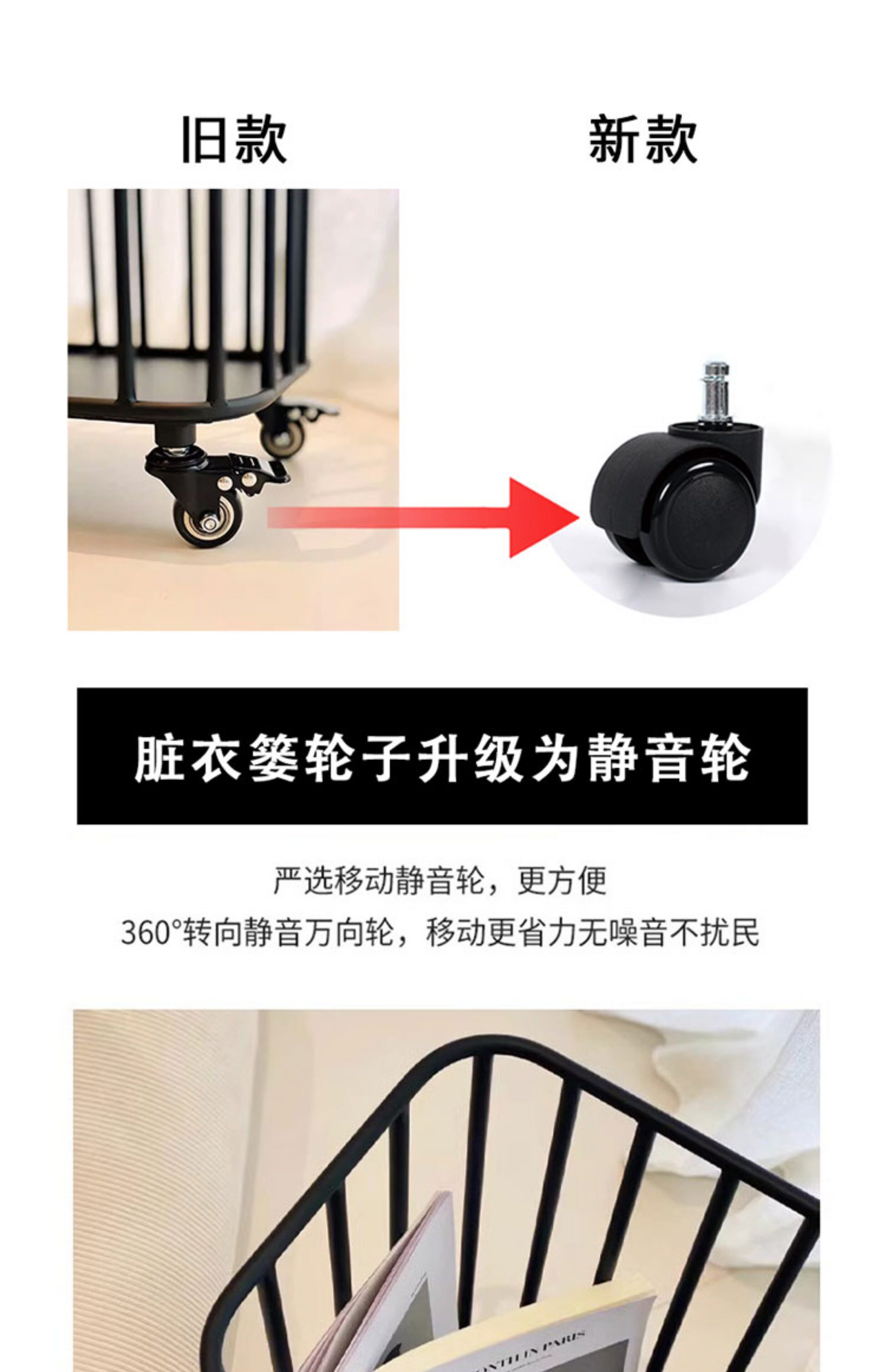 Household Wrought Iron Dirty Clothes Storage Basket, High-Value Small Cart, Creative Laundry Basket, Dirty Clothes Basket