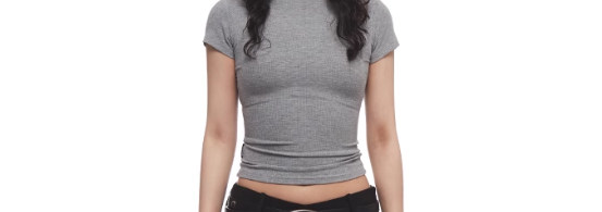 American Style Spicy Girl Tight-Fitting Half-High Collar Short Top for Women, Summer 2025 New Slim-Fit Regular Shoulder Solid Color Short-Sleeve T-Shirt