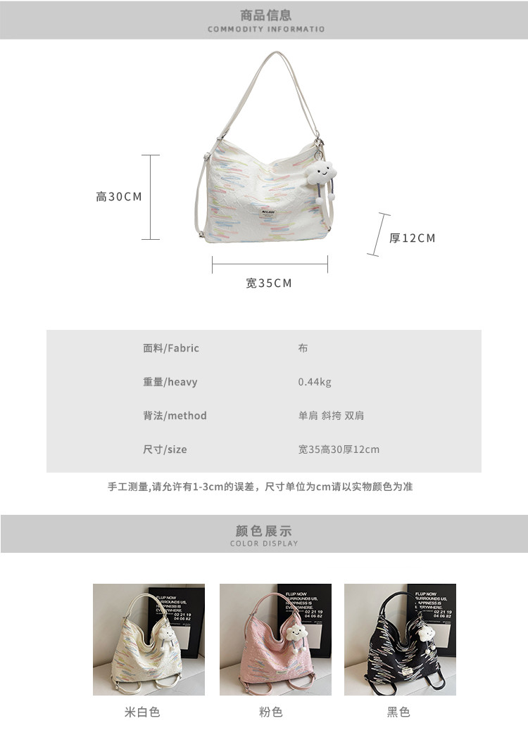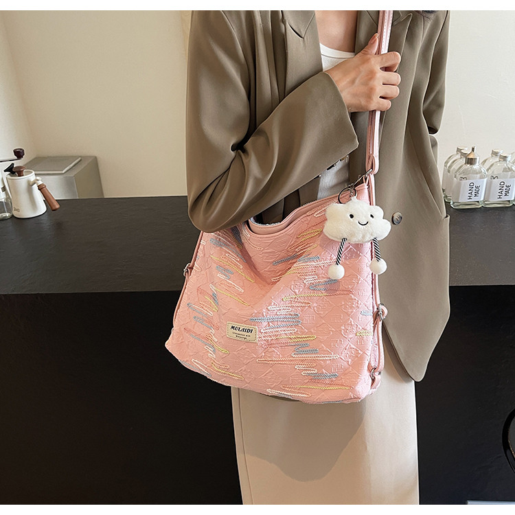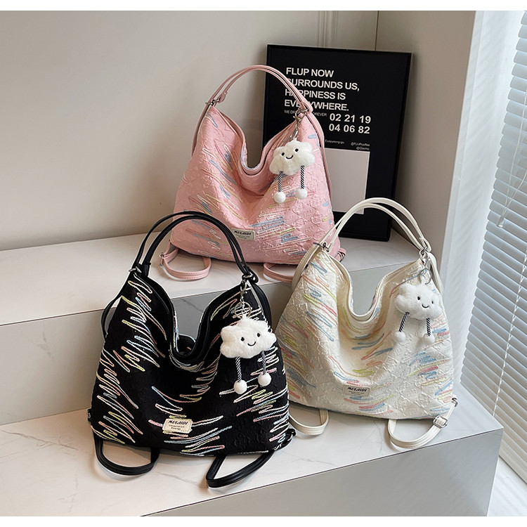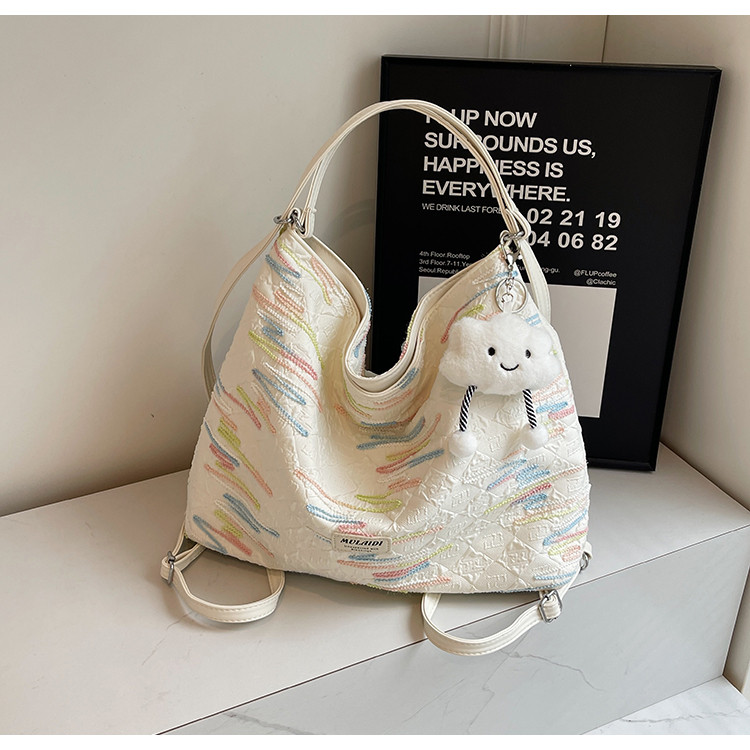 Large-Capacity Tote Bag, Spring and Summer Style, Single Shoulder Crossbody Bag, High-End Versatile Commuter Backpack, Three-Use Niche Canvas Bag