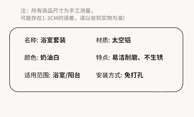 Color Classification Z1 Pro Bath Towel Rack 40cm with Double Pole,Z1 Pro Bath Towel Rack 50cm with Double Pole,Z1 Pro Bath Towel Rack 60cm with Double Pole,Z1 Pro Bath Towel Rack 70cm with Double Pole,Z1 Plus Bath Towel Rack 40cm with Row Hooks,Z1 Plus Bath Towel Rack 50cm with Row Hooks,Z1 Plus Bath Towel Rack 60cm with Row Hooks,Z1 Plus Bath Towel Rack 70cm with Row Hooks,Z1 Plus Two-Piece Set (Towel Rack [with Row of Hooks] + 5 Hooks),Z1 Plus Two-Piece Set (Towel Rack [with Row of Hooks] + Toilet Brush),Z1 Plus Two-Piece Set (Towel Rack [with Row Hooks] + Tissue Box),Z1 Plus Two-Piece Set (Towel Rack [with Row Hooks] + Double Towel Bars),Z1 Plus Two-Piece Set (Towel Rack [with Row Hooks] + Triangular Basket*2),Z1 Plus Three-Piece Set (Towel Rack [with Row of Hooks] + Toilet Brush + Tissue Box),Z1 Plus Three-Piece Set (Towel Rack [with Row of Hooks] + Double Towel Bar + Toilet Brush),Z1 Plus Three-Piece Set (Towel Rack [with Row of Hooks] + Double Towel Pole + Tissue Box),Z1 Plus Three-Piece Set (Towel Rack [with Row of Hooks] + Triangular Basket * 2 + Toilet Brush),Z1 Plus Three-Piece Set (Towel Rack [with Row of Hooks] + Triangular Basket * 2 + Tissue Box),Z1 Plus Three-Piece Set (Towel Rack [with Row of Hooks] + Triangular Basket * 2 + Double Towel Bars),Z1 Plus Four-Piece Set (Towel Rack [with Row of Hooks] + Triangular Basket * 2 + Double Towel Bars + Toilet Brush),Z1 Plus Four-Piece Set (Towel Rack [with Row of Hooks] + Triangular Basket * 2 + Double Towel Bars + 5 Hooks),Z1 Plus Four-Piece Set (Towel Rack [with Row of Hooks] + Triangular Basket * 2 + Tissue Box + Toilet Brush),Z1 Plus Four-Piece Set (Towel Rack [with Row of Hooks] + Triangular Basket * 2 + Double Towel Bars + Tissue Box),Z1 Plus Five-Piece Set (Towel Rack [with Row of Hooks] + Triangular Basket * 2 + Double Towel Bars + Tissue Box + Toilet Brush),Z1 Plus Five-Piece Set (Towel Rack [with Row of Hooks] + Triangular Basket * 2 + Double Towel Bars + Tissue Box + 5 Hooks),Z1 Plus Six-Piece Set (Towel Rack [with Row of Hooks] + Triangular Basket * 2 + Double Towel Bars + Tissue Box + Toilet Brush + 5 Hooks),Z1 Pro Two-Piece Set (Towel Rack [with Double Pole] + 5 Hooks) +,Z1 Pro Two-Piece Set (Towel Rack [with Double Pole] + Toilet Brush),Z1 Pro Two-Piece Set (Towel Rack [with Double Pole] + Tissue Box),Z1 Pro Two-Piece Set (Towel Rack [with Double Poles] + Towel Double Pole),Z1 Pro Two-Piece Set (Towel Rack [with Double Pole] + Triangular Basket*2),Z1 Pro Three-Piece Set (Towel Rack [with Double Pole] + Toilet Brush + Tissue Box),Z1 Pro Three-Piece Set (Towel Rack [with Double Poles] + Towel Double Pole + Toilet Brush),Z1 Pro Three-Piece Set (Towel Rack [with Double Poles] + Towel Double Pole + Tissue Box),Z1 Pro Three-Piece Set (Towel Rack [with Double Pole] + Triangular Basket * 2 + Toilet Brush),Z1 Pro Three-Piece Set (Towel Rack [with Double Poles] + Triangular Basket * 2 + Tissue Box),Z1 Pro Three-Piece Set (Towel Rack [with Double Poles] + Triangular Basket * 2 + Towel Double Poles),Z1 Pro Four-Piece Set (Towel Rack [with Double Poles] + Triangular Basket * 2 + Towel Double Poles + 5 Hooks),Z1 Pro Four-Piece Set (Towel Rack [with Double Poles] + Triangular Basket * 2 + Towel Double Poles + Toilet Brush),Z1 Pro Four-Piece Set (Towel Rack [with Double Poles] + Triangular Basket * 2 + Tissue Box + Toilet Brush),Z1 Pro Four-Piece Set (Towel Rack [with Double Poles] + Triangular Basket * 2 + Towel Double Poles + Tissue Box),Z1 Pro Five-Piece Set (Towel Rack [with Double Poles] + Triangular Basket * 2 + Towel Double Poles + Tissue Box + Toilet Brush),Z1 Pro Five-Piece Set (Towel Rack [with Double Poles] + Triangular Basket * 2 + Towel Double Poles + Tissue Box + 5 Hooks),Z1 Pro Six-Piece Set (Towel Rack [with Double Poles] + Triangular Basket * 2 + Towel Double Poles + Tissue Box + Toilet Brush + 5 Hooks),Z1 Plus Triangular Basket*2,Z1 Plus Double Pole,Z1 Plus Tissue Box,Z1 Plus Toilet Brush,F1 [Cream White] Towel Double Rod 50cm,F1 [Cream White] Towel Double Rod 60cm