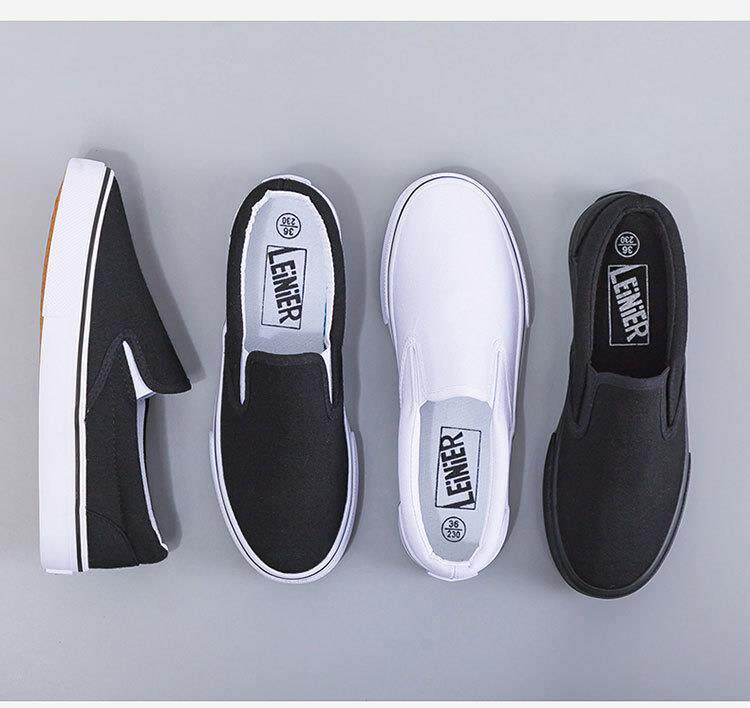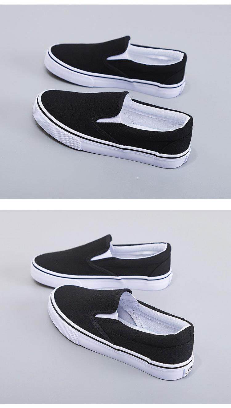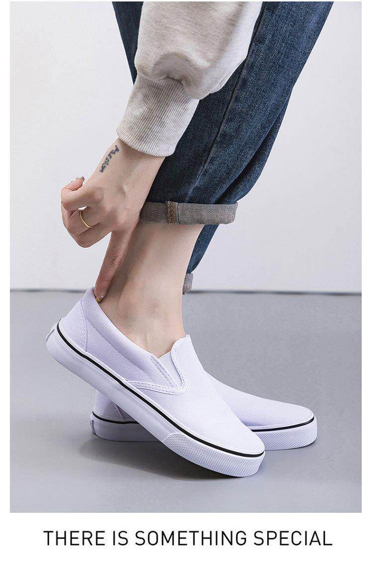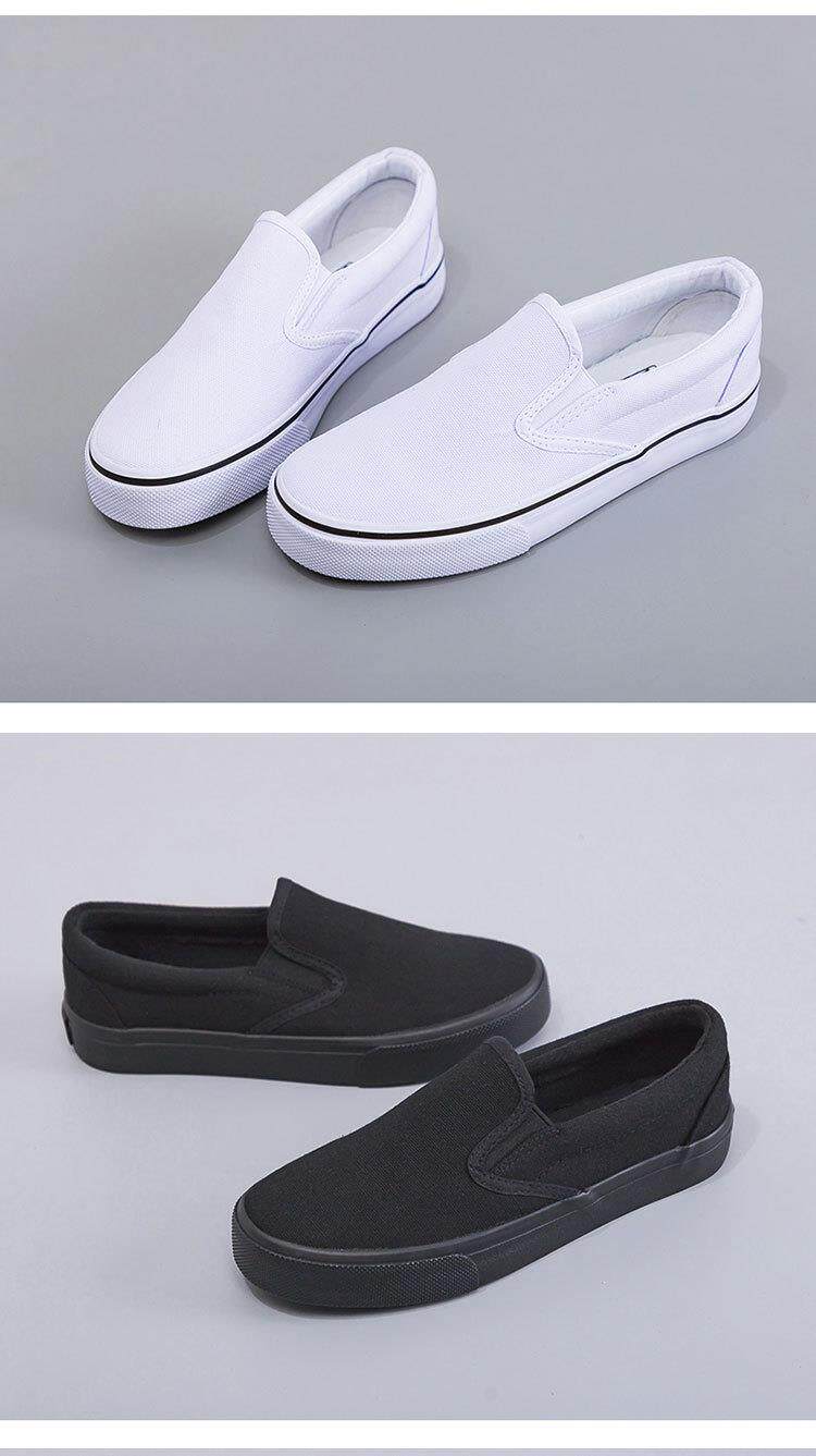 Slip-On White Canvas Shoes, Hand-Painted Black and White Canvas Shoes, Lazy Couple Shoes, Hospital Nurse Shoes, Rainier 227