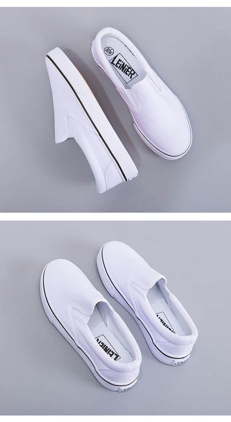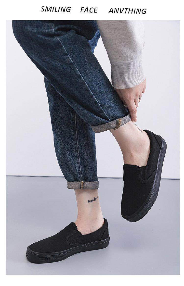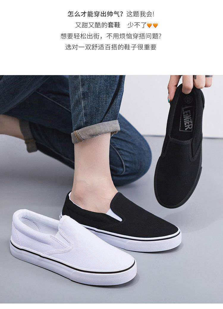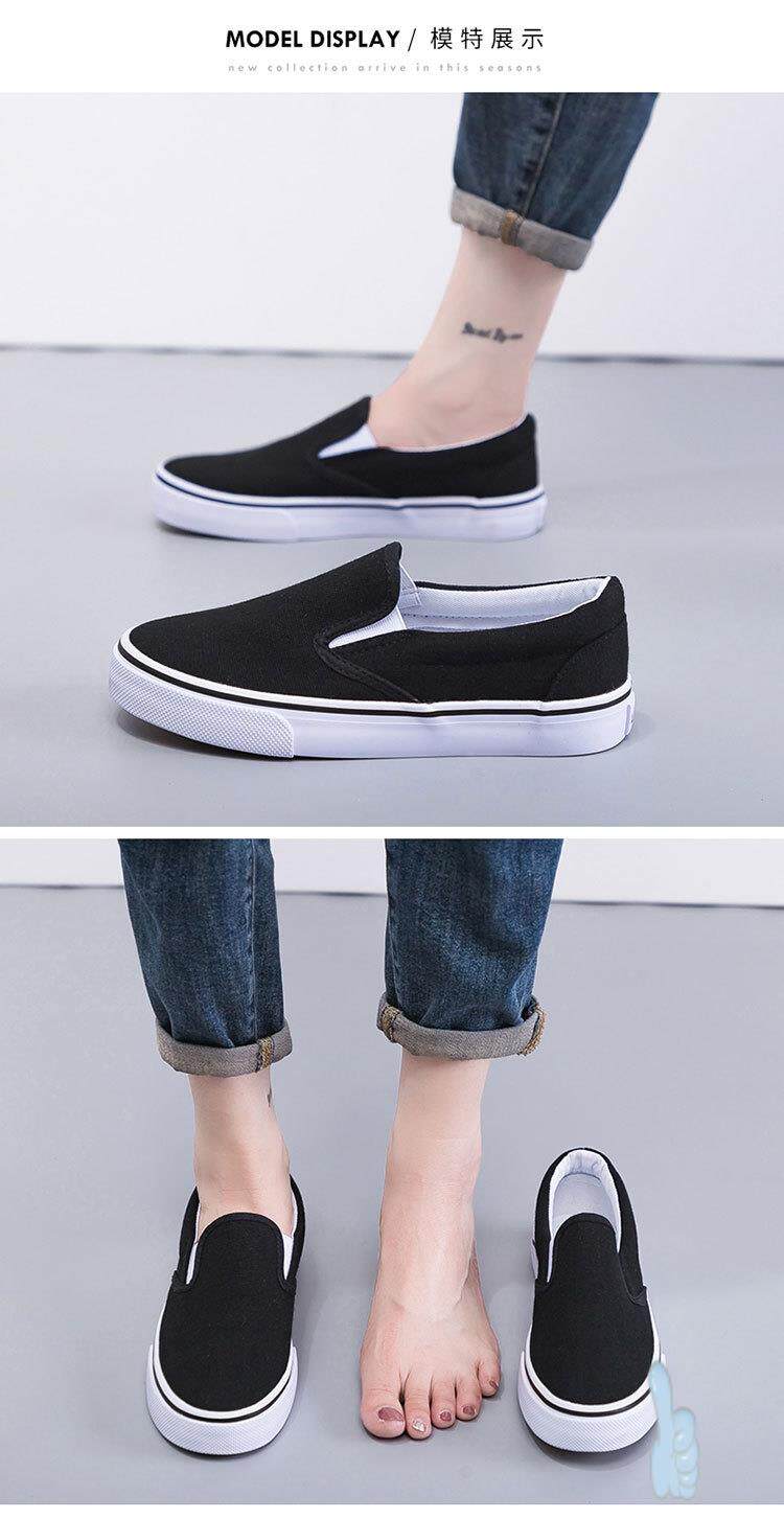 Slip-On White Canvas Shoes, Hand-Painted Black and White Canvas Shoes, Lazy Couple Shoes, Hospital Nurse Shoes, Rainier 227