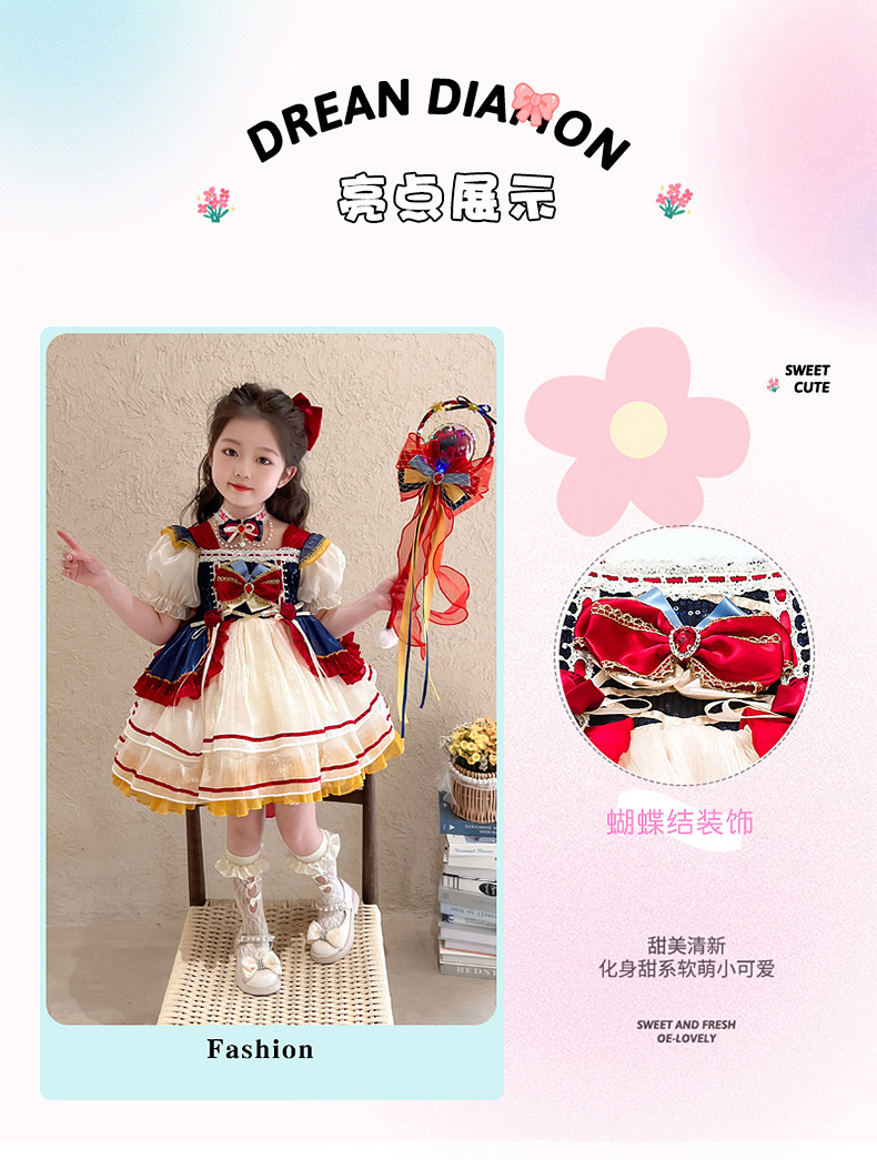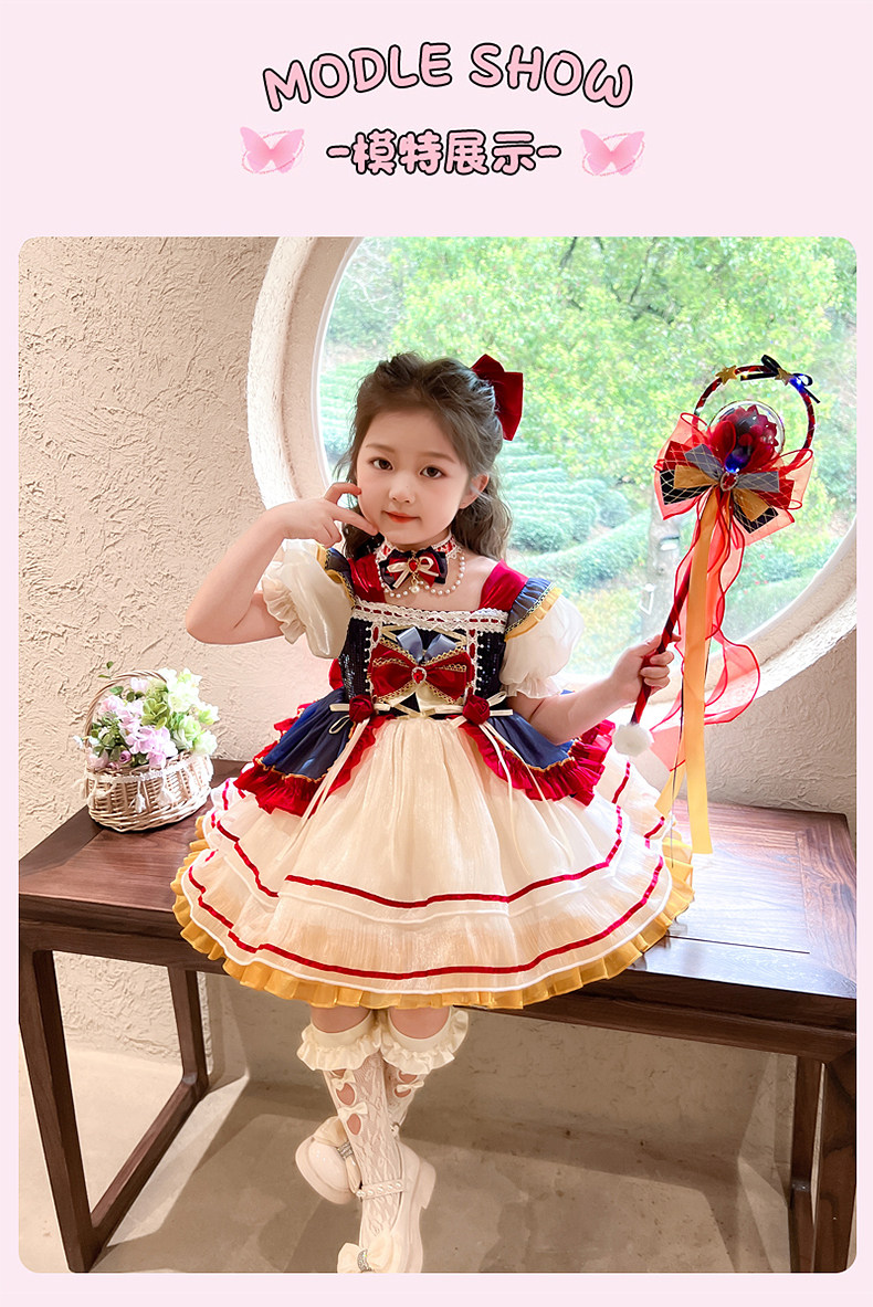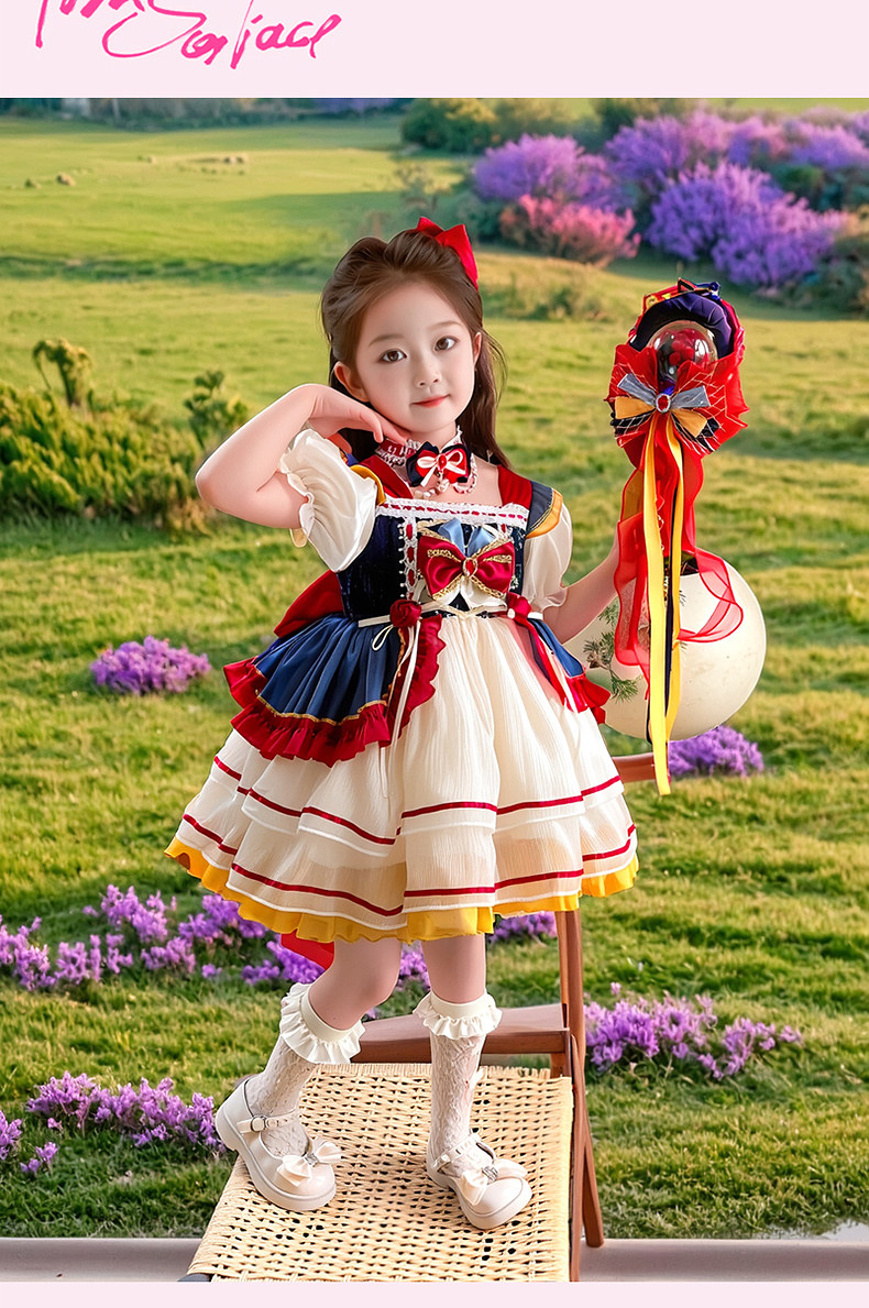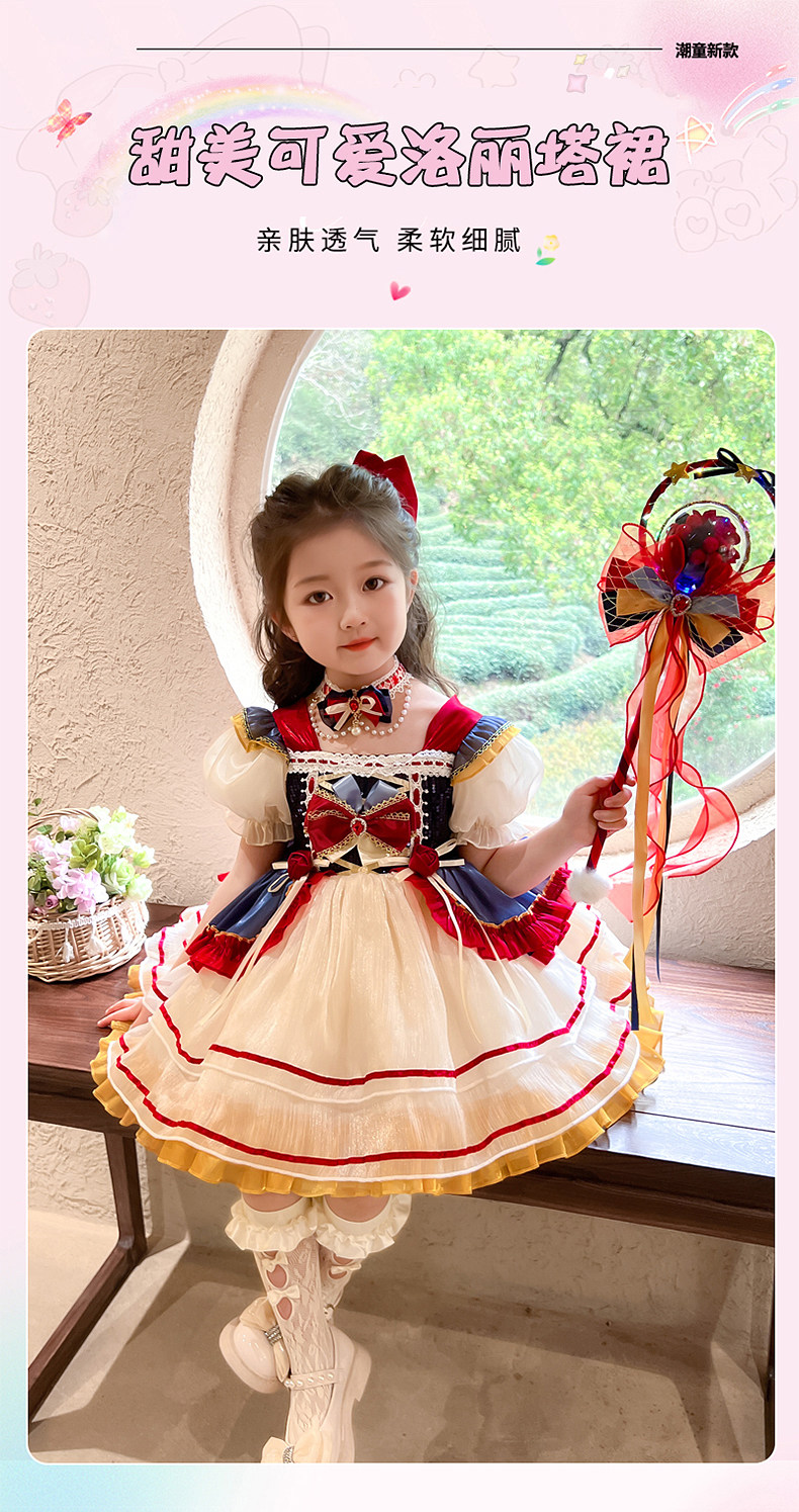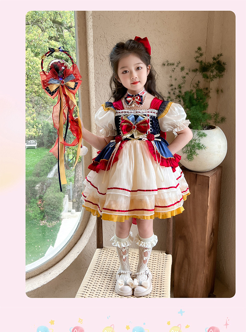 Snow White Dress for Girls, Lolita Style, Summer 2025 New Children's Dress, Birthday Dress, Girl's Tutu Skirt