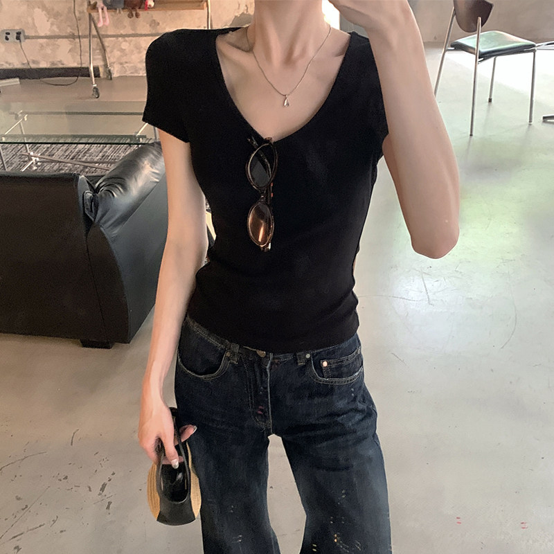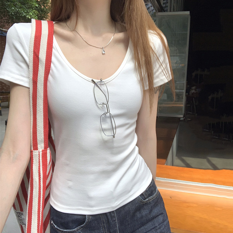Korean-Style U-Neck Slim-Fit T-Shirt Short-Sleeve Women's 2025 Summer New Niche Design Solid Color Versatile Top
