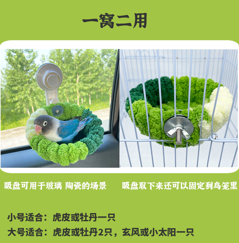 New Type of Bird Nest for Parrots, Suitable for All Seasons, Outdoor Suction Cup, Car-Mounted, for Lovebirds and Budgerigars, Handmade