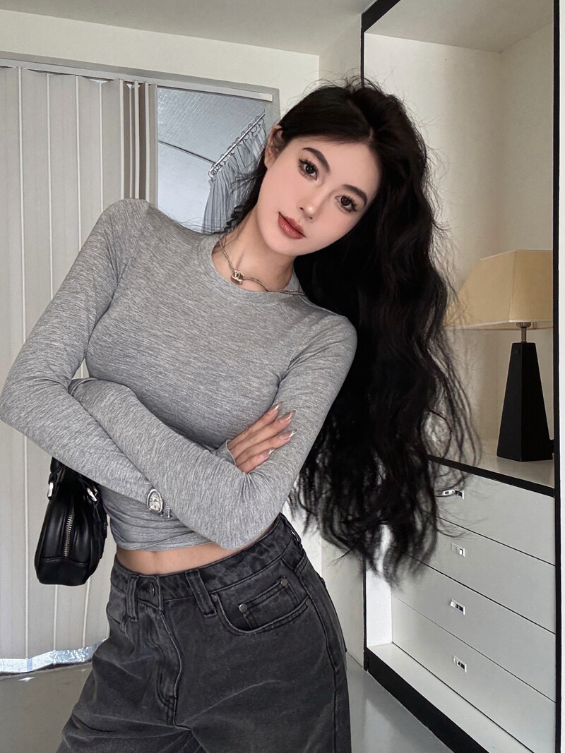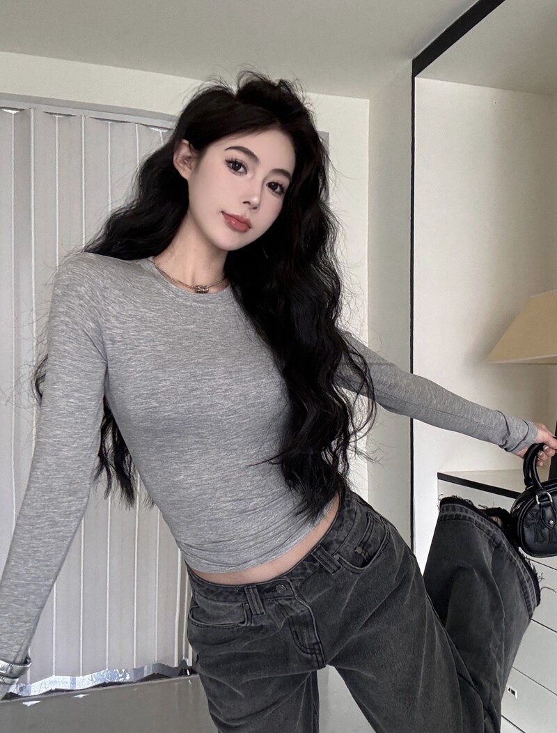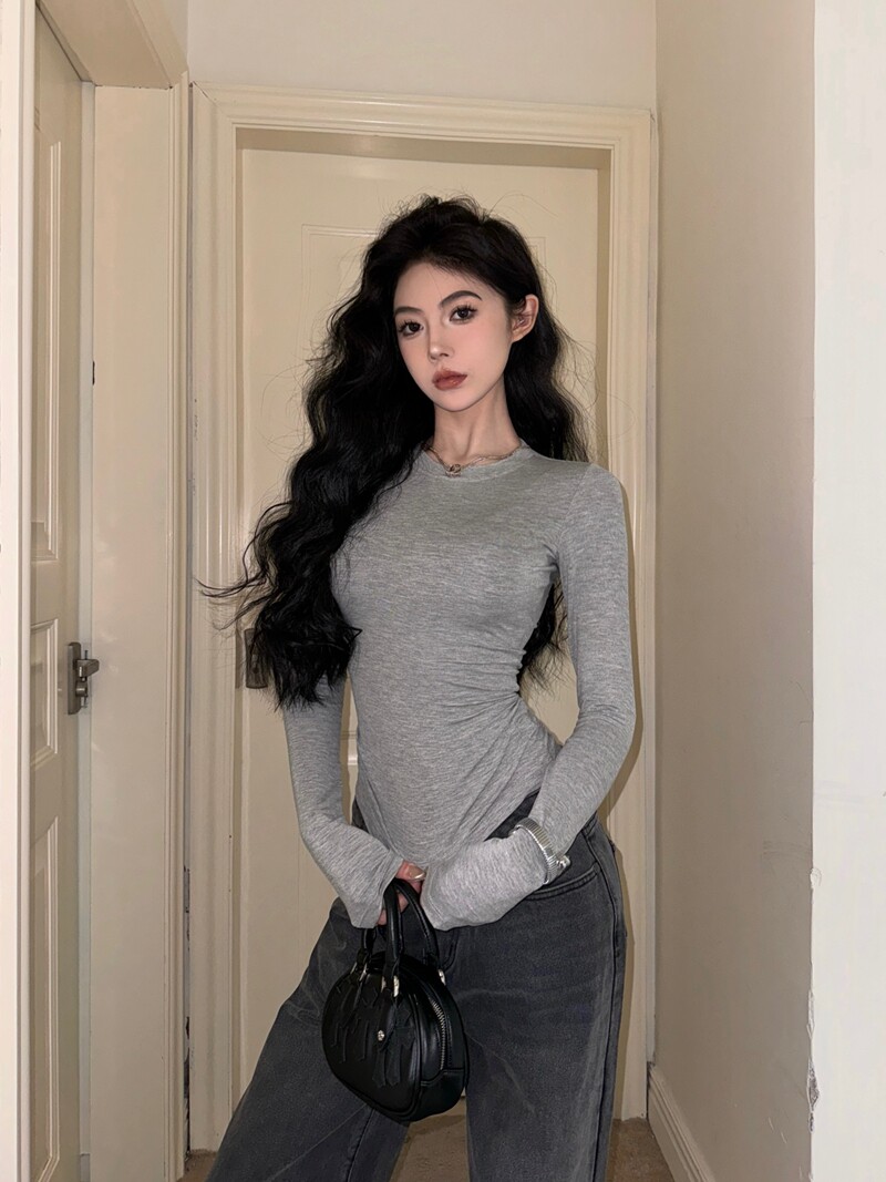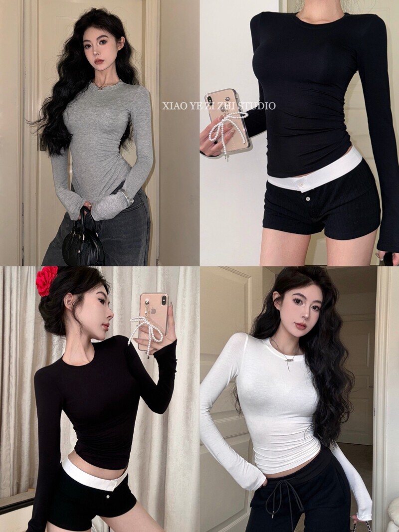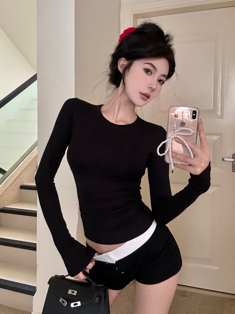 Modal Thin Round Neck Tight-Fitting Long-Sleeve T-Shirt for Women 2025 Spring/Summer Slim Fit Versatile Slightly Sheer Base Top