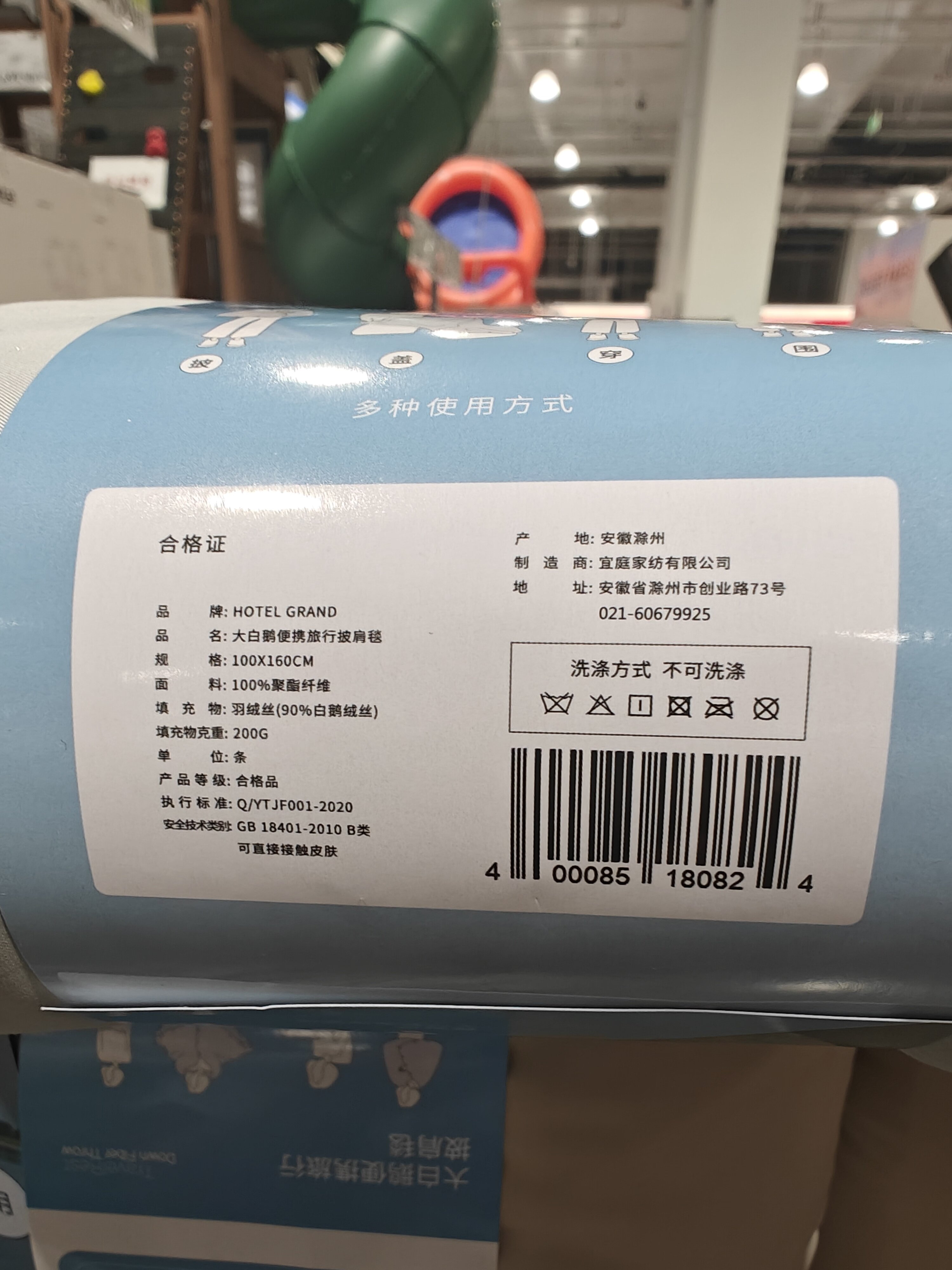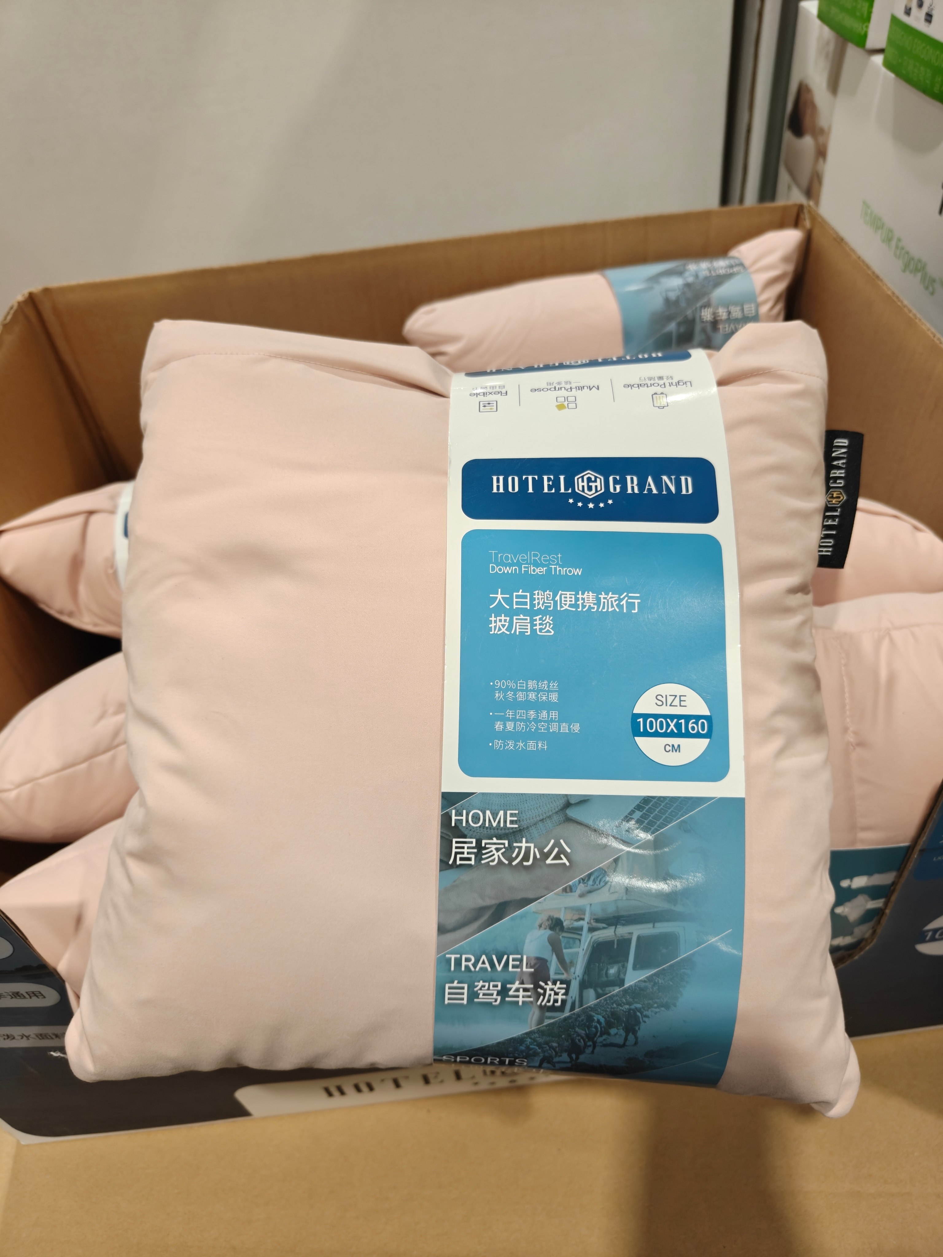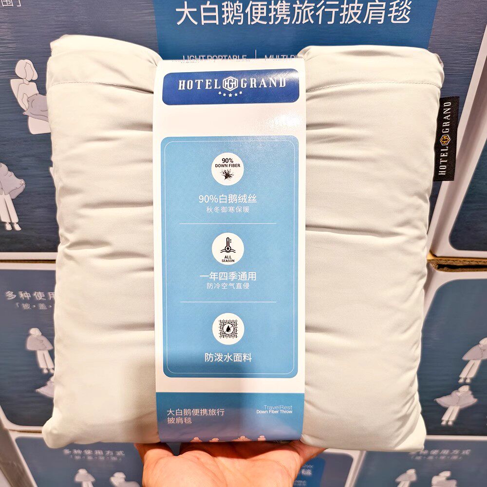 Ningbo Kaishike Yiting Multi-Purpose Warm Portable Travel Large White Goose down Shawl Blanket 100Cmx160Cm