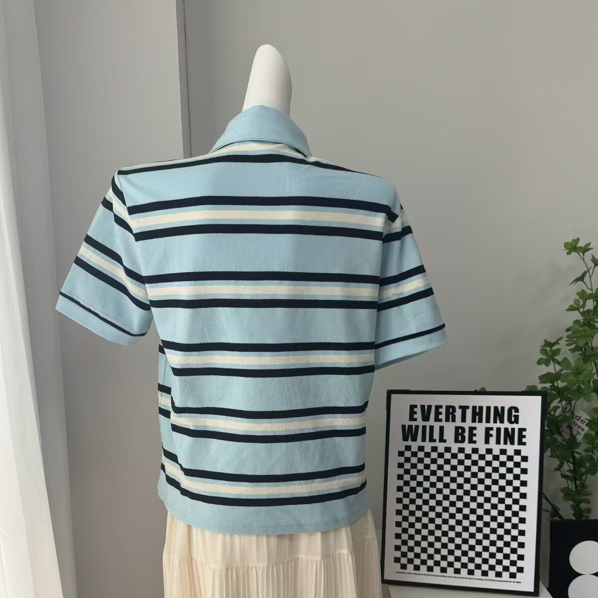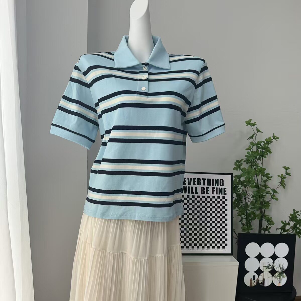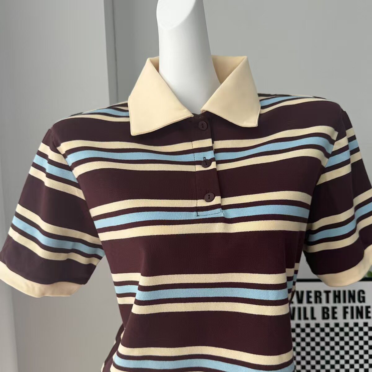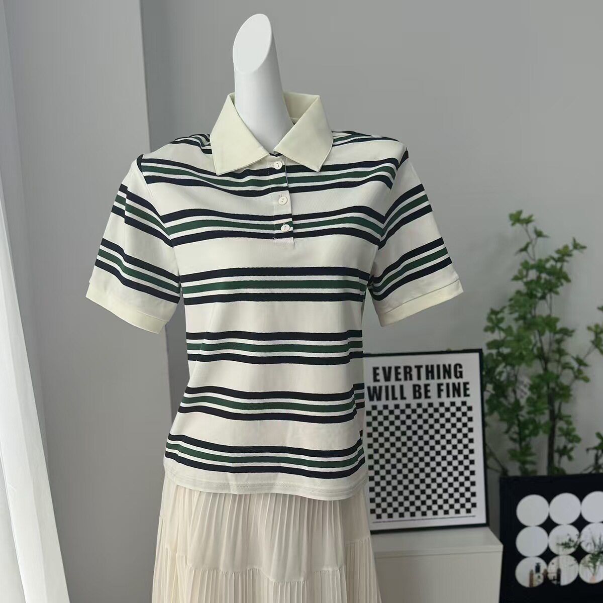 European and American Style New Fashion Retro Striped Short-Sleeved T-Shirt Loose Polo Shirt Top Loose Striped Top