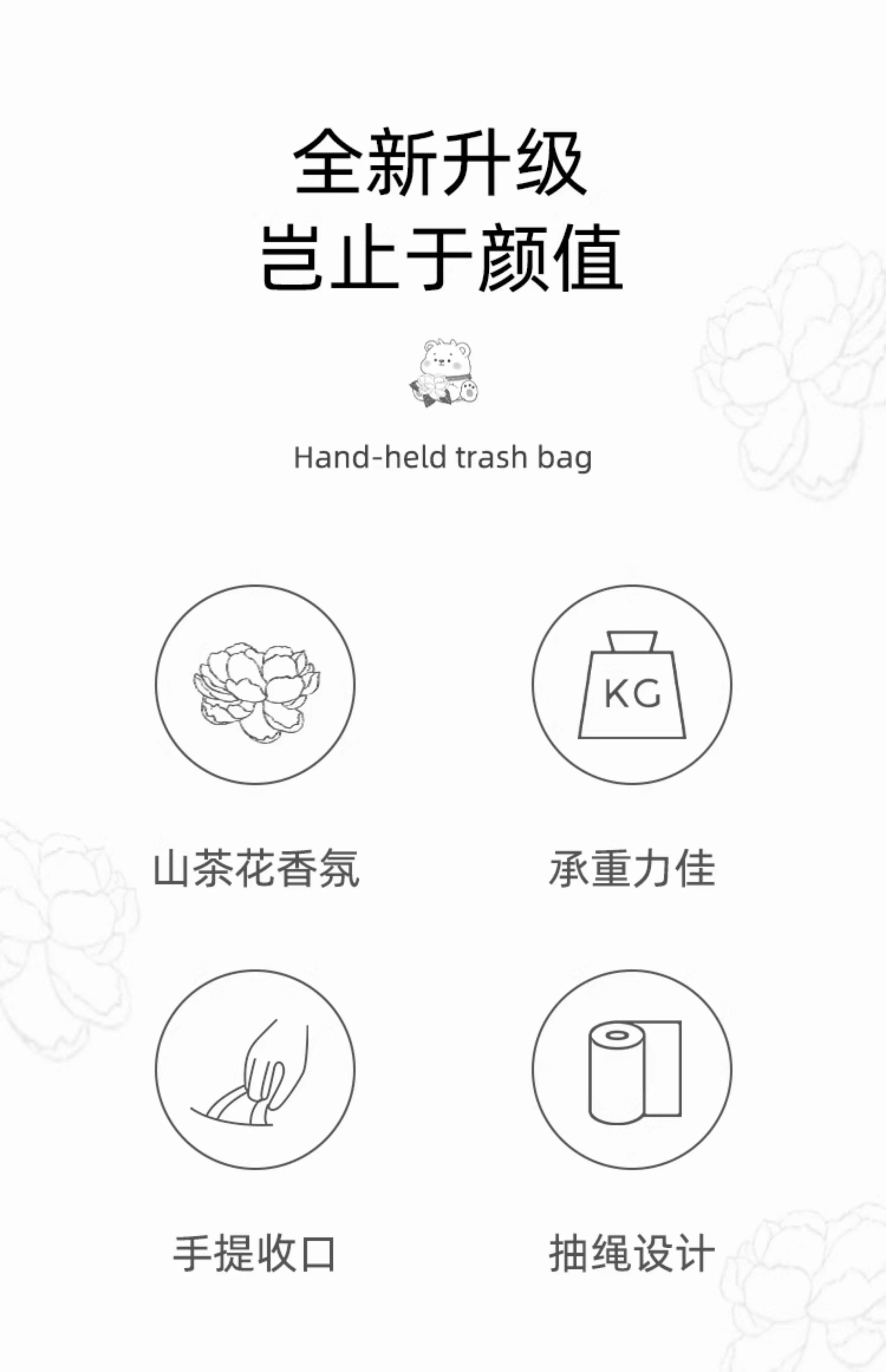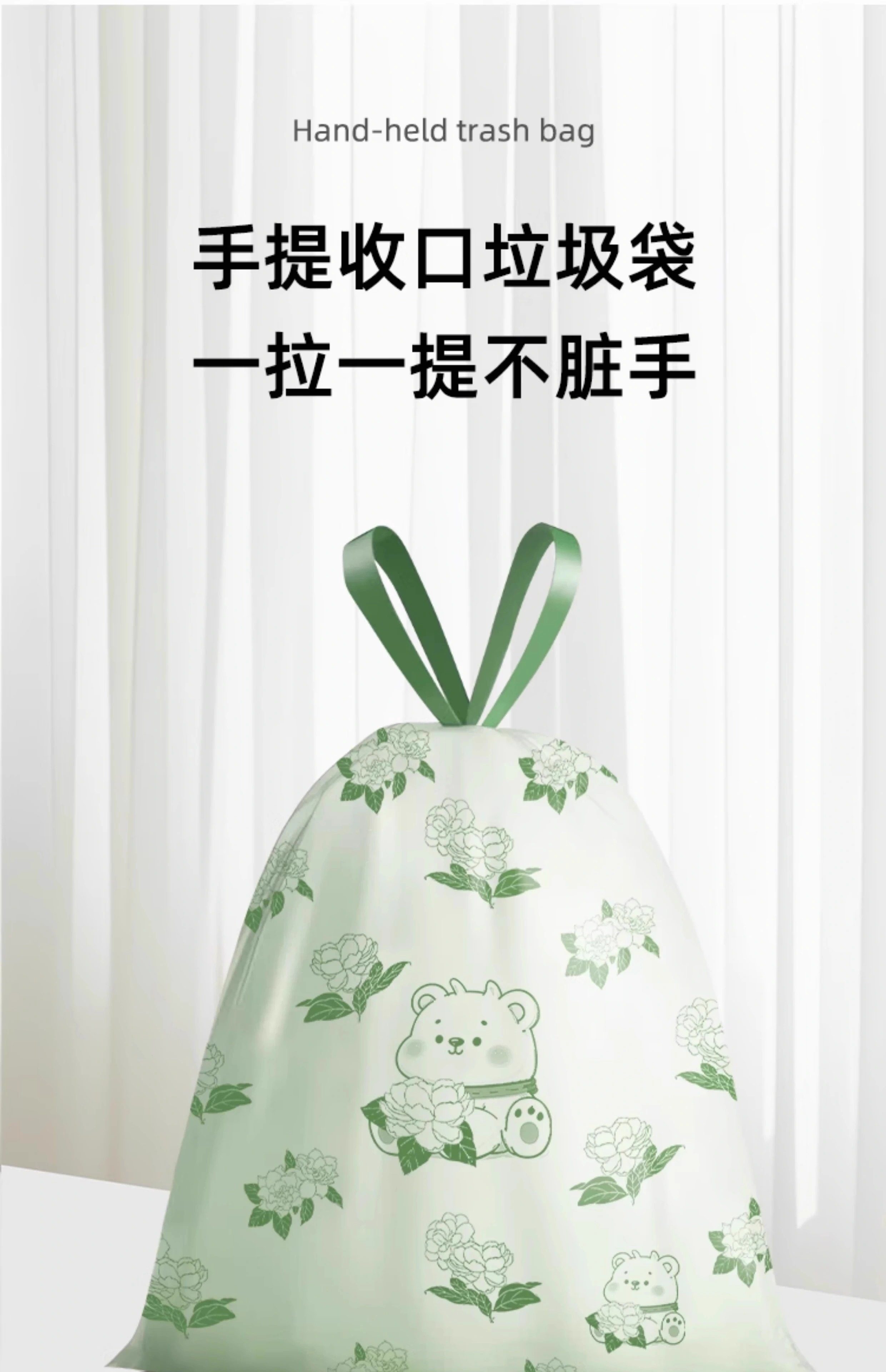 Camellia New Style Garbage Bags for Home Use, Thickened Drawstring Odor-Removing Automatic Sealing Plastic Bags, Large Size for Household Use