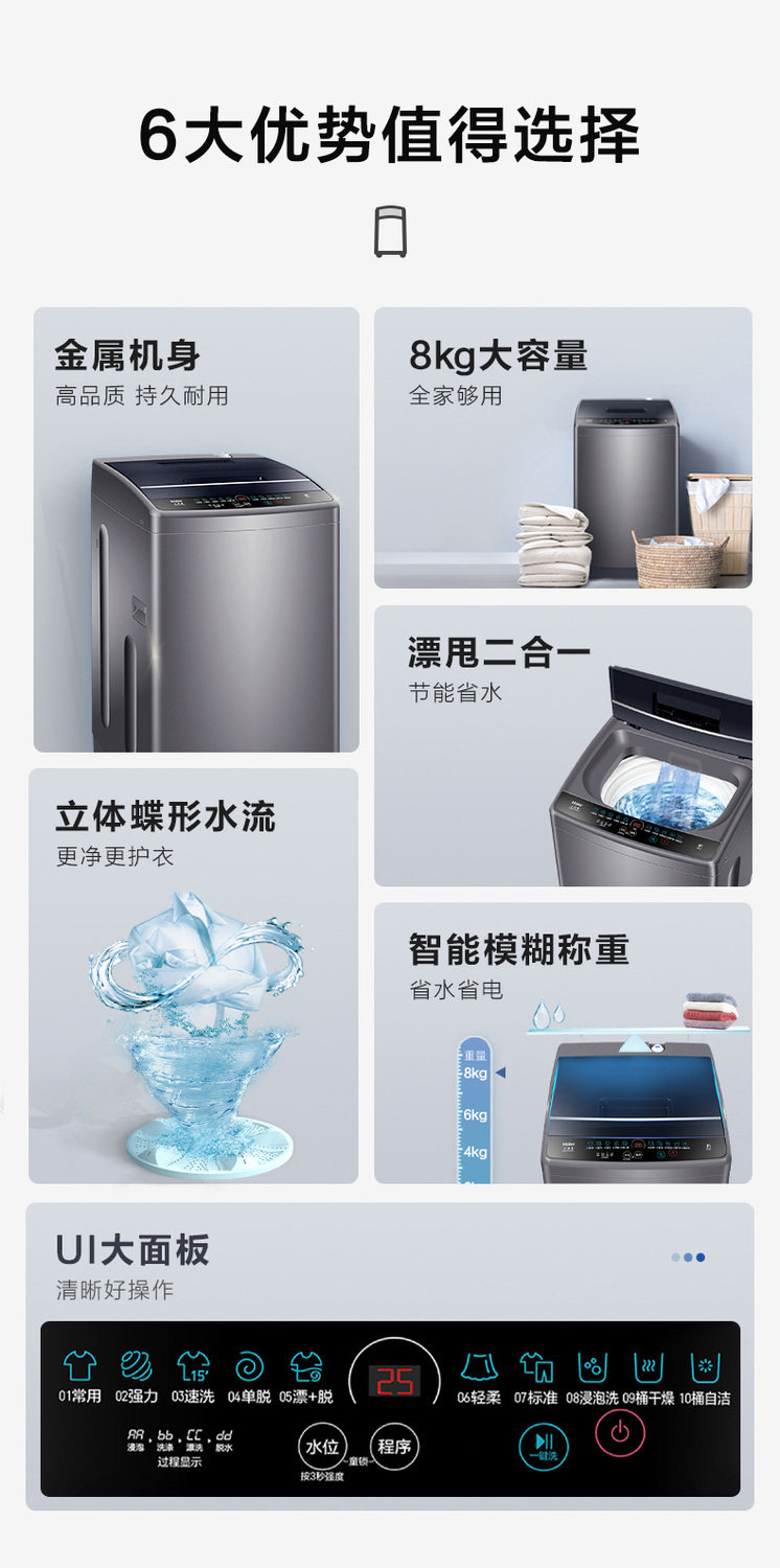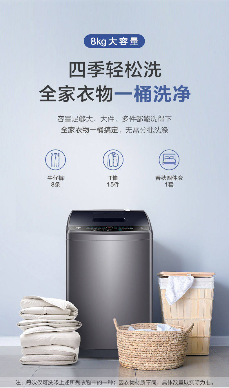 Haier Washing Machine Fully Automatic Pulsator 8kg Household Washing and Drying Integrated Tub Self-Cleaning Rental Eb80M30Mate1