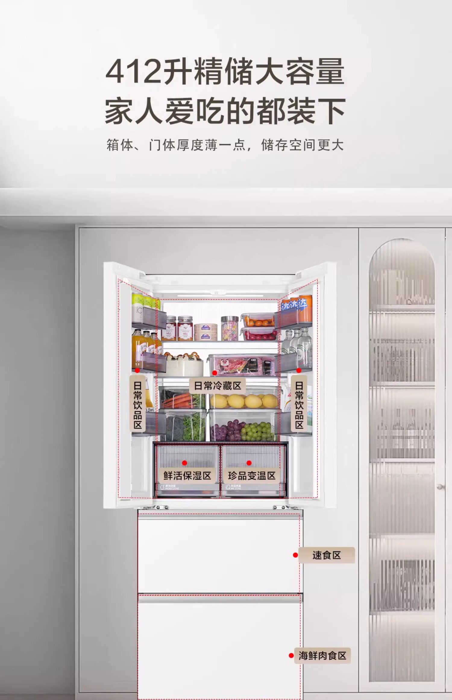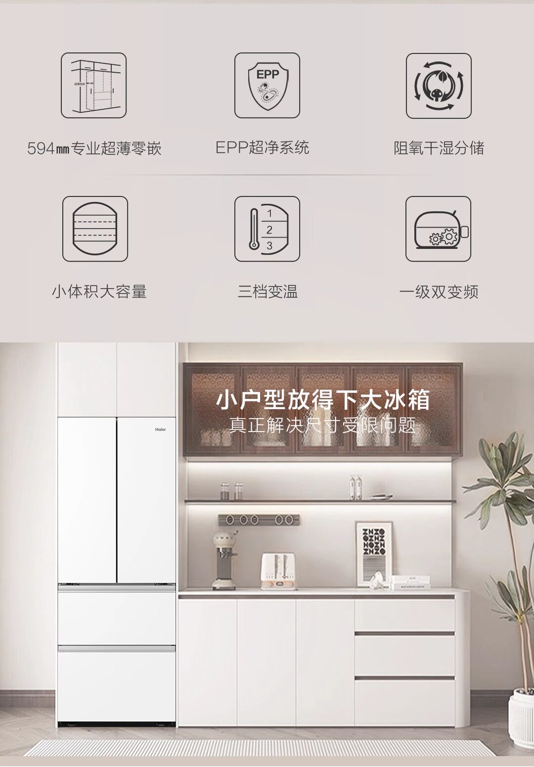 Haier Bcd-412Wghfdb5Wfu1 French Ultra-Thin Frost-Free First-Class Zero-Embedded Refrigerator