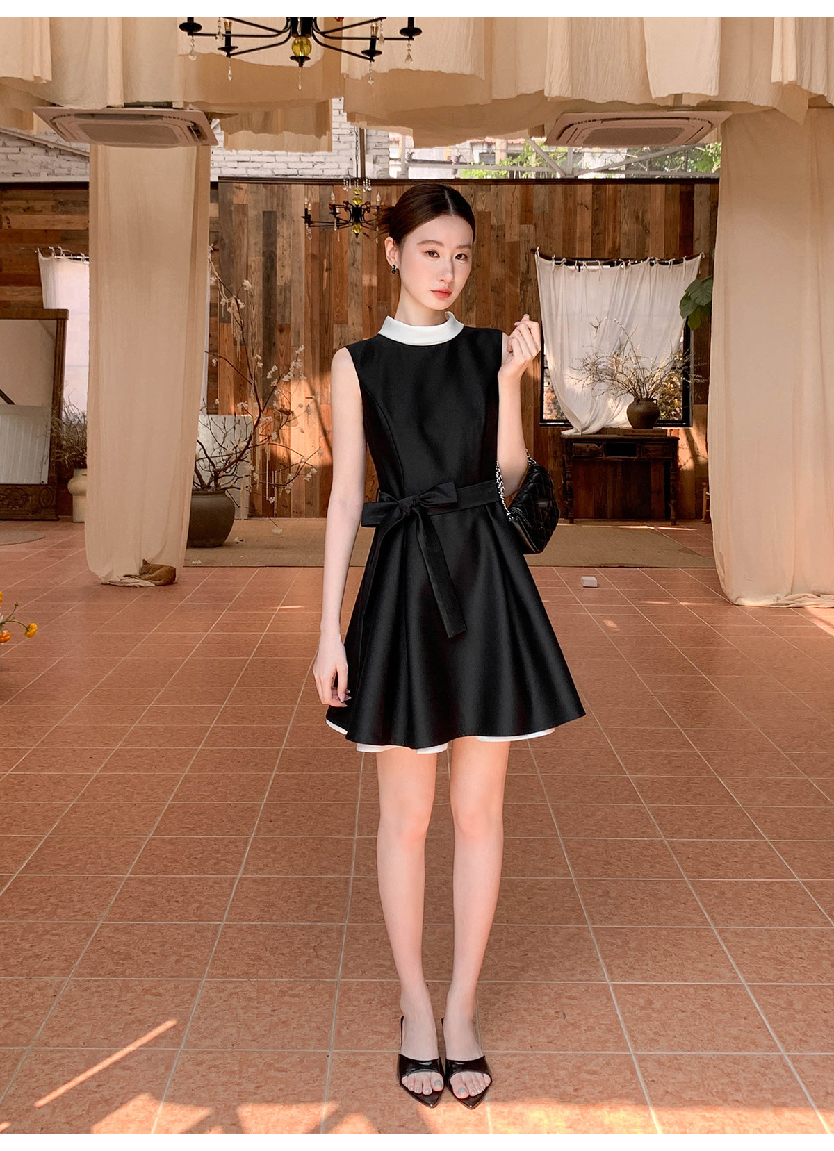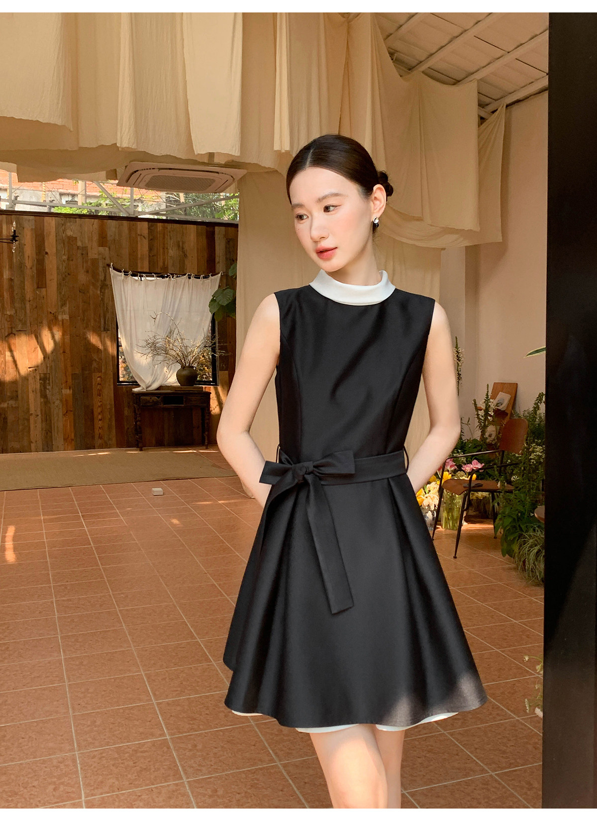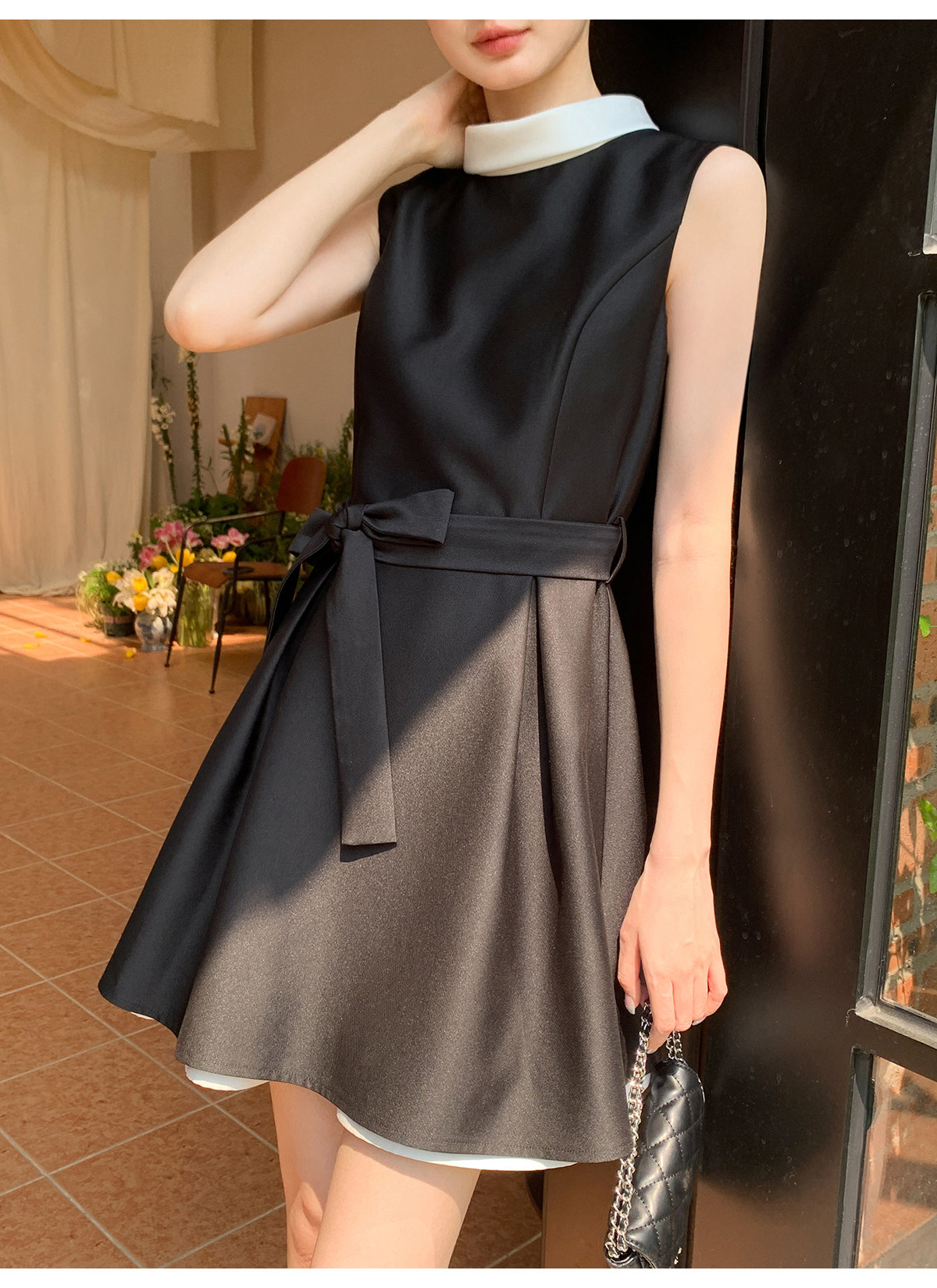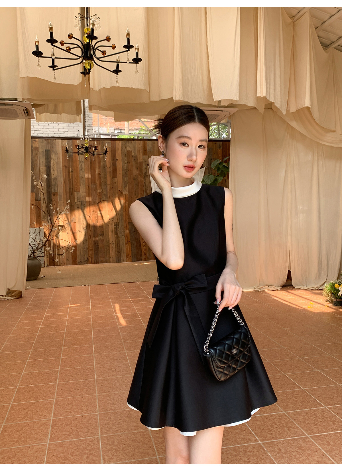 Xxning French Hepburn Style Color-Blocked Tank Dress for Women, Autumn High-End Elegant Socialite Chanel-Style Dress