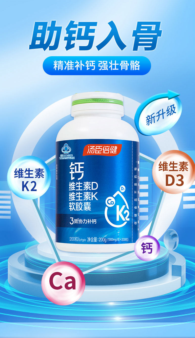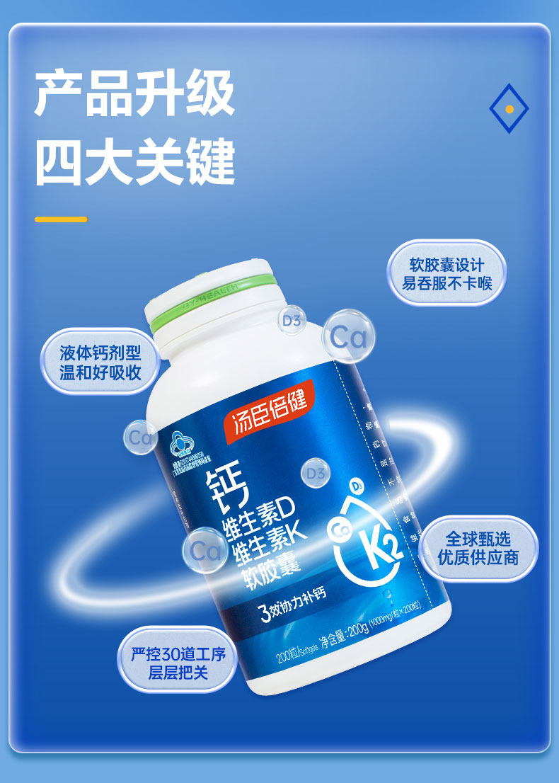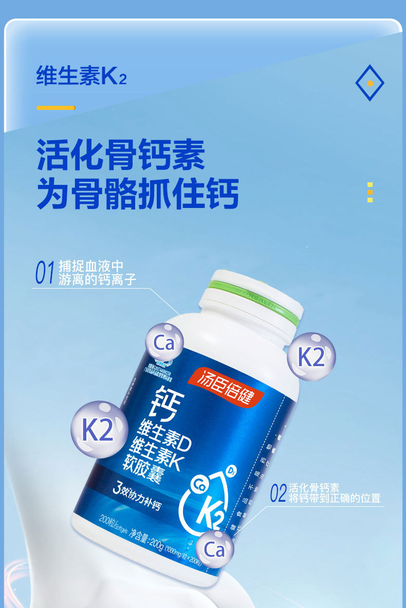 Tomson By-Health Liquid Calcium DK2 Soft Capsule Youth Calcium Tablets Children Over 3 Years Old Growth Calcium Supplement Genuine