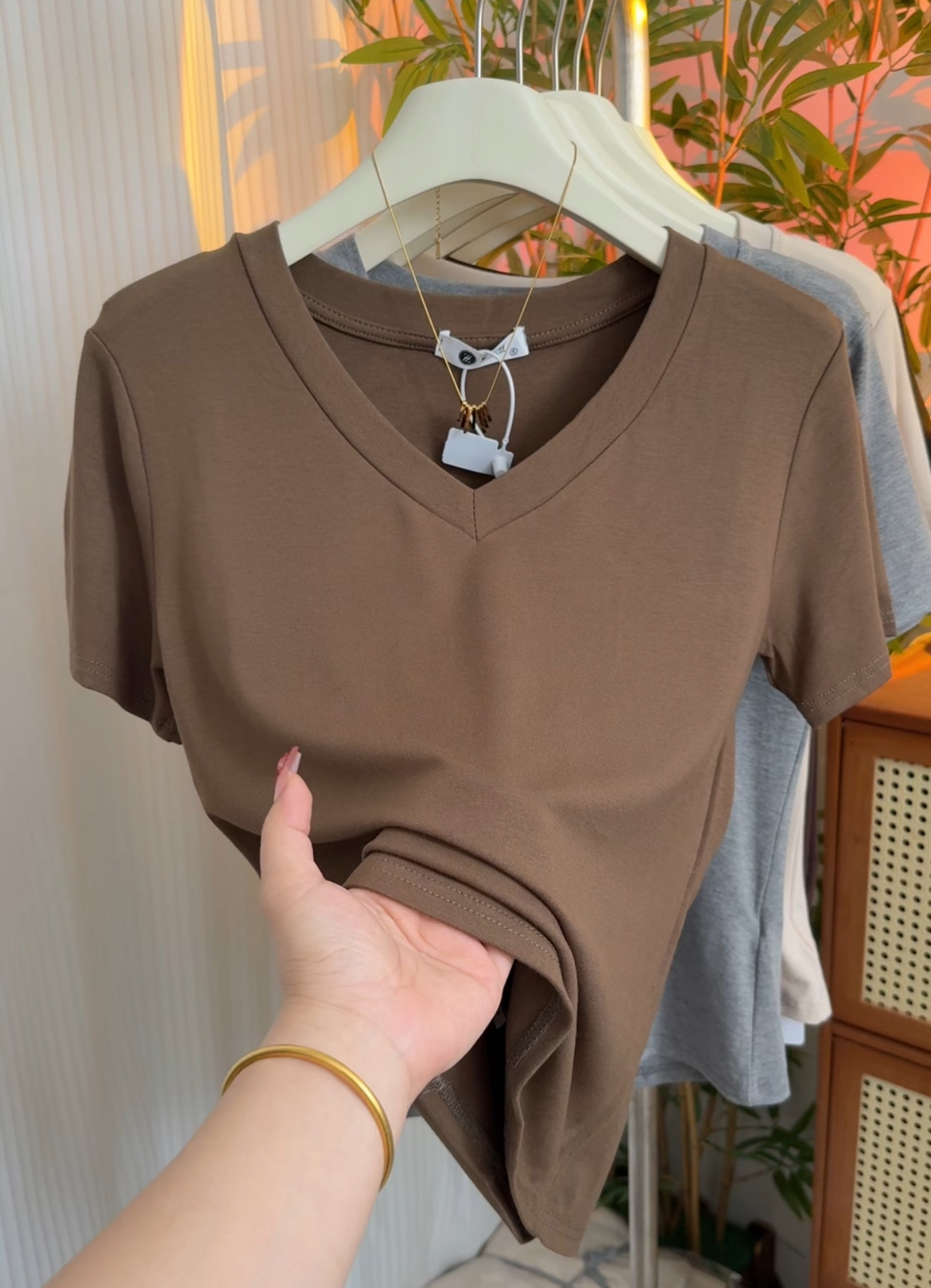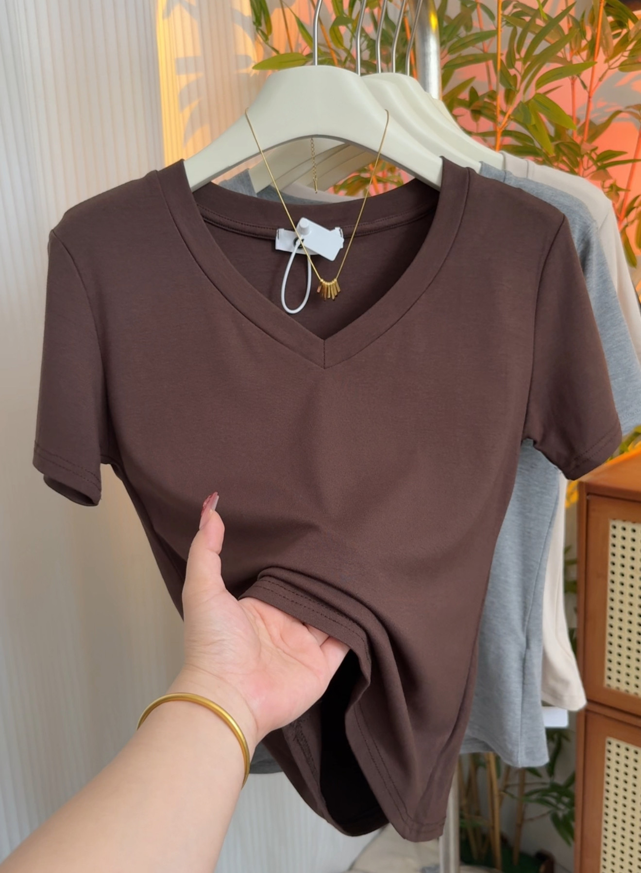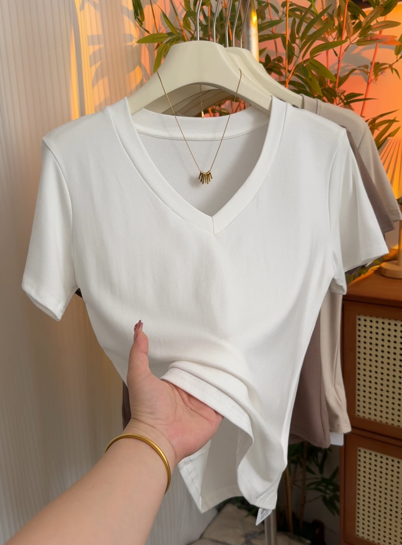 Summer New V-Neck Regular Shoulder T-Shirt for Women 2026 Korean Style Solid Color Simple Fashion Versatile Loose Short-Sleeve Top