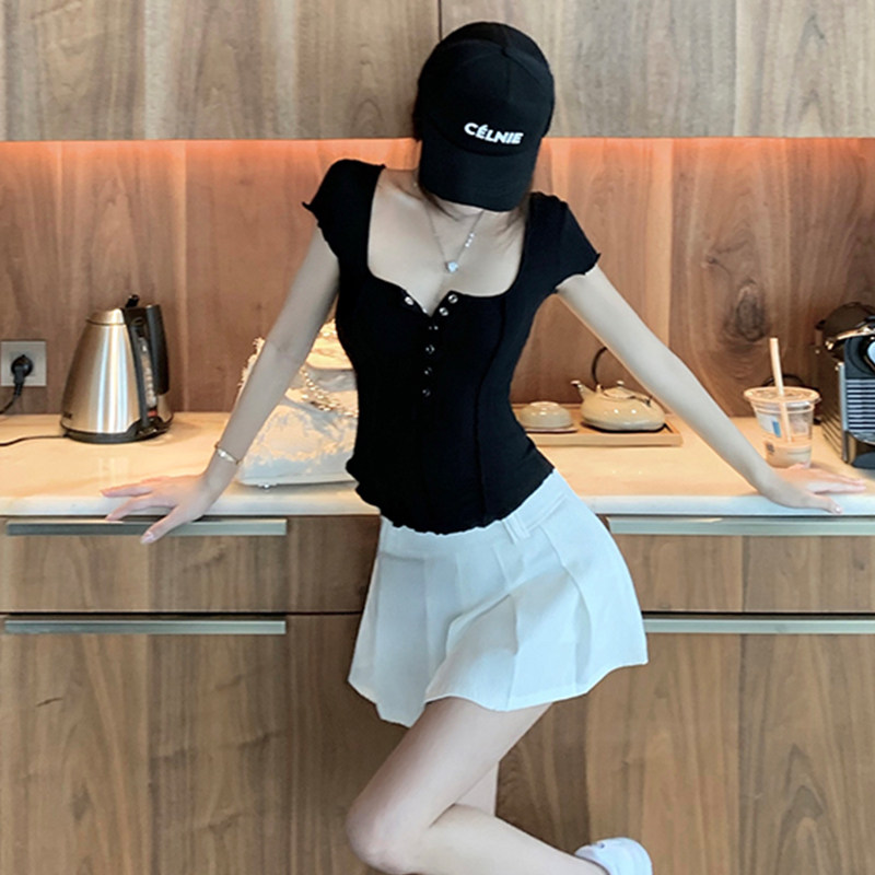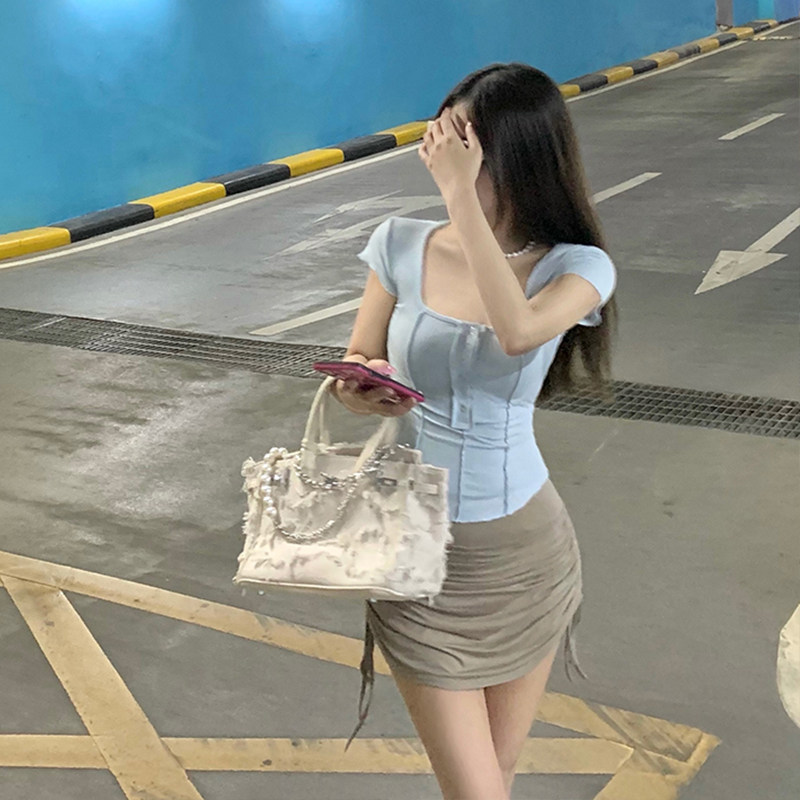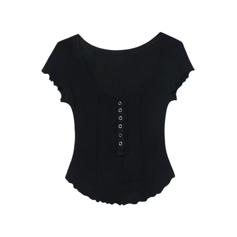 Trendy and Unique Low-Neck Short-Sleeve T-Shirt for Women, Summer 2025 New Style, Pure and Alluring Style, Waist-Cinching, Slimming, Short U-Neck Top