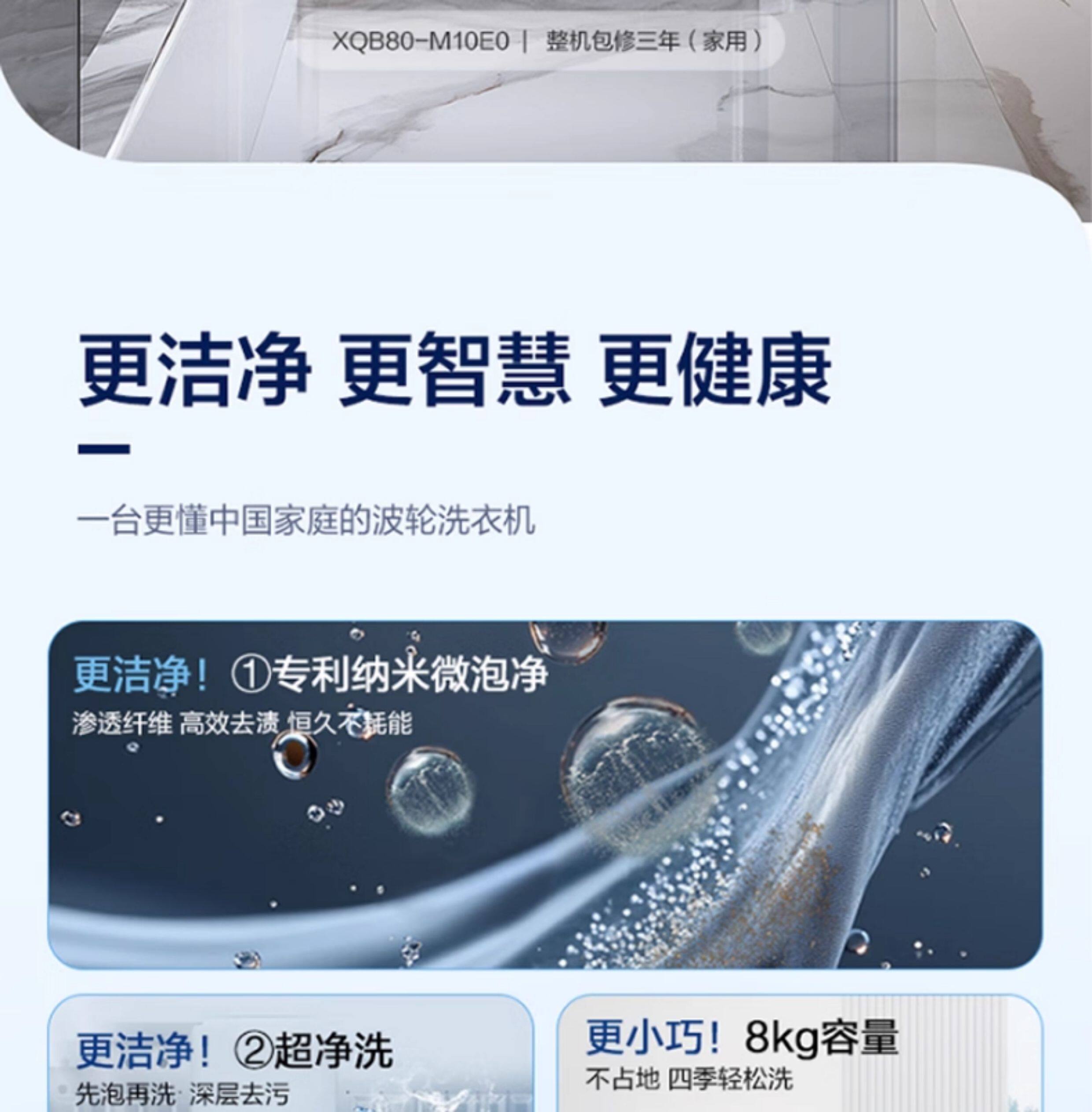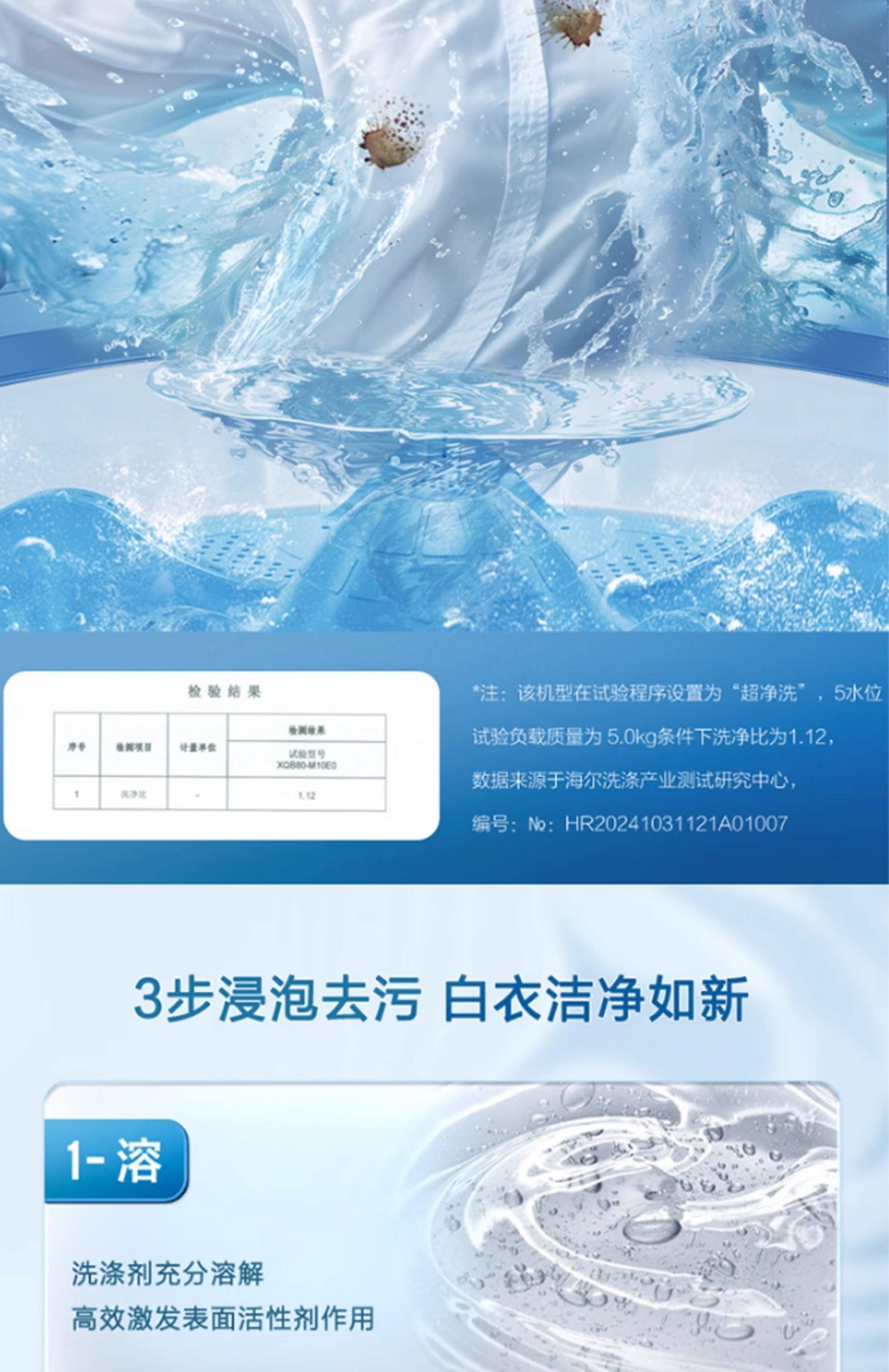 Haier 8kg Pulsator Washing Machine Fully Automatic Household Large Capacity First-Class Energy Efficiency Sterilization and Mite Removal Official M10E0