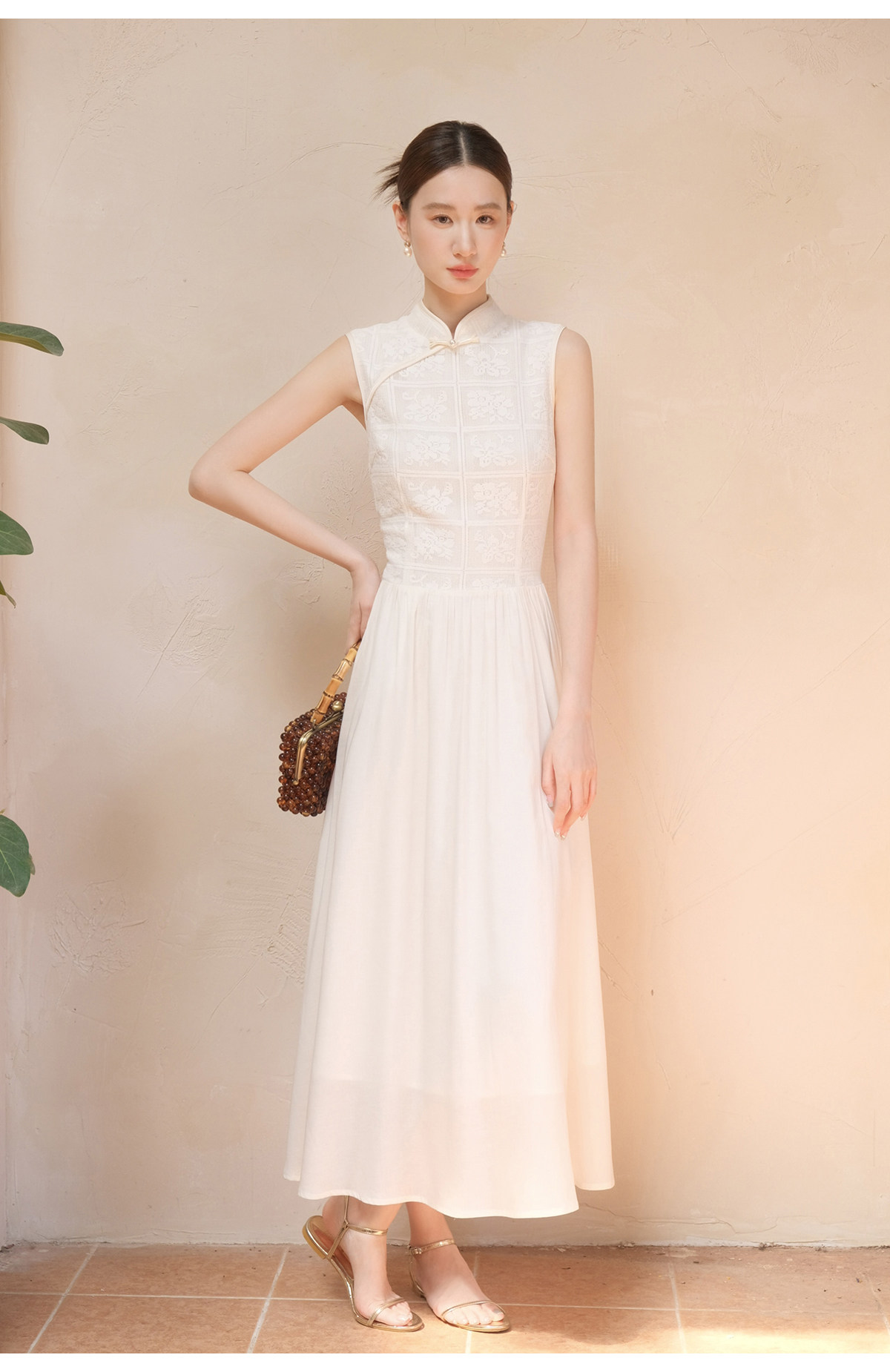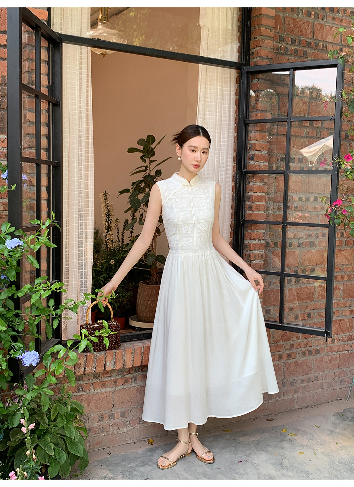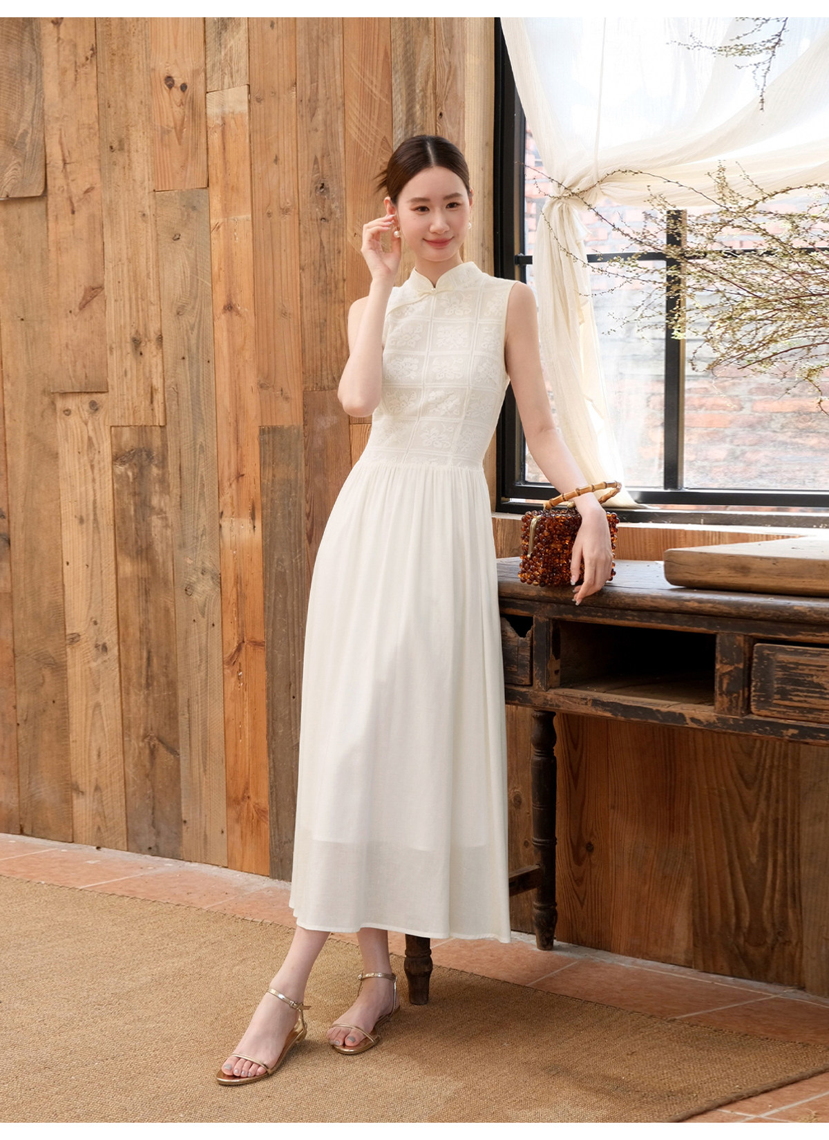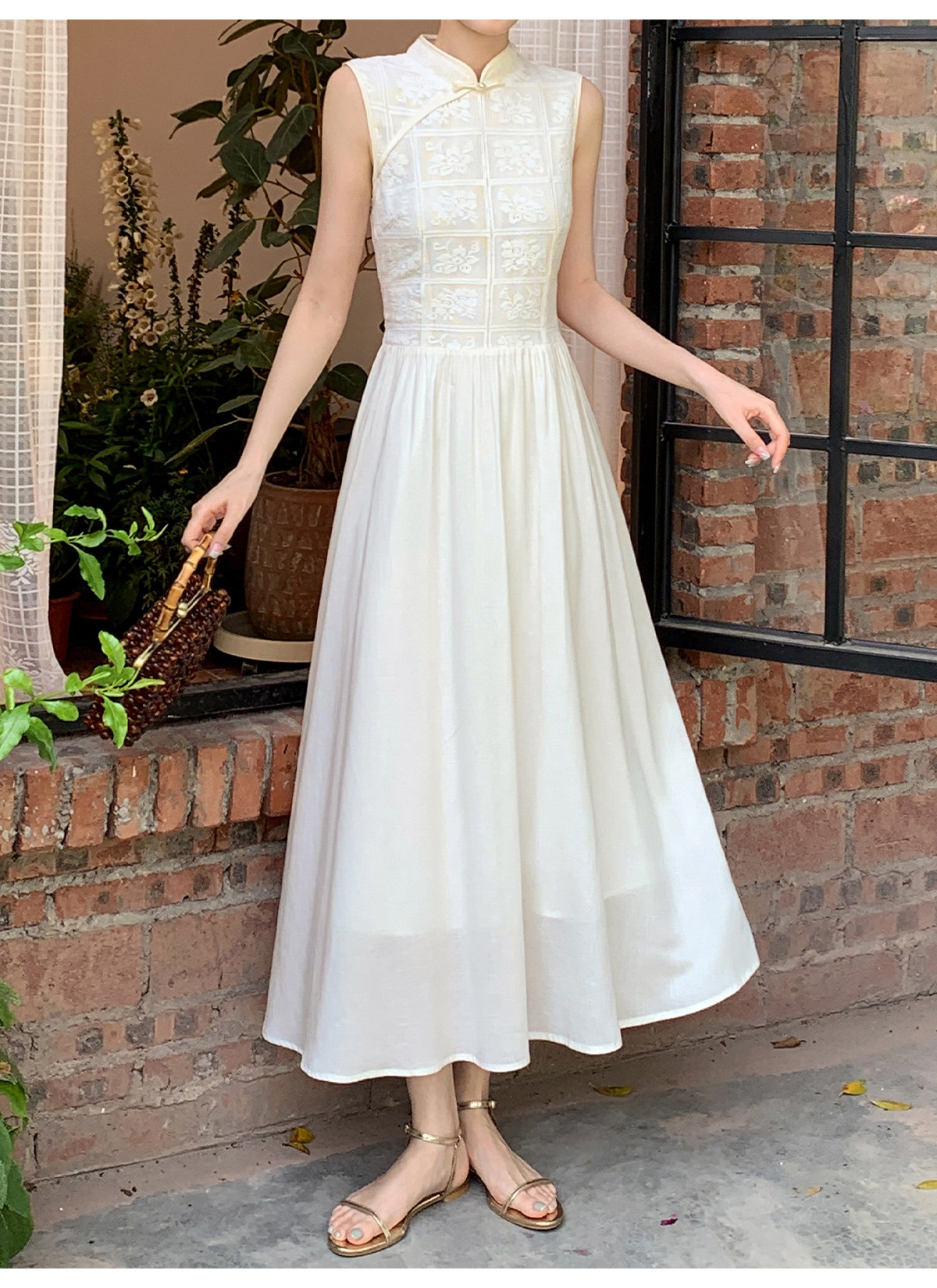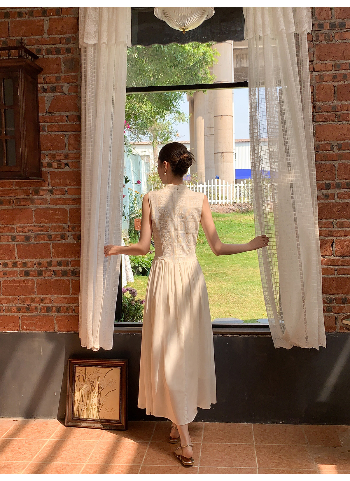 Xxning Chinese Style Stand-Up Collar Vest Dress for Women 2025 Autumn New High-End Elegant Slimming Long Dress