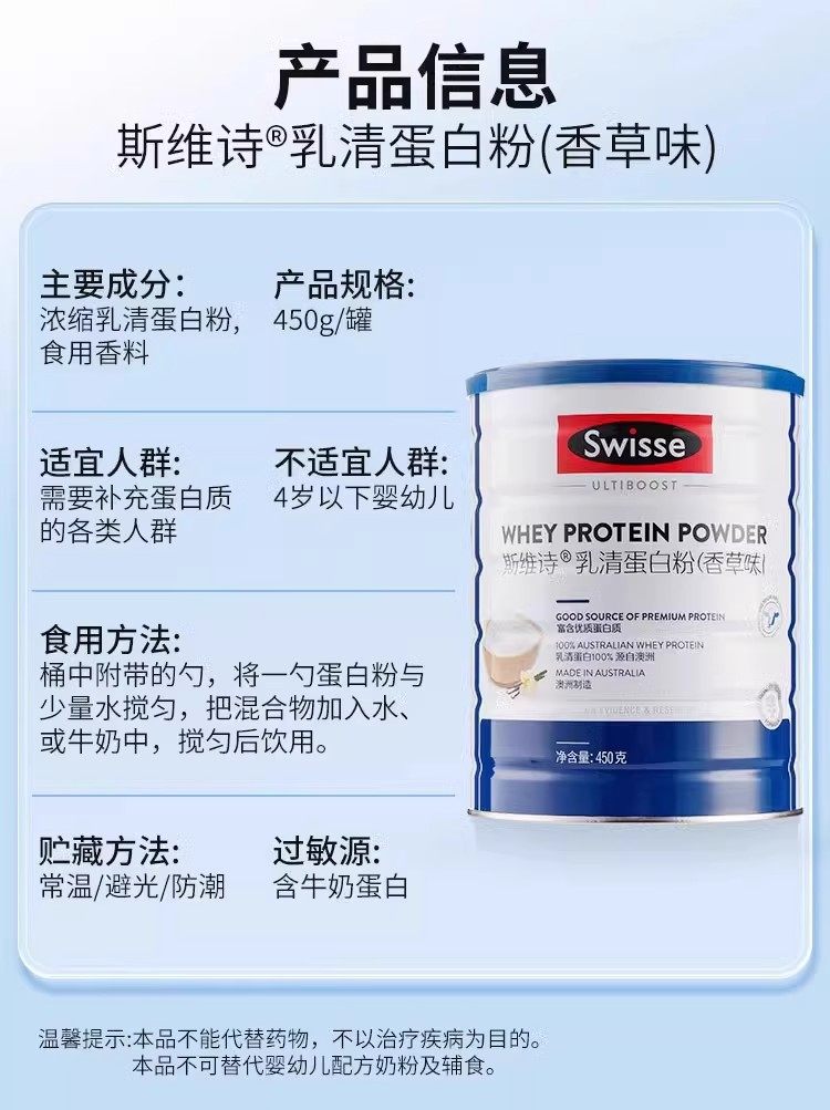 Swisse Whey Protein Powder for Middle-Aged and Elderly People, Immunity Enhancement for Women, Fitness Enhancement, Nutritional Protein Powder