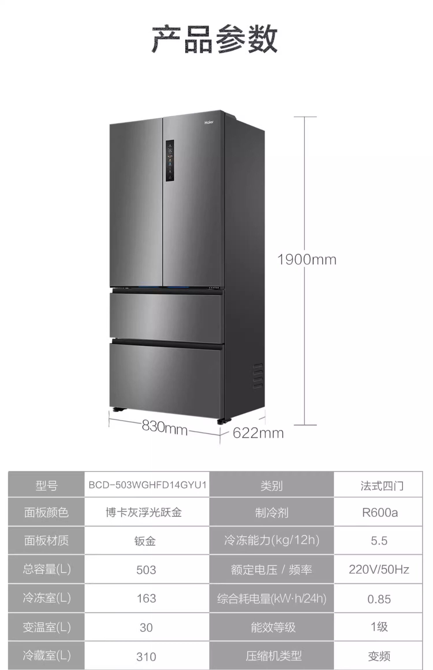 Haier Bcd-503Wghfd14Gyu1 First-Class Ultra-Thin Zero-Embedded Household Air-Cooled Refrigerator