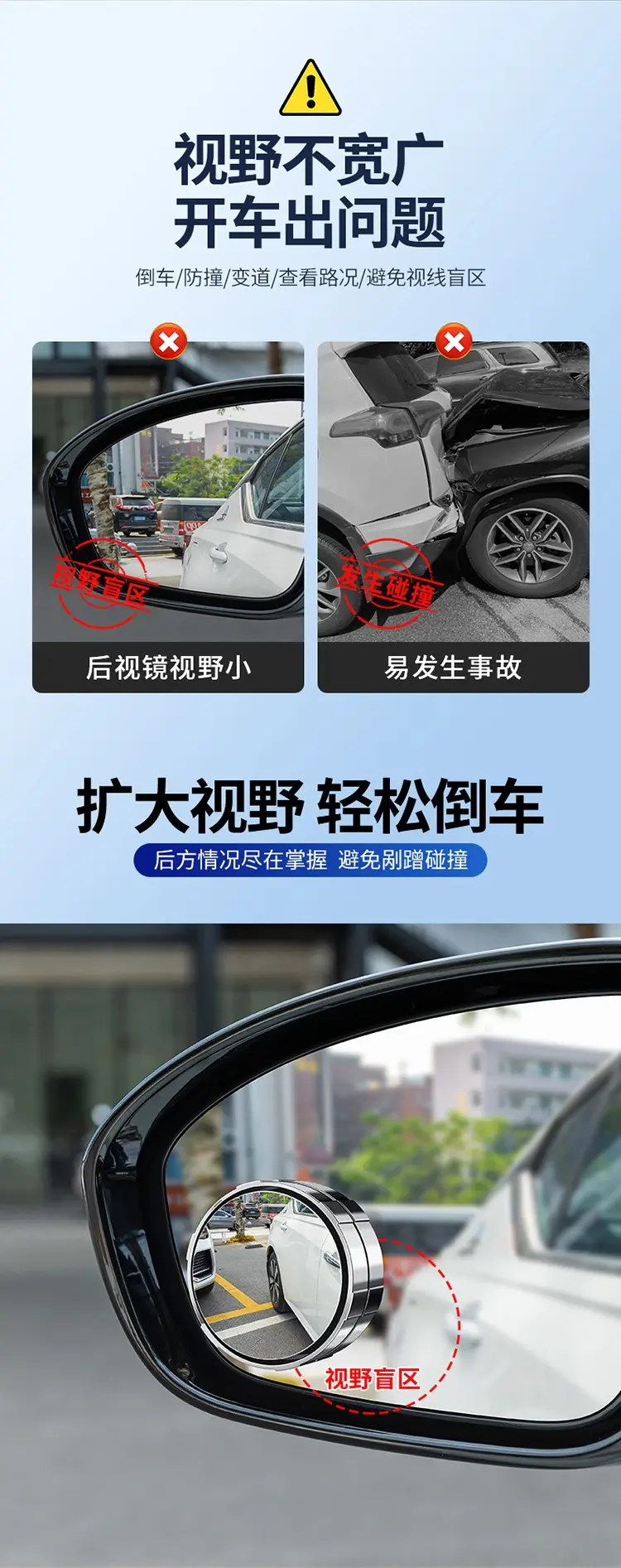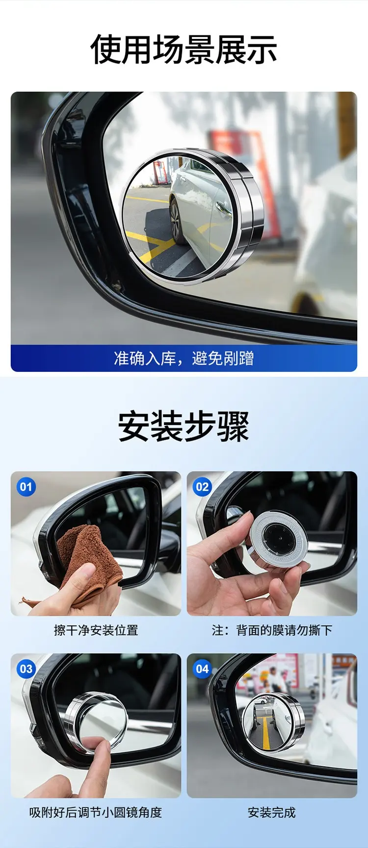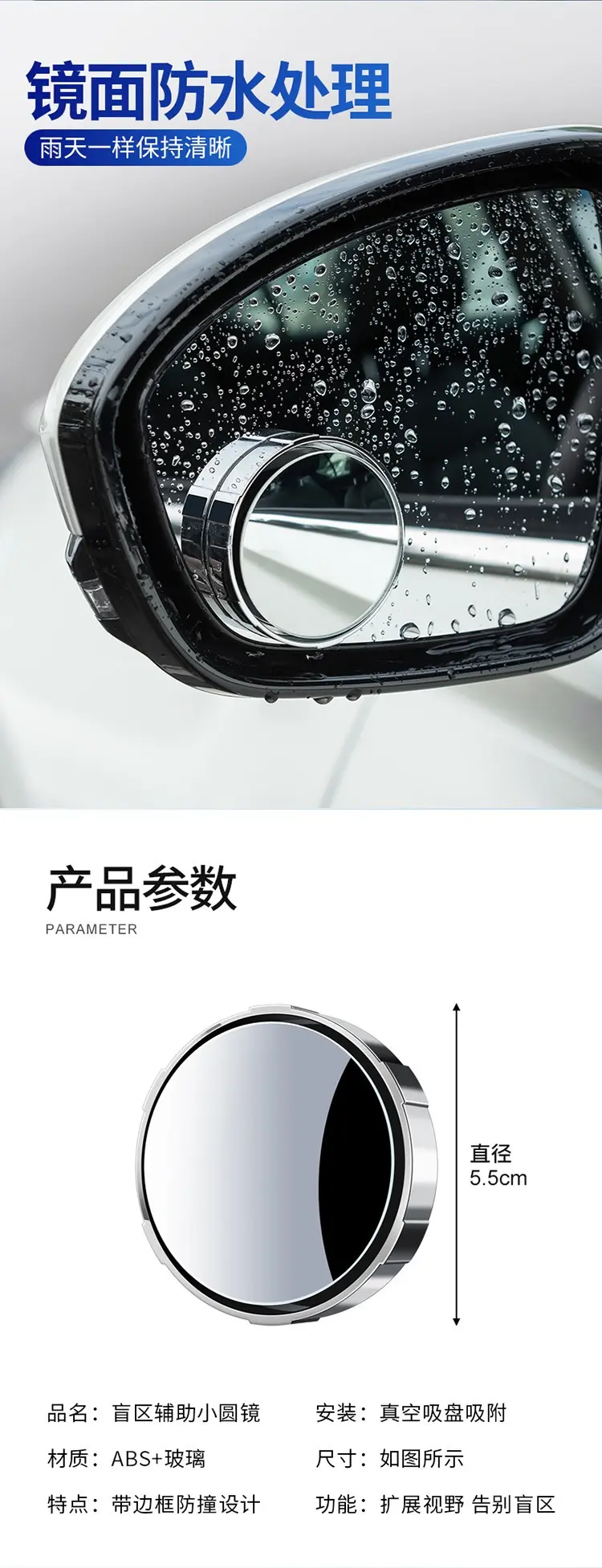 Reversing Aid Car Rearview Mirror Small Round Mirror Blind Spot High-Definition Auxiliary Mirror 360-Degree Multifunctional Blind Spot Reflector