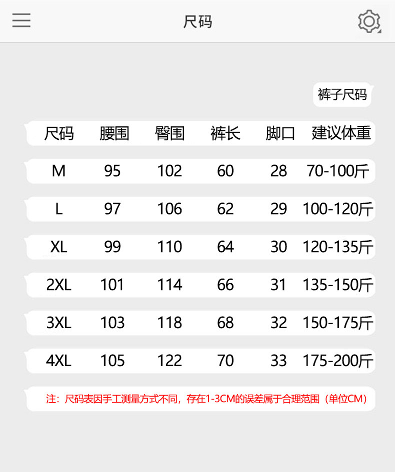 Outseam (cm) 99 cm 101.5 cm 104 cm 106.5 cm 109 cm