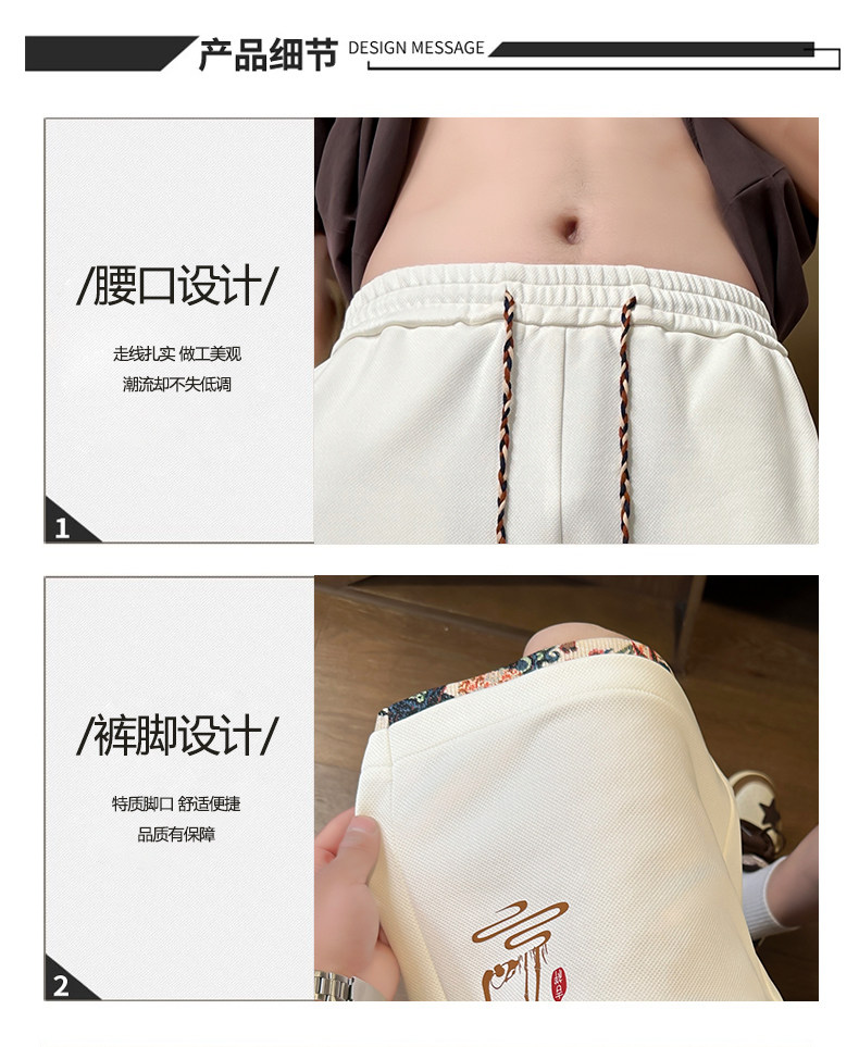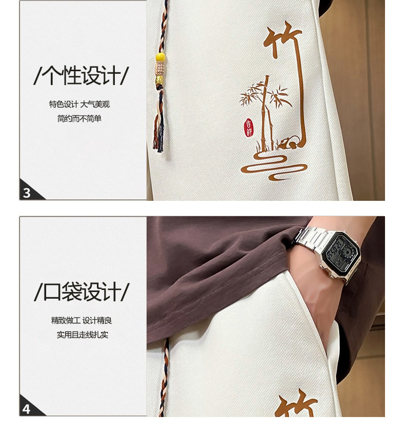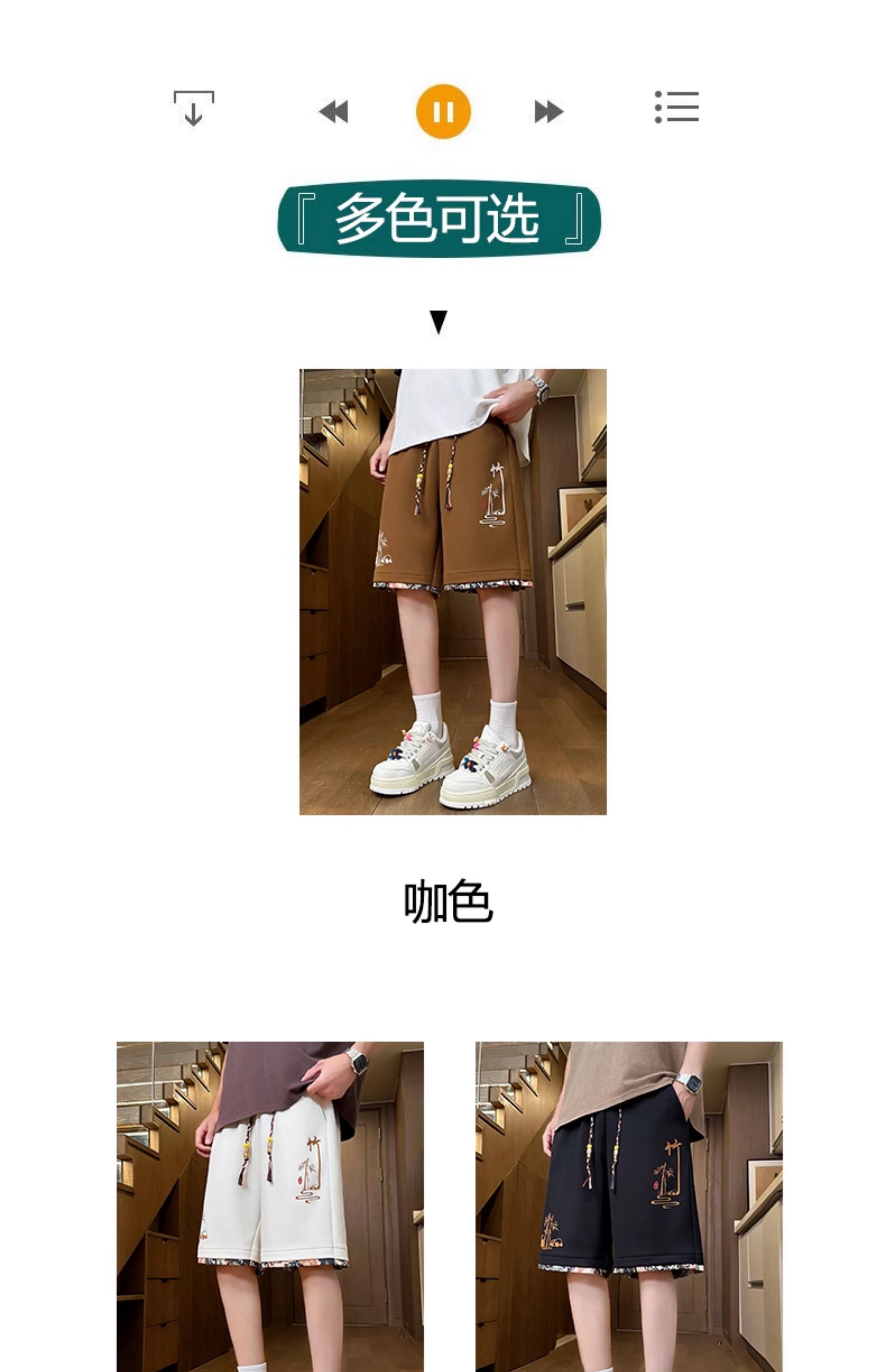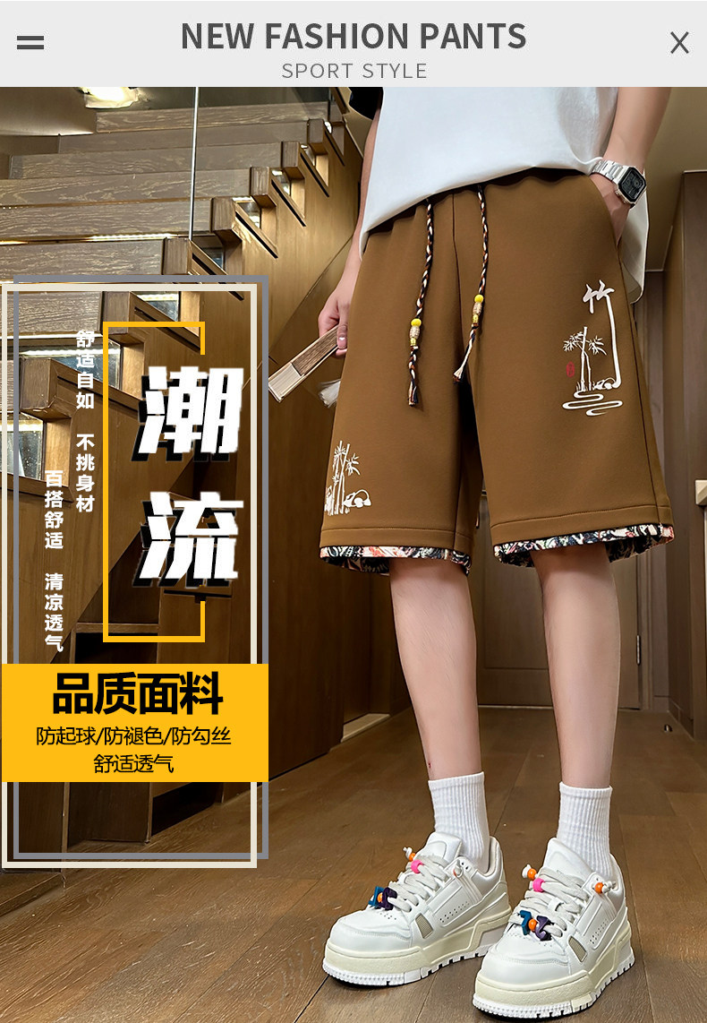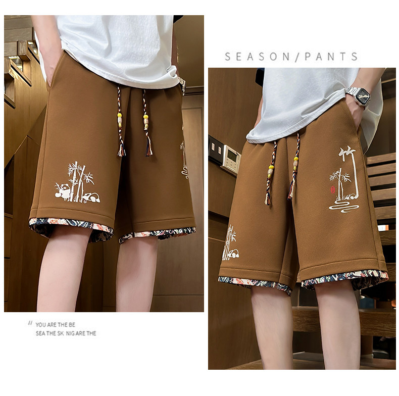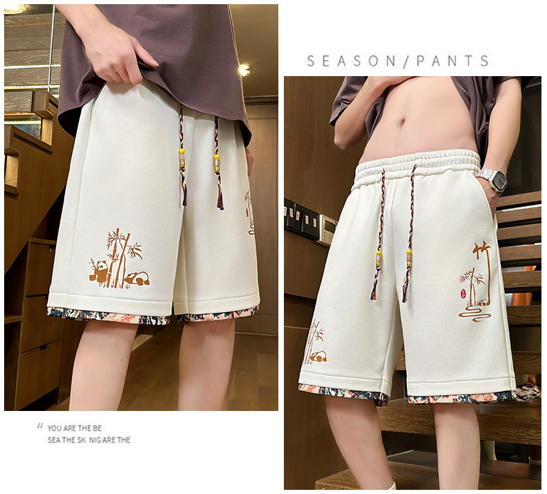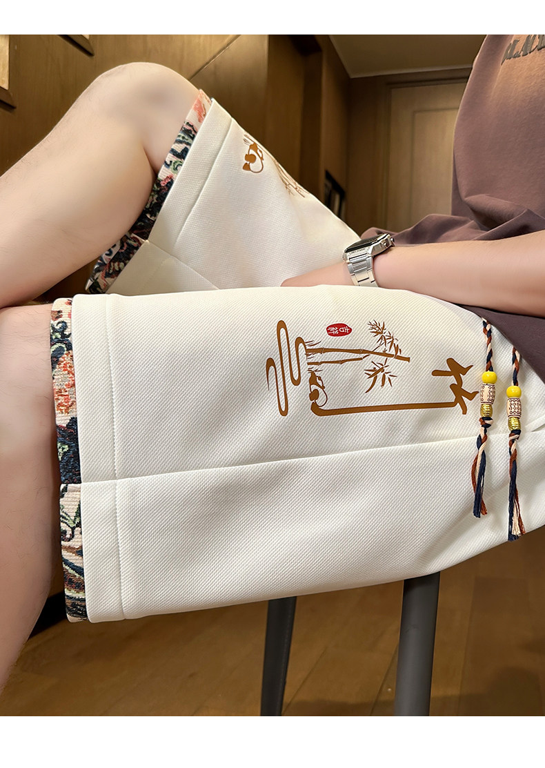Chinese Style Ice Silk Shorts for Men, Summer 2025 New Loose Straight Five-Point Pants, National Trend Patchwork Sports Casual Pants