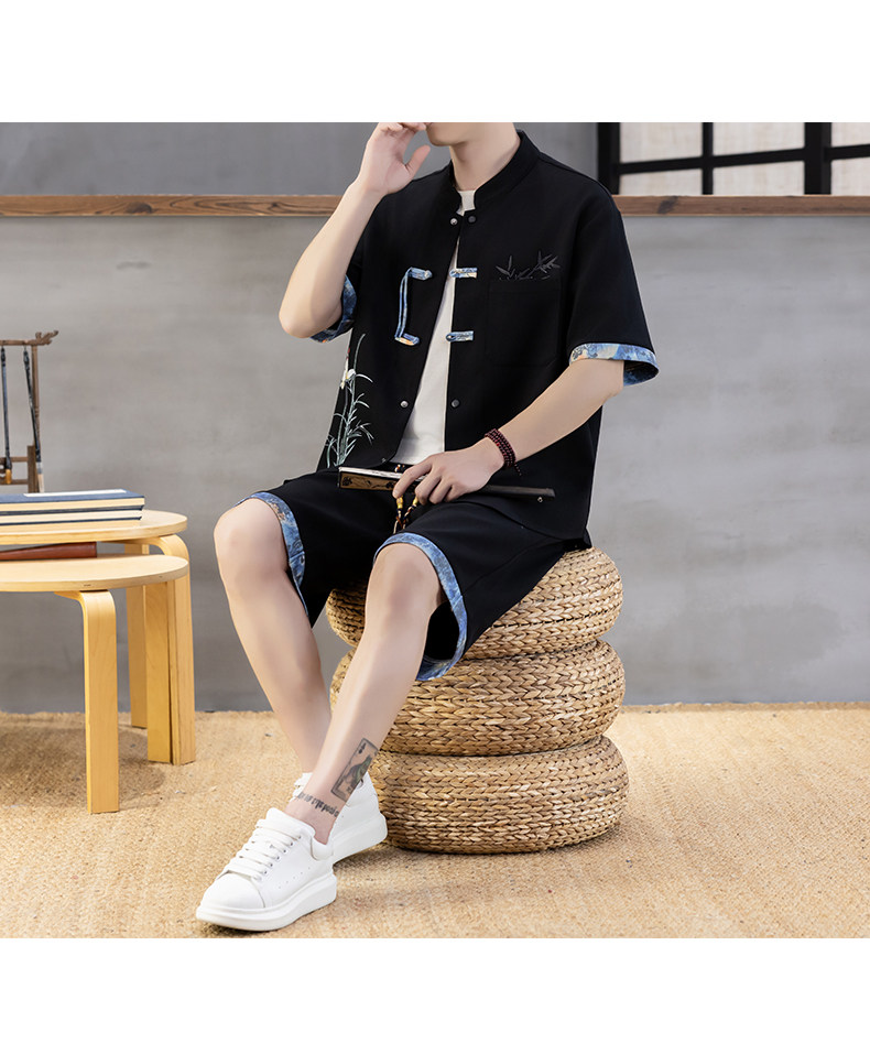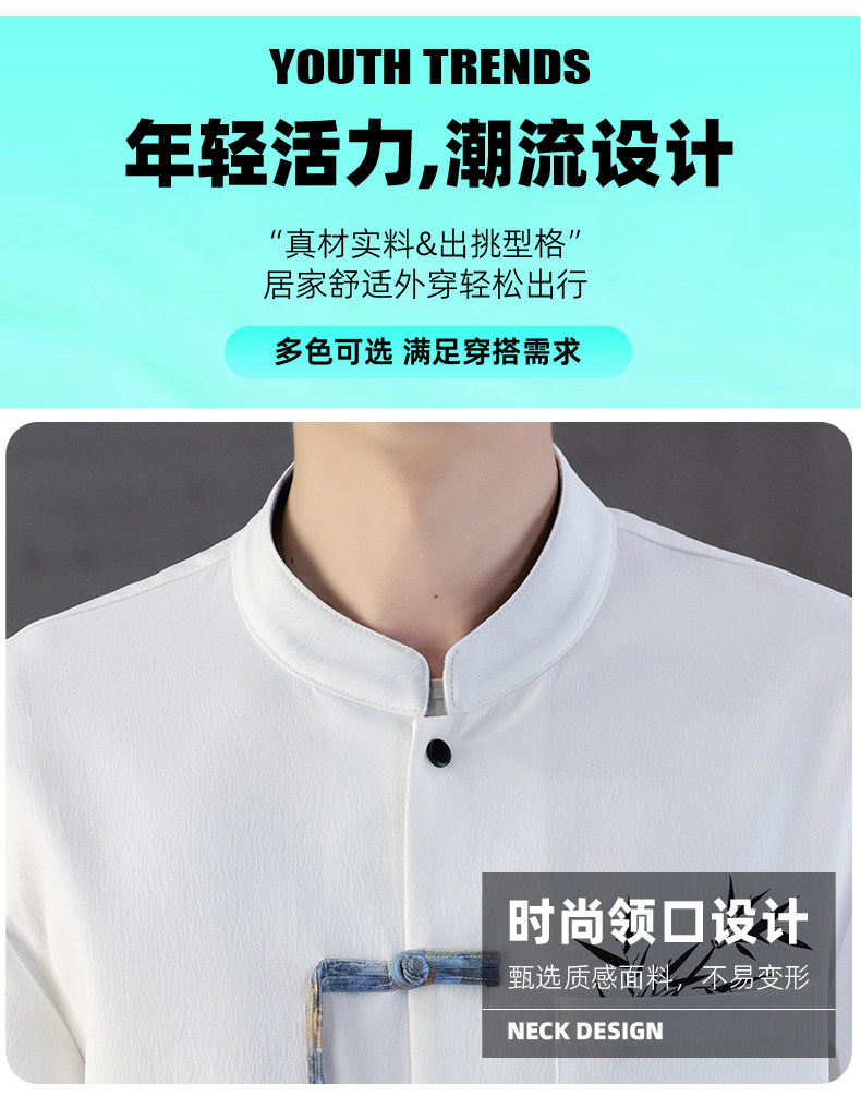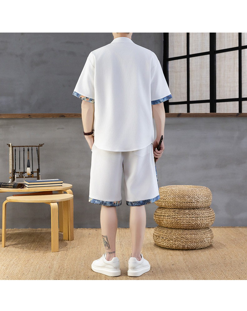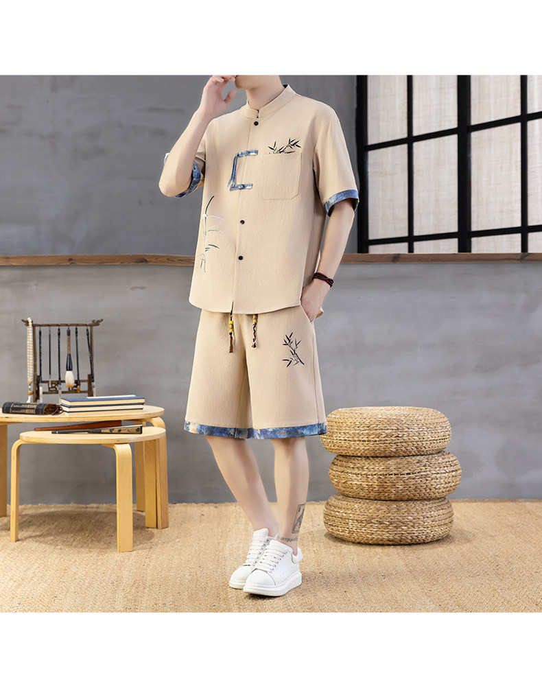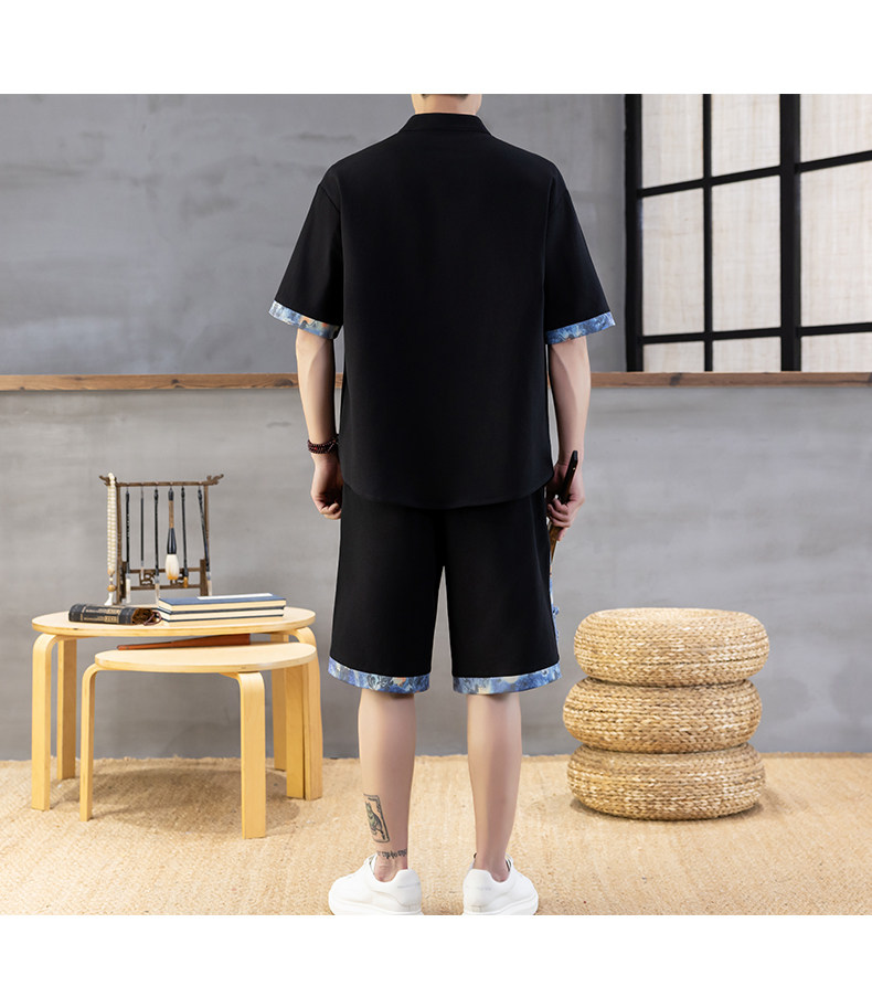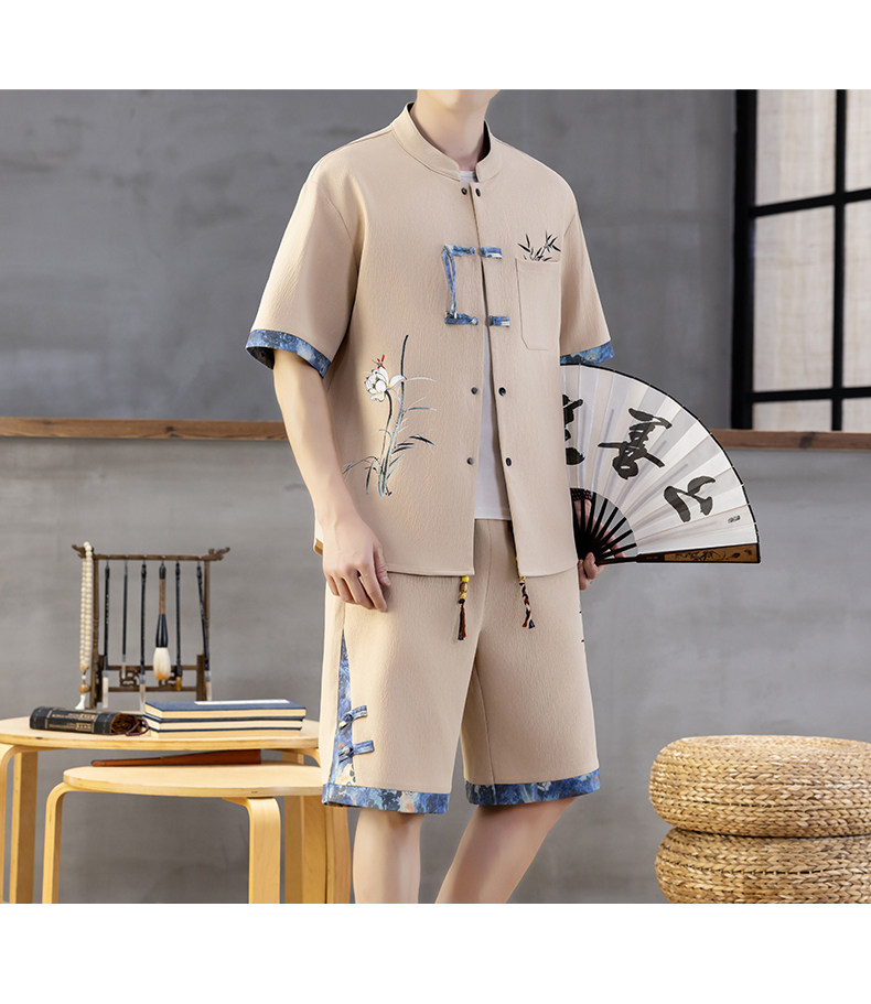 Chinese Style Short-Sleeved Shirt Men's Summer Suit Ice Silk Thin New Chinese Style Short-Sleeved T-Shirt Shirt-Style Two-Piece Set