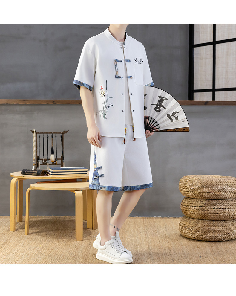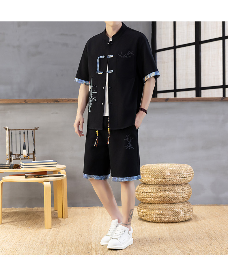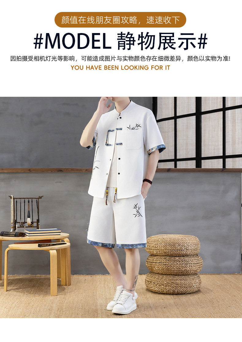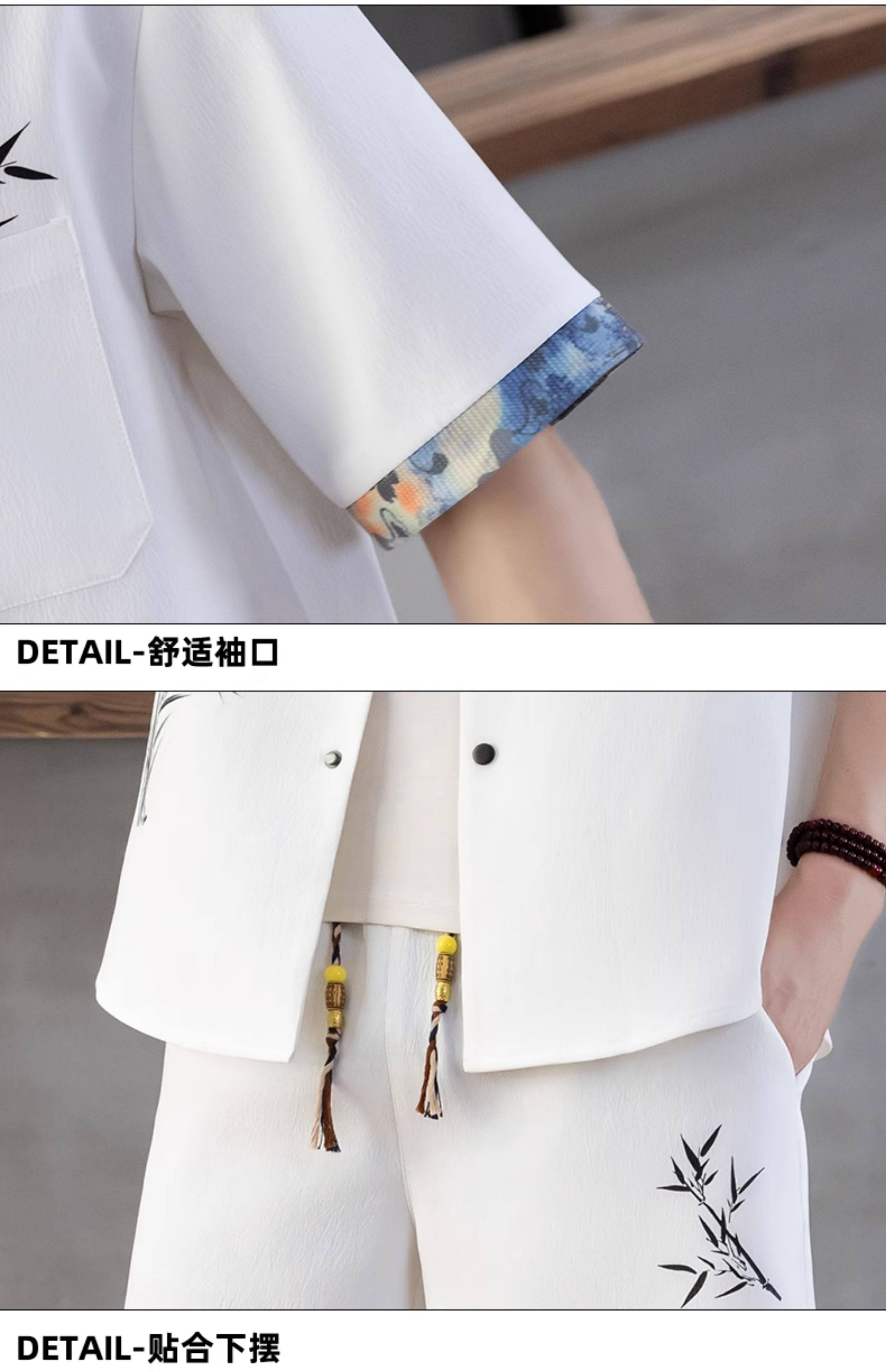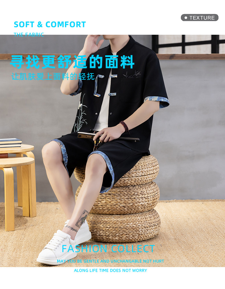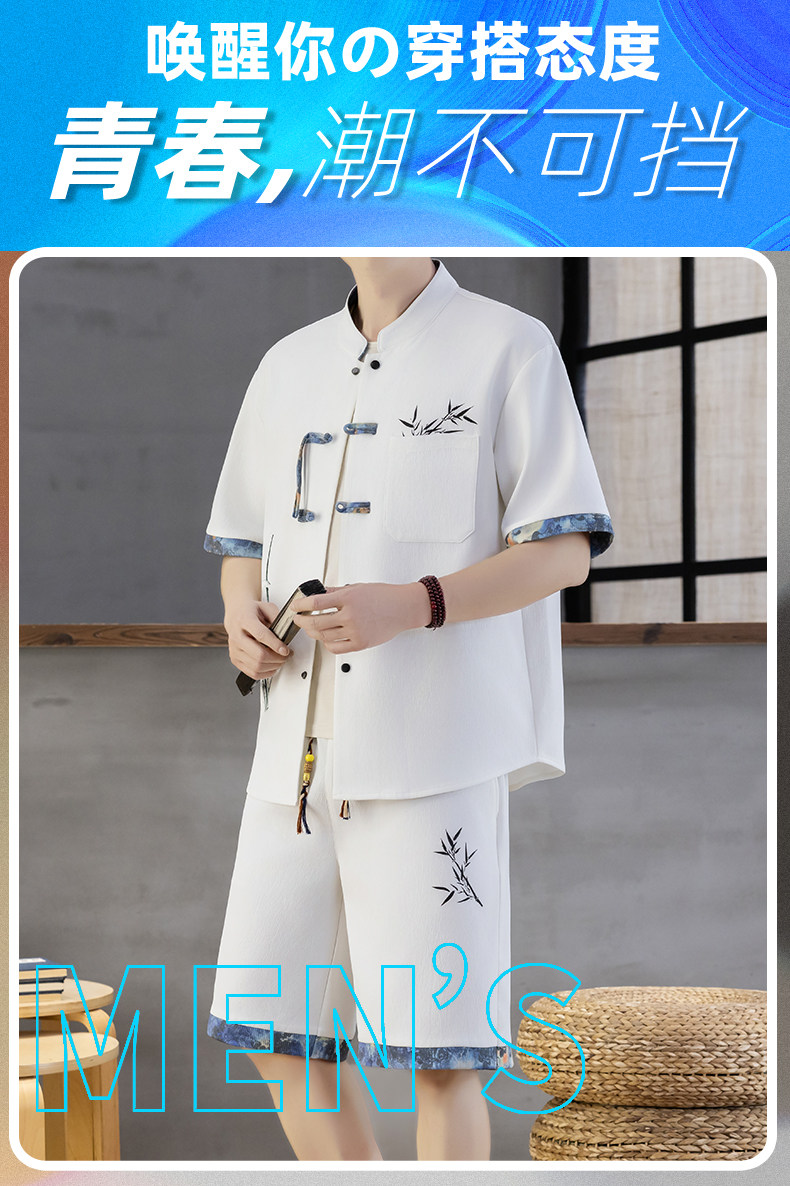 Chinese Style Short-Sleeved Shirt Men's Summer Suit Ice Silk Thin New Chinese Style Short-Sleeved T-Shirt Shirt-Style Two-Piece Set