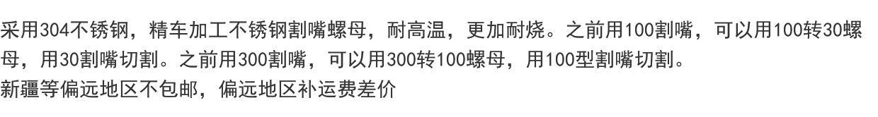 Color Classification Stainless Steel 100 Cutting Nozzle Nut (1 Piece),Stainless Steel 300 to 100 Cutting Nozzle Nut 1 Piece,Stainless Steel 100 Turns to 30 Cutting Nozzle Nut 1 Piece,5 Stainless Steel 100mm Cutting Nozzle Nuts,10 Stainless Steel 100mm Cutting Nozzle Nuts,5 Stainless Steel 300 to 100 Cutting Nozzle Nuts,10 Stainless Steel 300 to 100 Cutting Nozzle Nuts,Stainless Steel 100 Turn 30 Cutting Nozzle Nut 5 Pieces,10 Stainless Steel 100 Turn to 30 Cutting Nozzle Nuts,1 Stainless Steel 300 Cutting Nozzle Nut,5 Stainless Steel 300 Cutting Nozzle Nuts,10 Stainless Steel 300 Cutting Nozzle Nuts,1 Stainless Steel Type 30 Nut,Stainless Steel 100 Turn 30 Cutting Nozzle Nut 2 Pieces,2 Stainless Steel Type 30 Nuts,5 Stainless Steel Type 30 Nuts,10 Stainless Steel Type 30 Nuts,2 Stainless Steel 100 Cutting Nozzle Nuts,2 Stainless Steel 300 to 100 Cutting Nozzle Nuts,2 Stainless Steel 300 Cutting Nozzle Nuts
