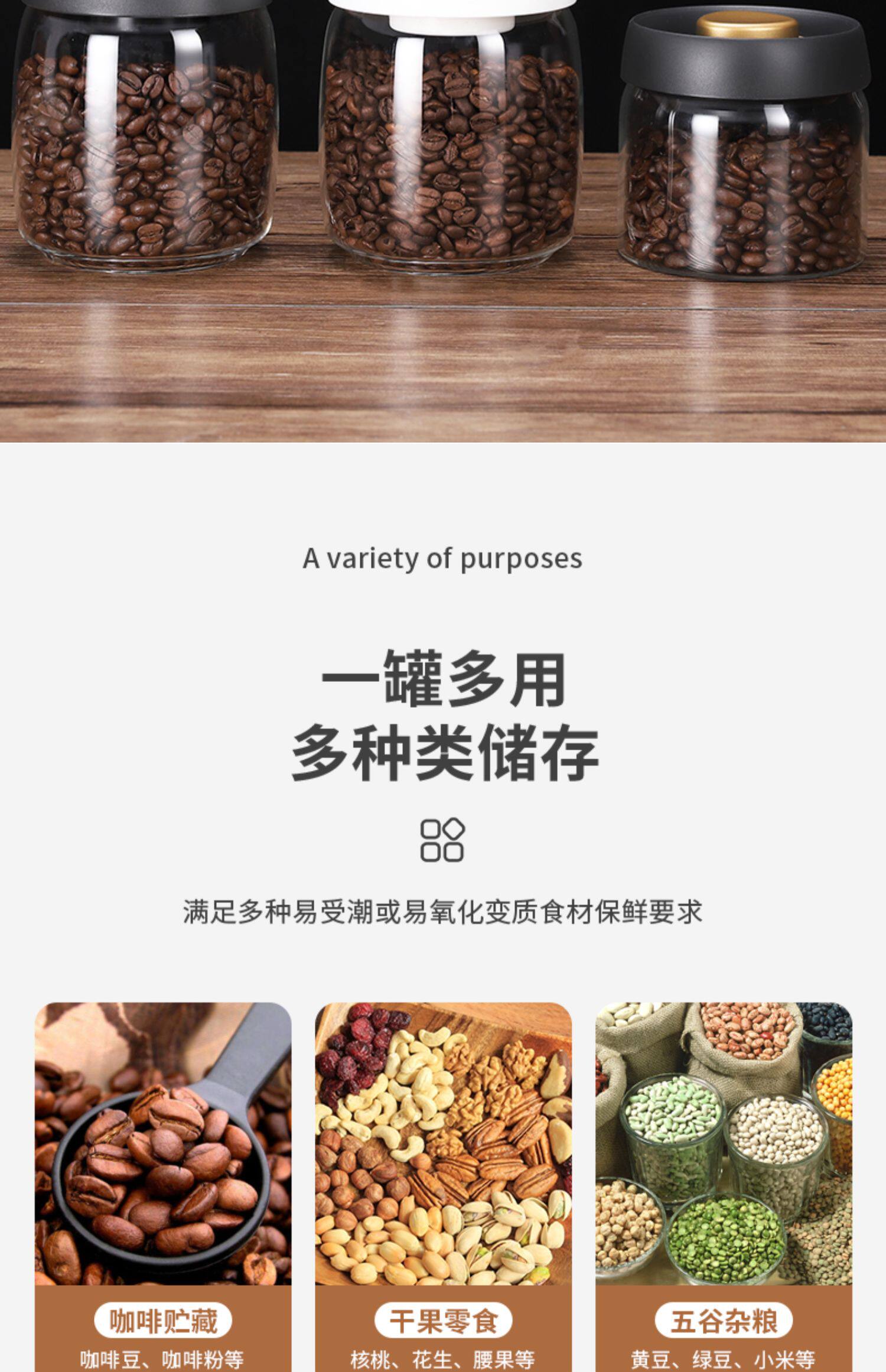 Mongdio Glass Sealed Jar Vacuum Coffee Bean Storage Jar Empty Tea Canister Food-Grade Large-Mouth Bean Jar