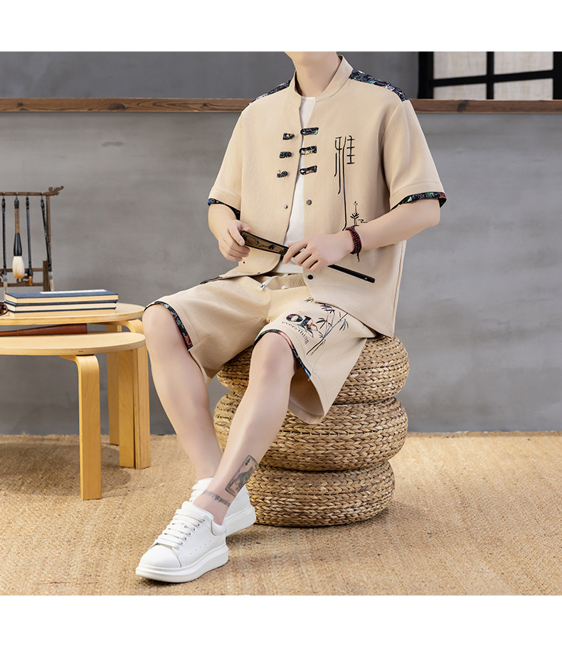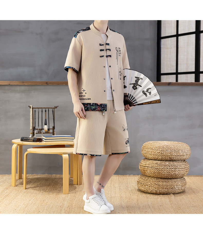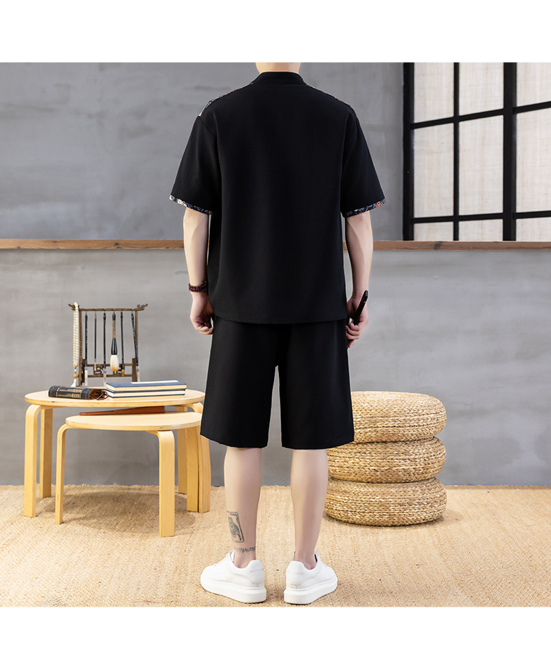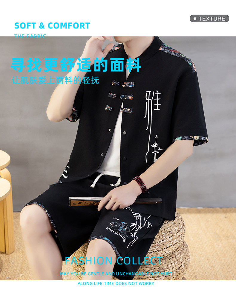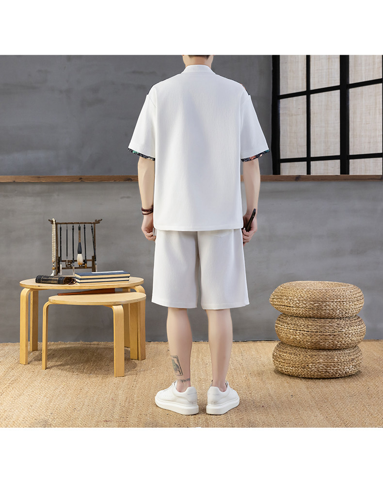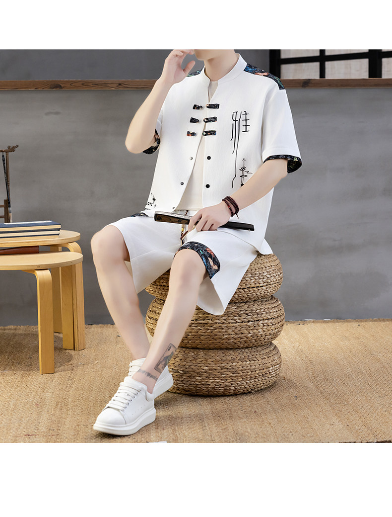 Chinese Style Casual Sports Suit for Men, Summer Thin Short-Sleeved Cardigan Shirt, Youth Loose Fit, National Trend Button-Up Clothing
