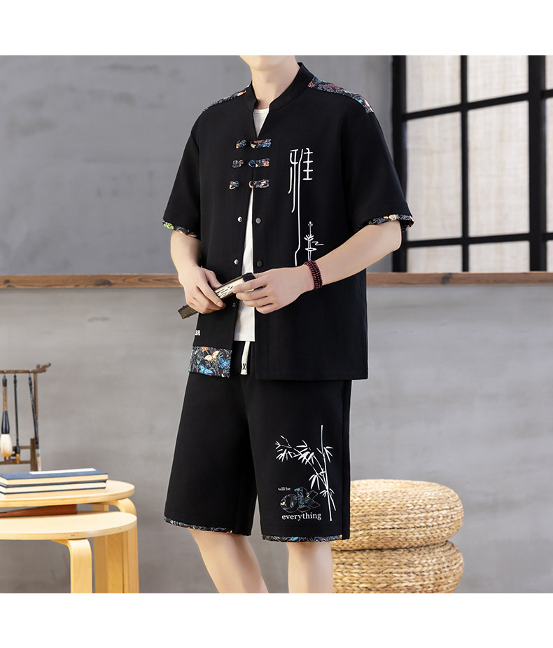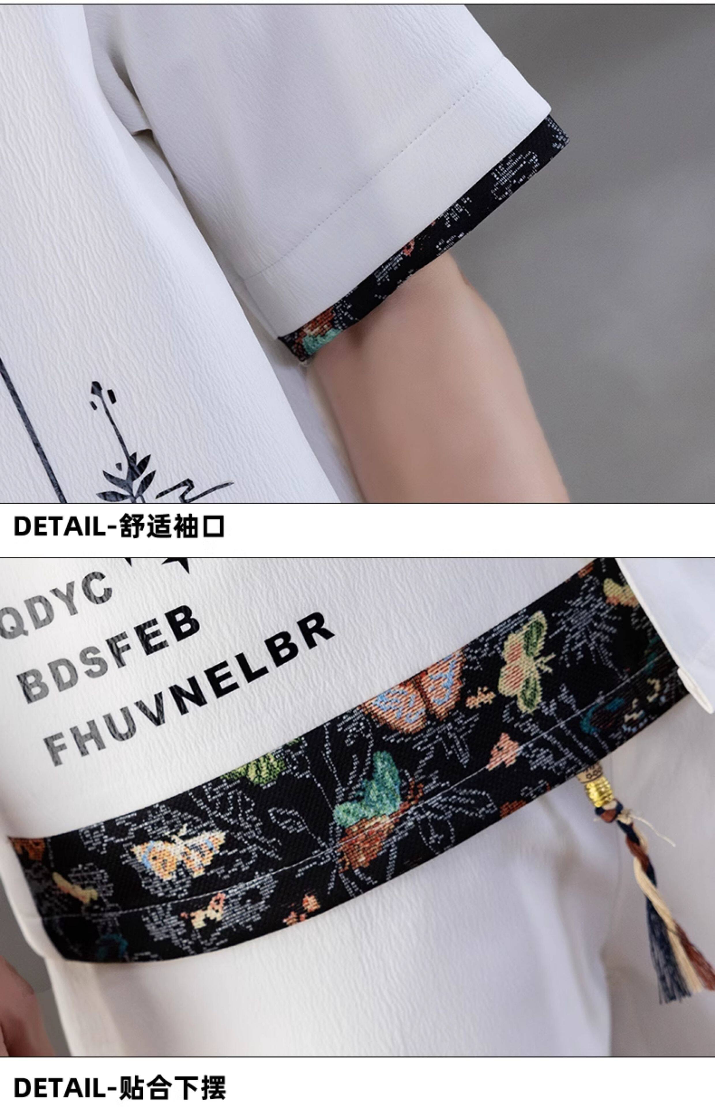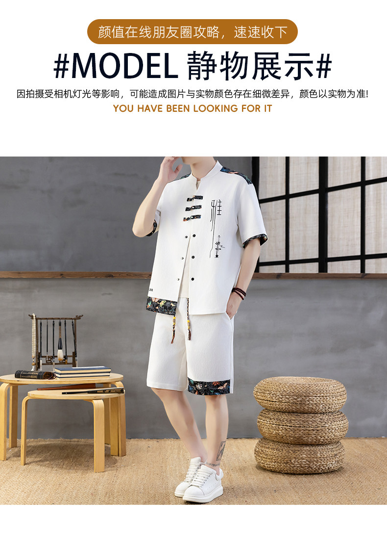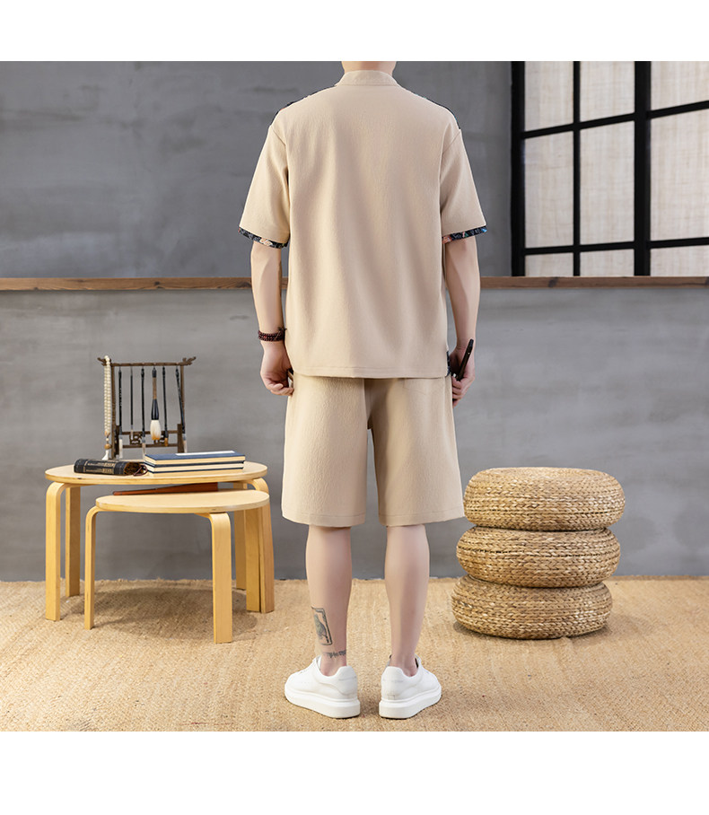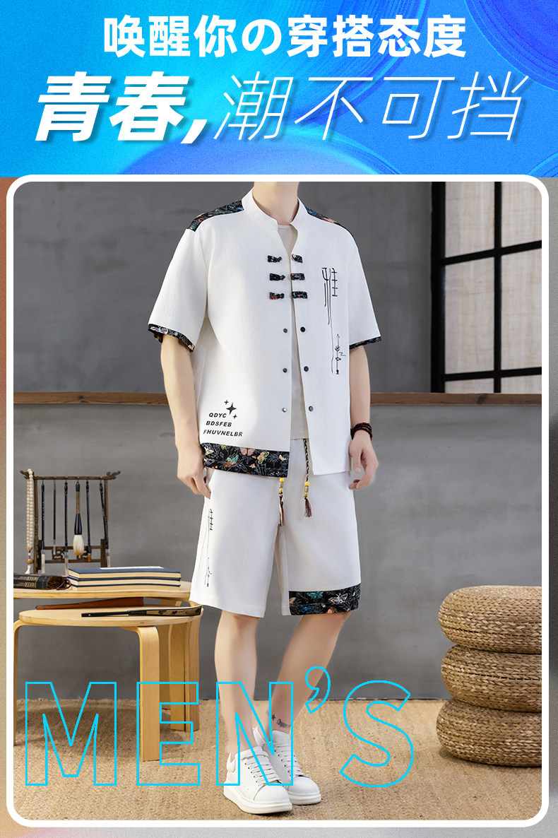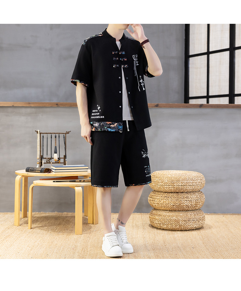 Chinese Style Casual Sports Suit for Men, Summer Thin Short-Sleeved Cardigan Shirt, Youth Loose Fit, National Trend Button-Up Clothing