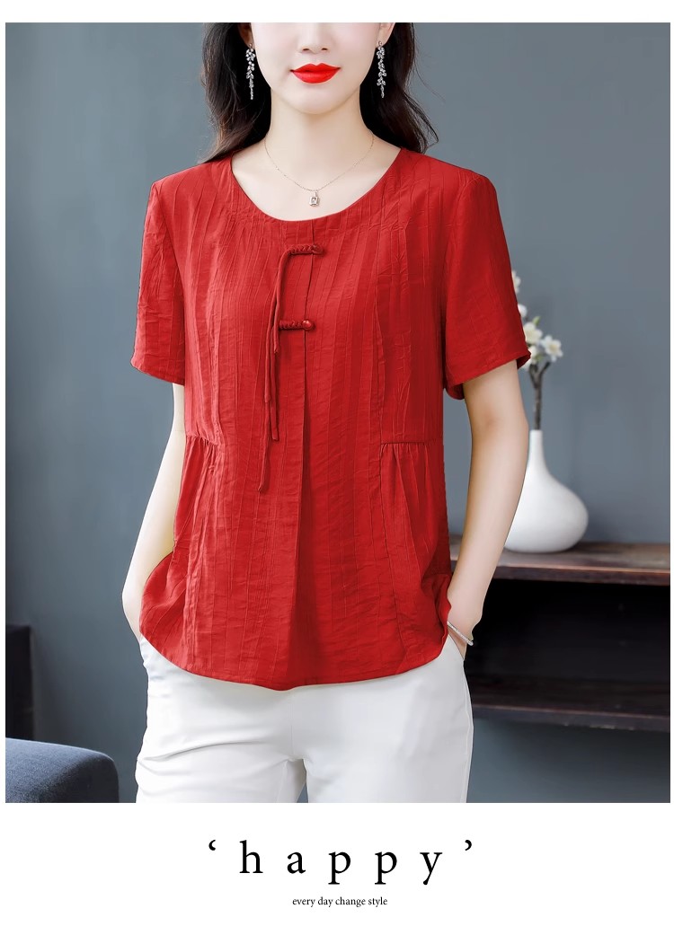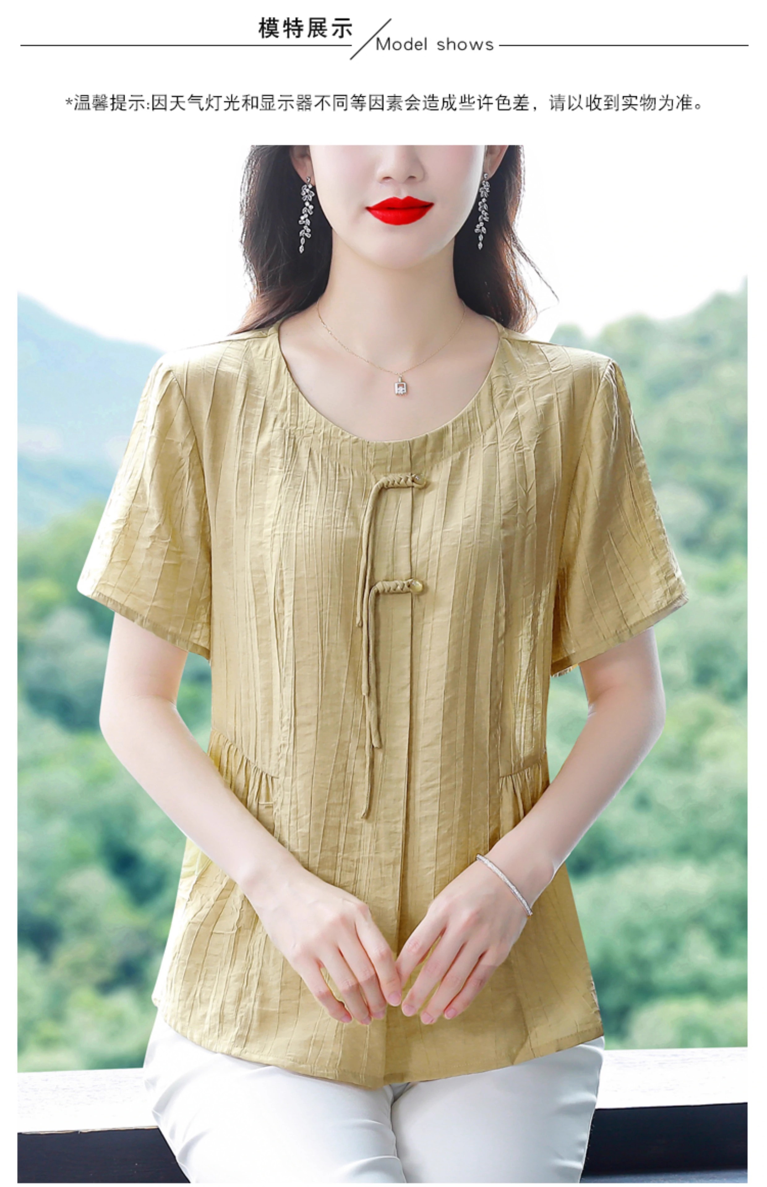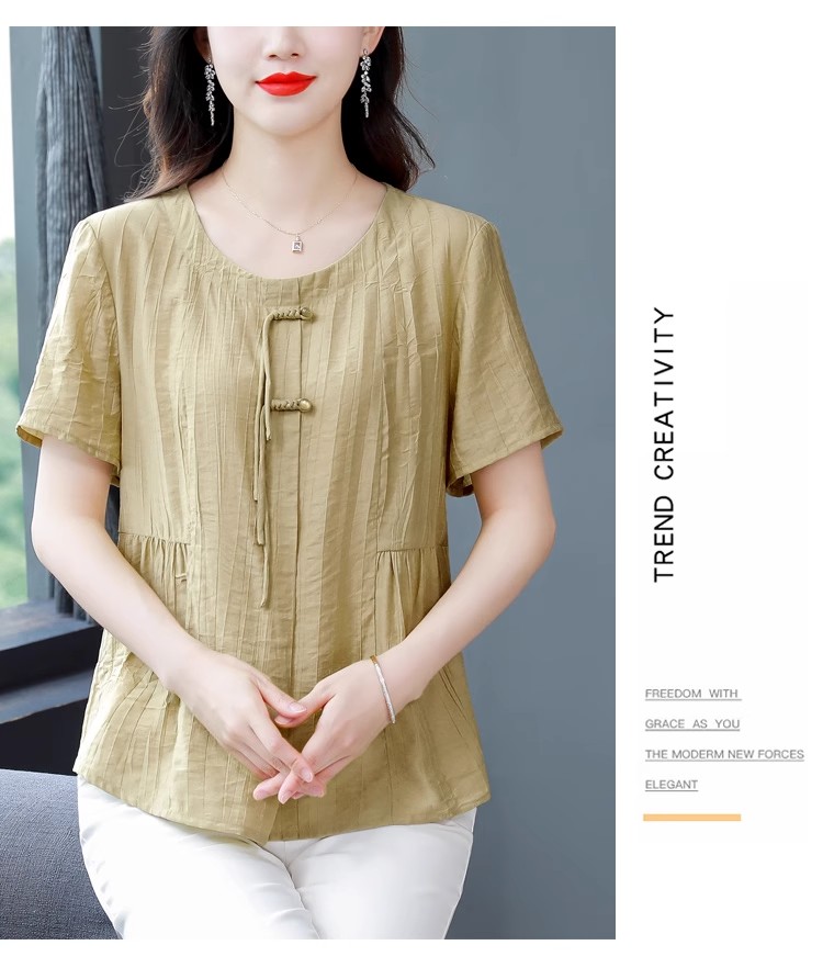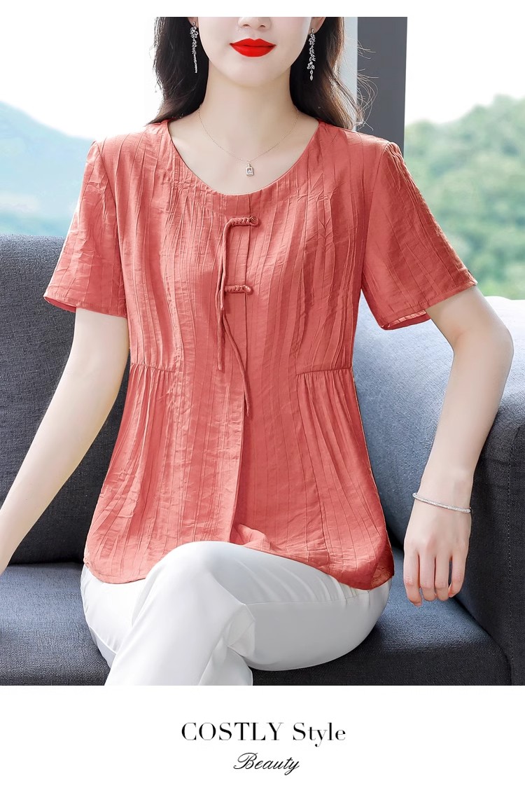 Kalvlta Cotton and Linen Short-Sleeved Shirt for Women Summer New Age-Reducing Loose Large Size Western-Style Shirt to Cover the Belly Top