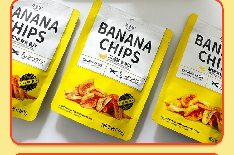 Imported from the Philippines, Dauger grass banana chips, crispy fruits, dried plantains, internet celebrity snacks 60g caramel original flavor