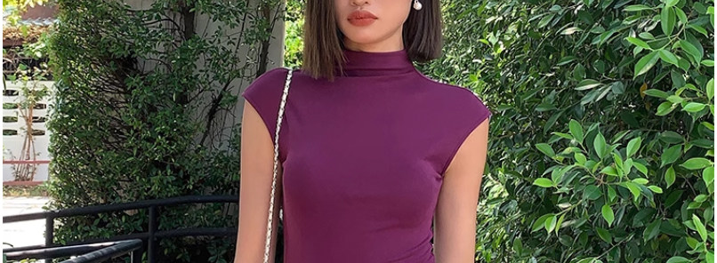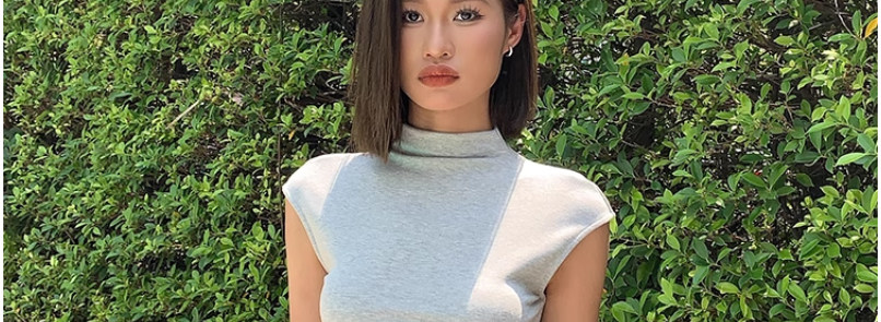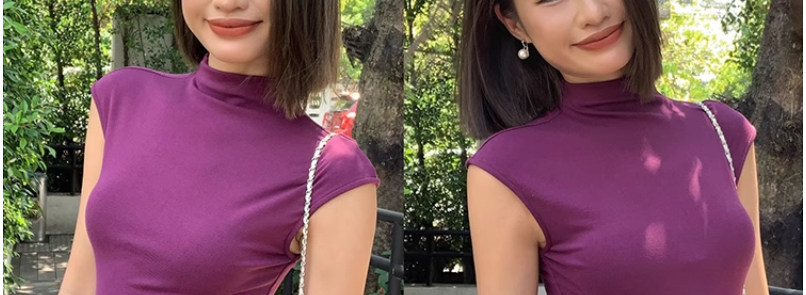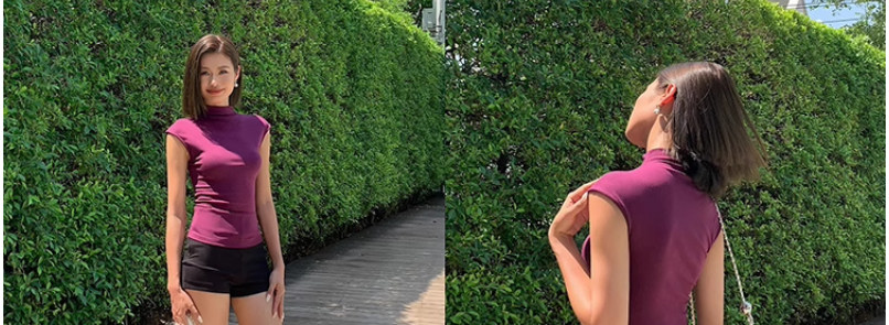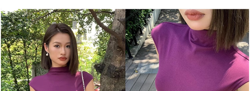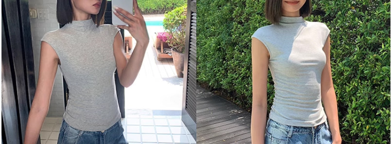 Designed Sleeveless Top with Small Flutter Sleeves for Women, Summer Style, Elegant Outerwear, Slim Fit, Sexy High-Neck T-Shirt