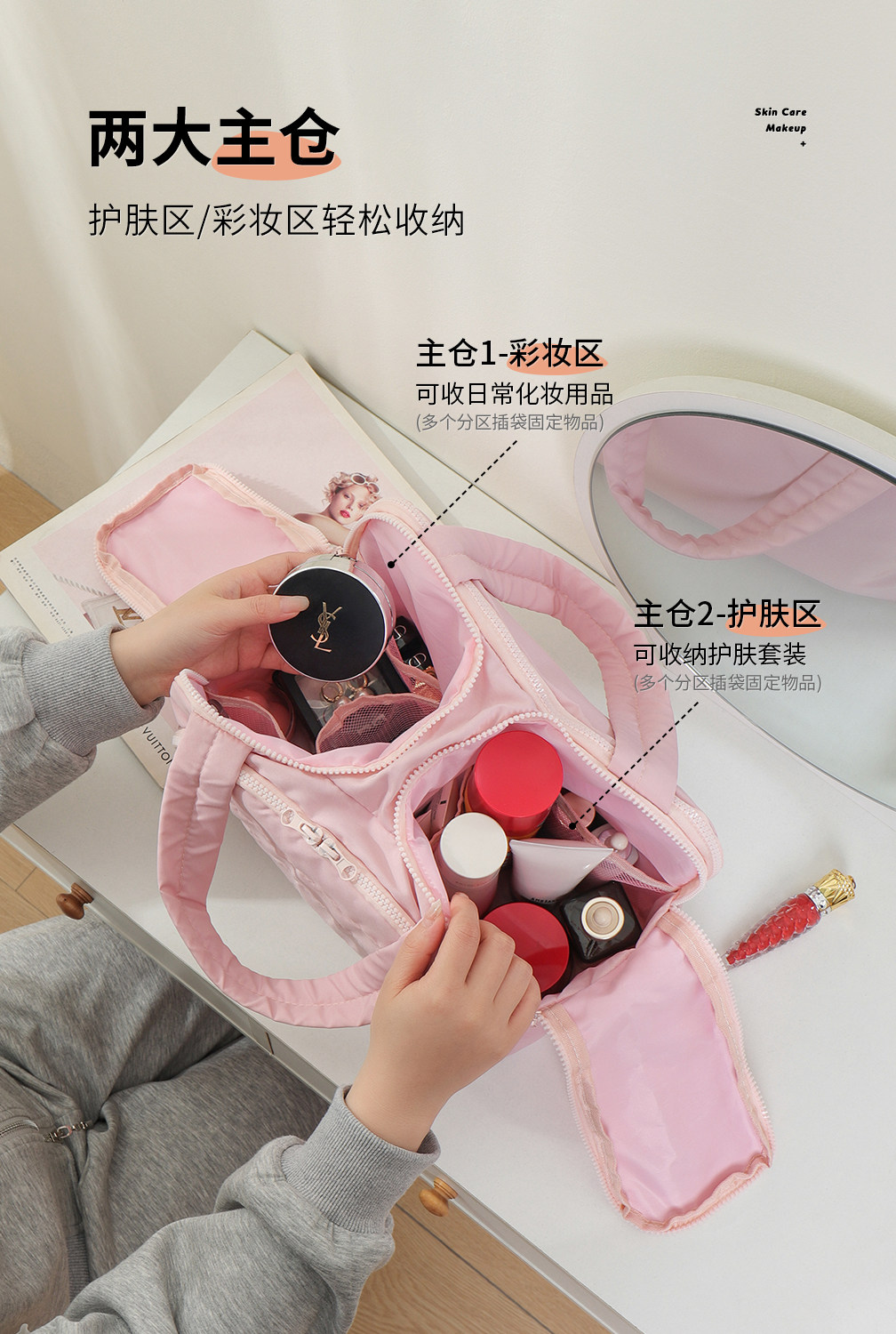 Large-Capacity Travel Toiletry Bag, Portable Double-Opening Cosmetic Bag, Portable Cosmetic and Toiletry Set Storage Bag