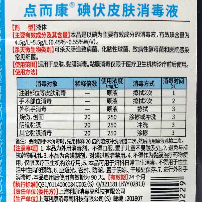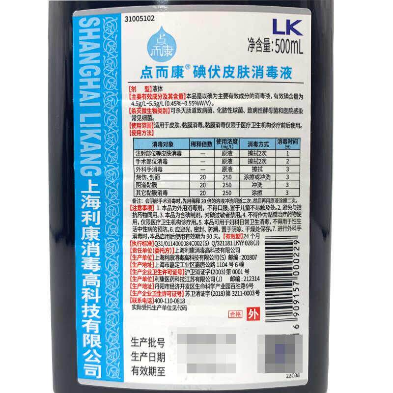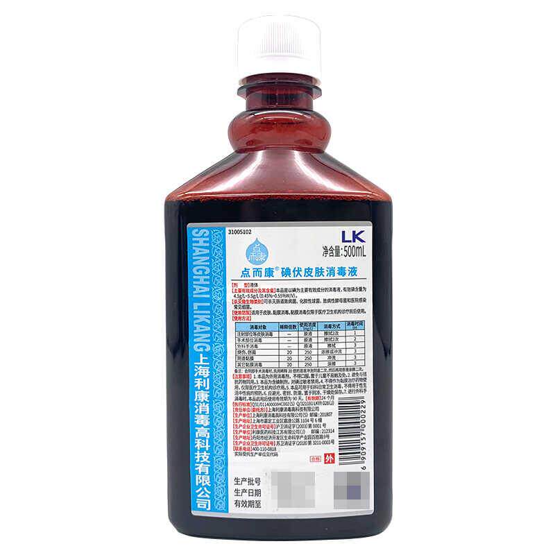 Shanghai Likan Dianerkang Iodophor Skin Disinfectant 500Ml/Bottle External Disinfectant