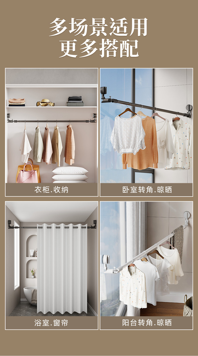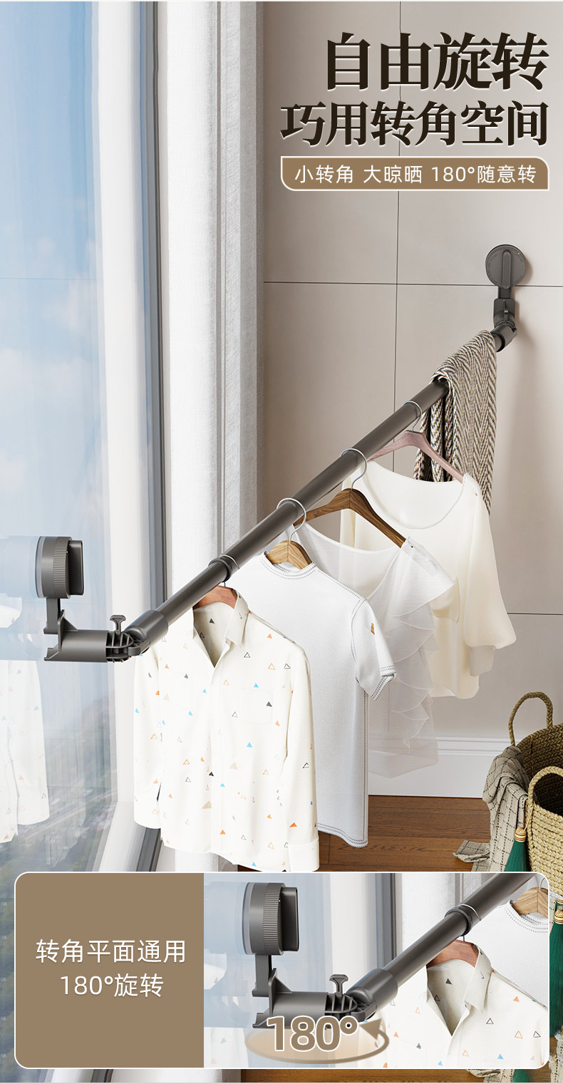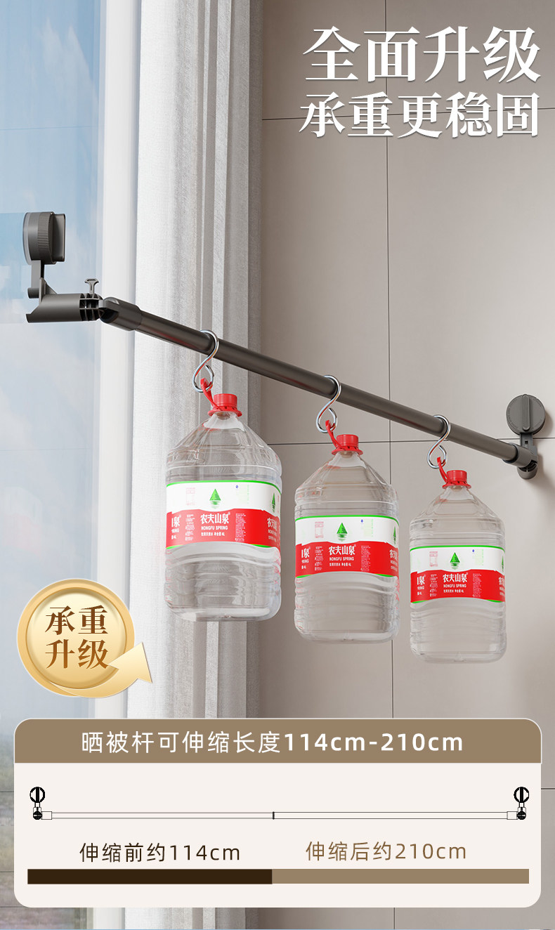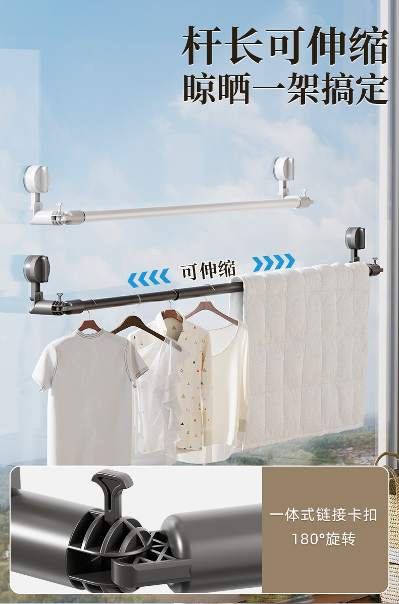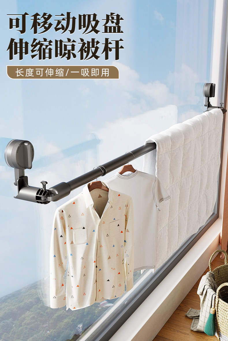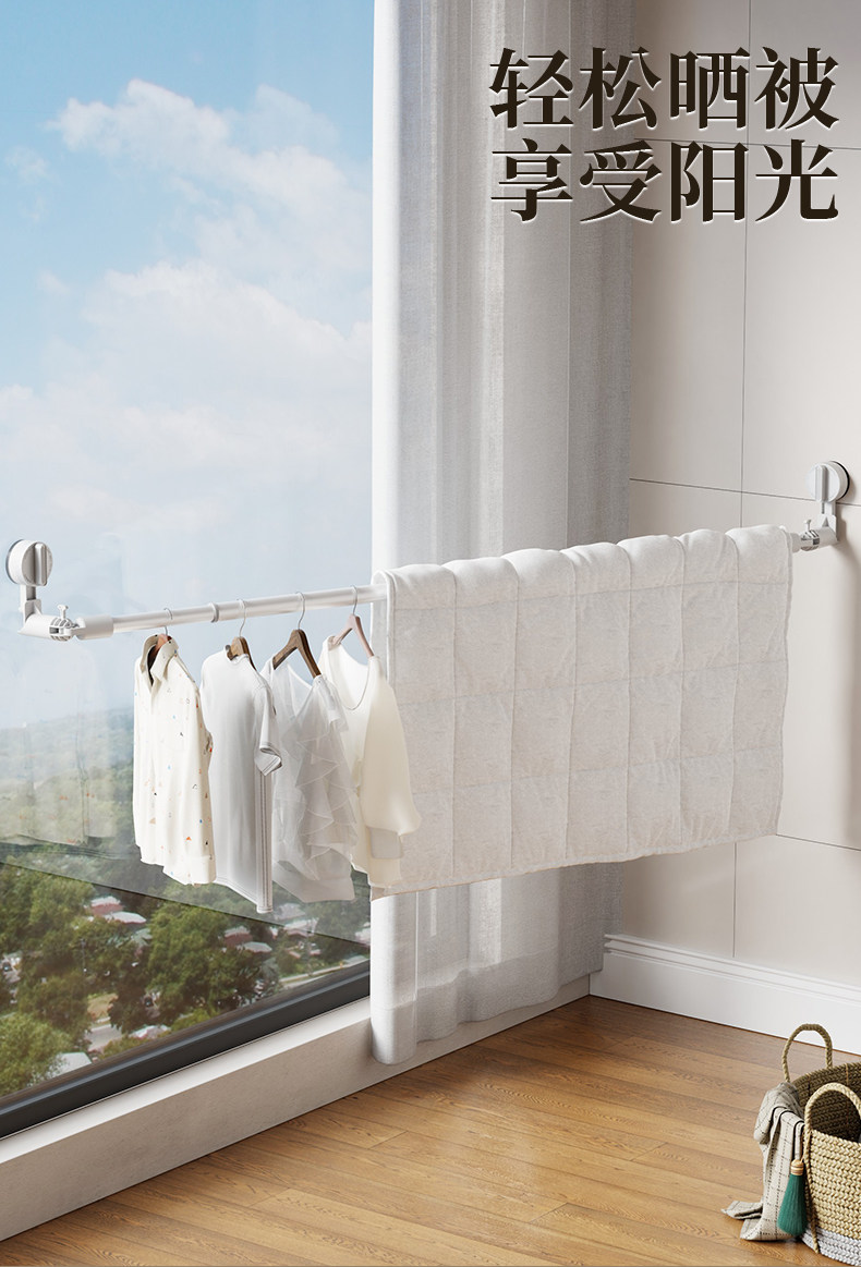 Suction Cup Clothes Drying Rack Telescopic Clothes Drying Rod Household Punch-Free Window Drying Quilt Balcony Space Use Clothes Drying Artifact