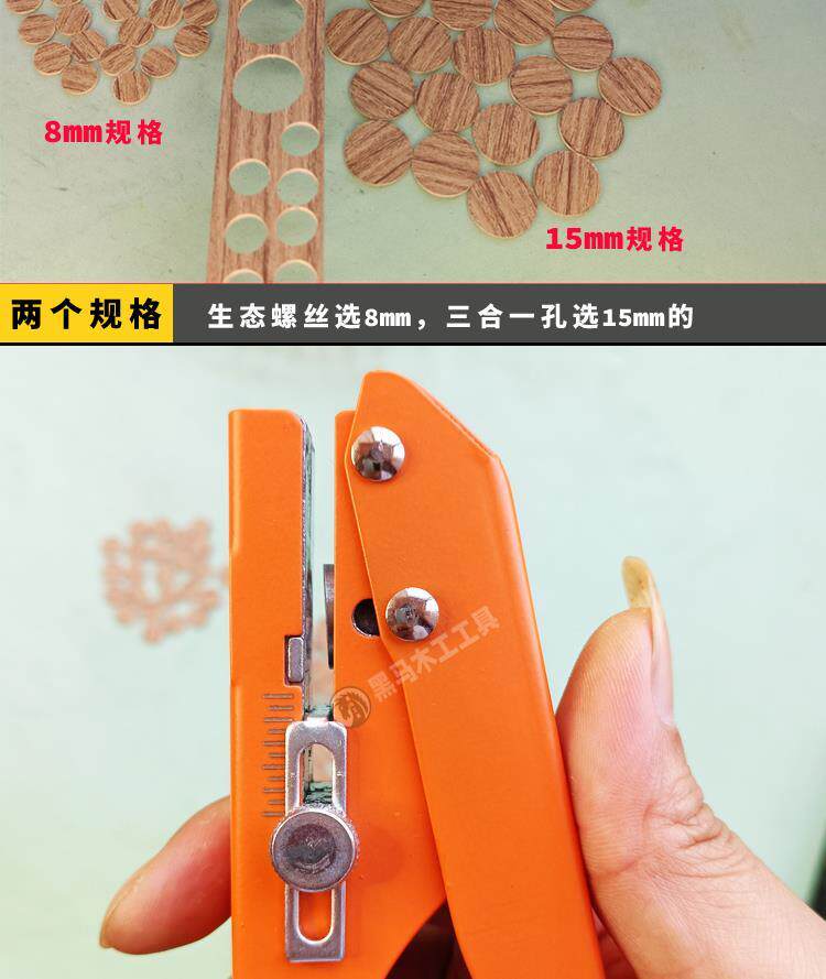 15mm All-Iron Edge Banding Strip Punching Pliers 8mm Ecological Screw Hole Covering Cap Three-In-One Woodworking Tool Clip