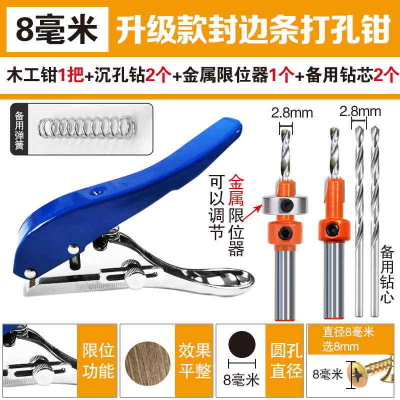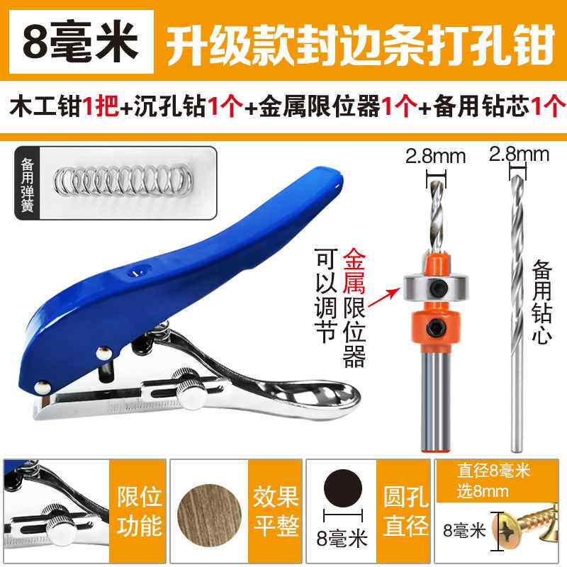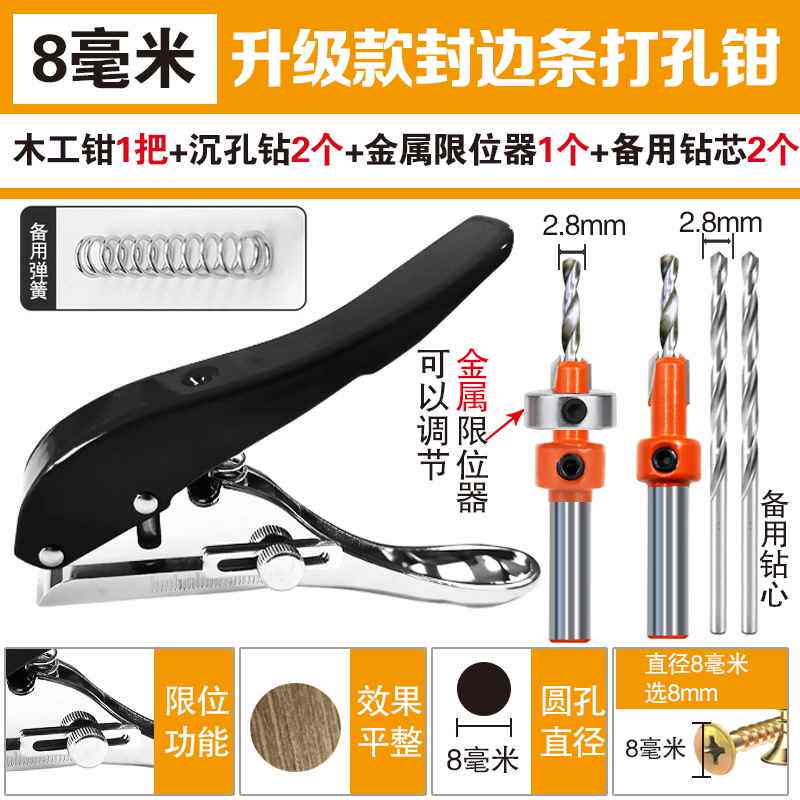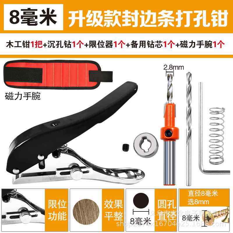 Color Classification Woodworking Pliers Black 10mm + 1 Countersunk Drill,Woodworking Pliers Black 6 mm + 1 Countersunk Drill,Woodworking Pliers Blue 8 mm + 1 Countersunk Drill + 1 Limiter,Woodworking Pliers Black 8 mm + 1 Countersunk Drill + 1 Limiter,Woodworking Pliers Black 8 mm + 2 Countersunk Drills + 1 Limiter,Black Edge Banding Strip Punching Pliers 10 mm 1 Piece,1 Countersink Drill 10*3 Drills + 1 Limiter,Countersink Drill 6*2.1 8 Drill + 1 Limiter,Countersink Drill 6*2.2 8 Drills + 2 Limiter,Black Edge Banding Strip Punching Pliers 8 mm 1 Piece,Black Edge Banding Strip Punching Pliers 6 mm 1 Piece,Blue Edge Banding Strip Punching Pliers 8 mm 1 Piece,Woodworking Pliers Black 10 mm + 2 Countersunk Drills + 1 Limiter,Countersink Drill 8*2.1 8 Drill + 1 Limiter,Woodworking Pliers Black 6 mm + 2 Countersunk Drills + 1 Limiter,Woodworking Pliers Blue 8 mm + 2 Countersunk Drills + 1 Limiter,Countersink Drill 8*2.2 8 Drills + 2 Limiter,Heavy-Duty Upgraded Edge Banding Strip Punching 15 mm,Heavy-Duty Upgraded Edge Banding Strip Punching 12 mm,Heavy-Duty Upgraded Edge Banding Strip Punching 10 mm,Heavy-Duty Upgraded Edge Banding Strip Punching 8 mm,Heavy-Duty Upgraded Edge Banding Strip Punching 14 mm,Woodworking Pliers Black 8mm + Countersunk Drill + Limiter + Iron Wrist,Lazy Man Suction Iron Wrist Red 1 Piece