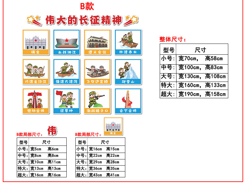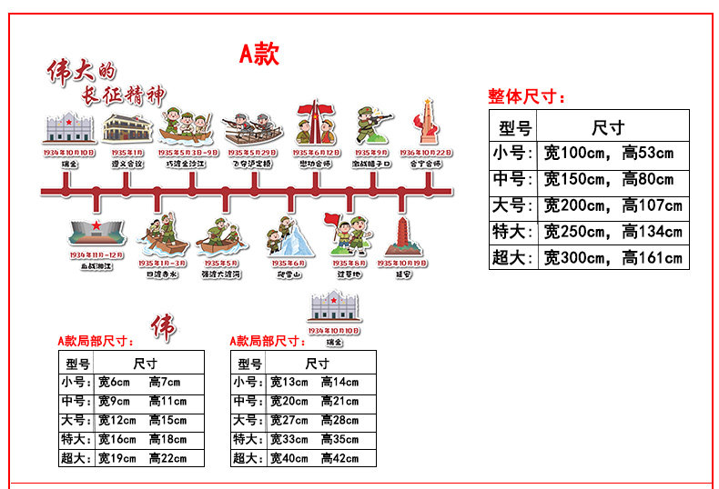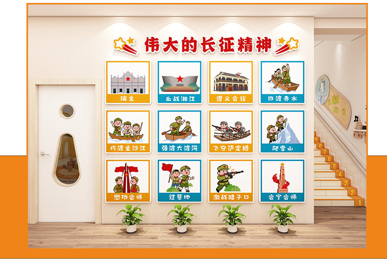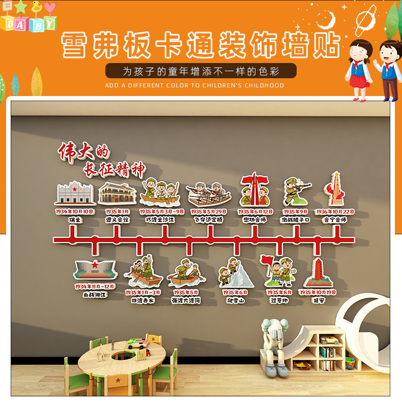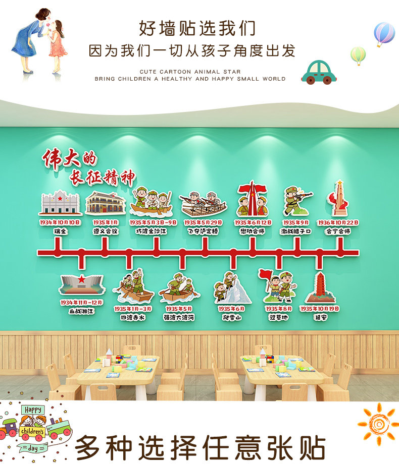 Kindergarten Environmental Innovation Theme Wall Finished Product Red Patriotic Theme Long March Spirit Cultural Wall Sticker Corridor Wall Decoration
