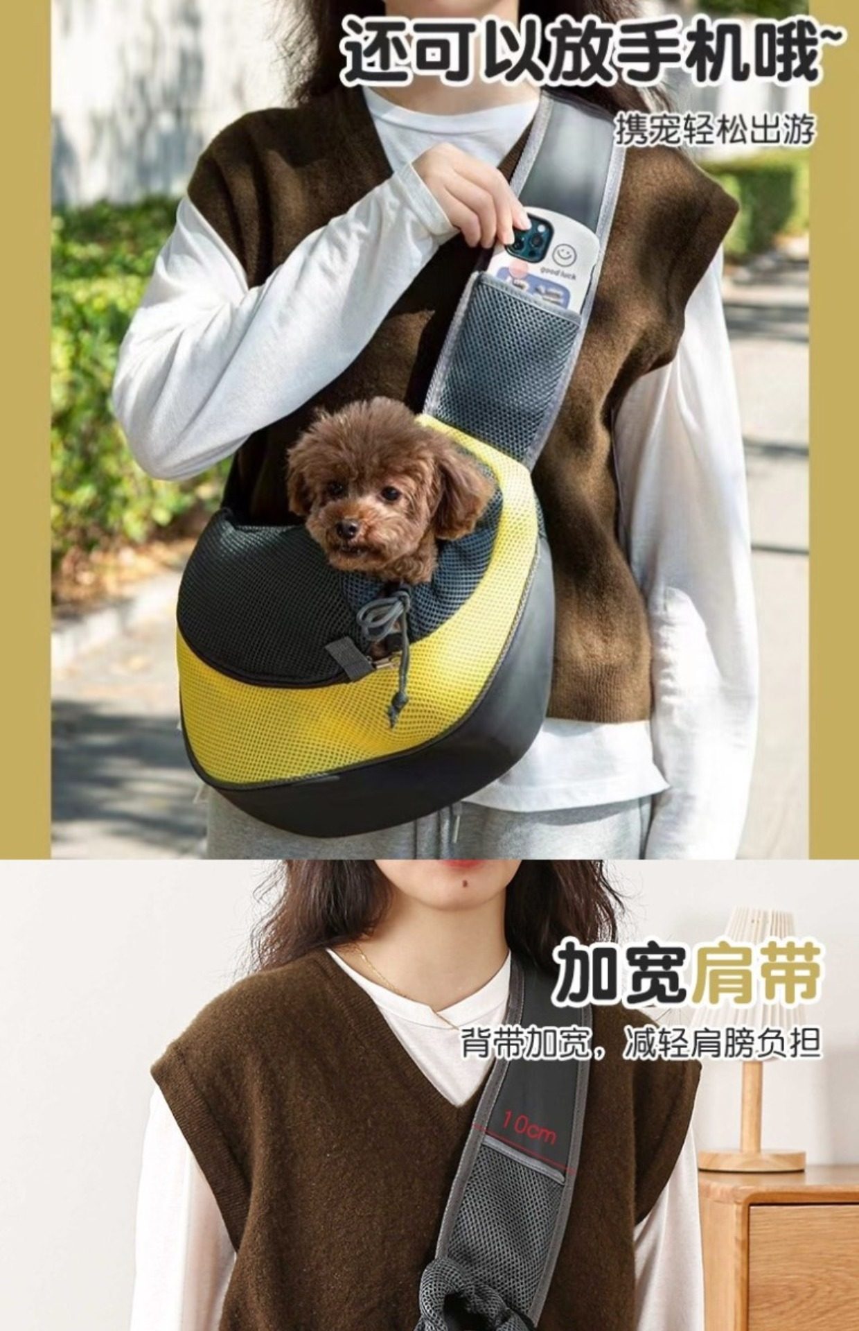 Dog Cycling Backpack, Cat Carrier, Portable Crossbody Bag for Outings, Teddy, Pomeranian, Small Pet Chest Bag with Breathable Mesh
