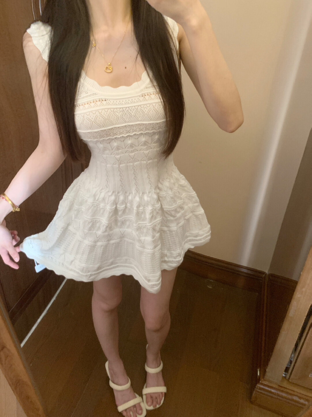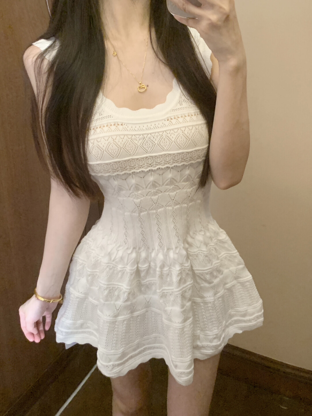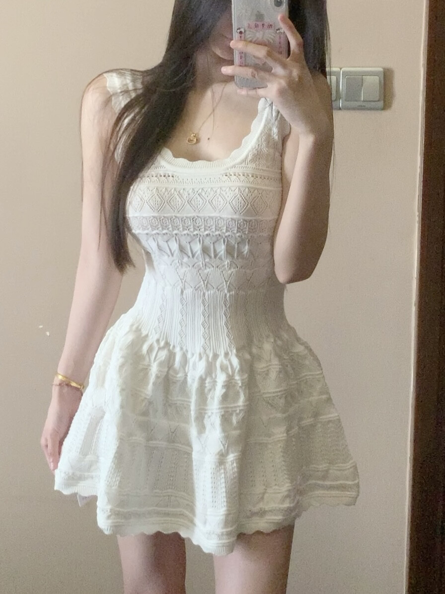 French style hollow knitted vest dress for women spring and summer new design niche waist slimming short skirt trend