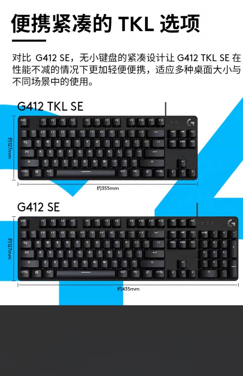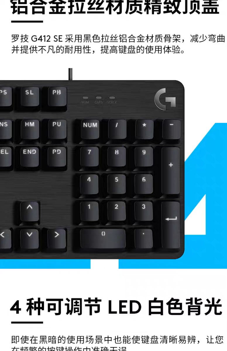Logitech G412 Se Wired Backlit Gaming Mechanical Keyboard E-Sports Gaming Tea Switch 104-Key Computer Peripherals