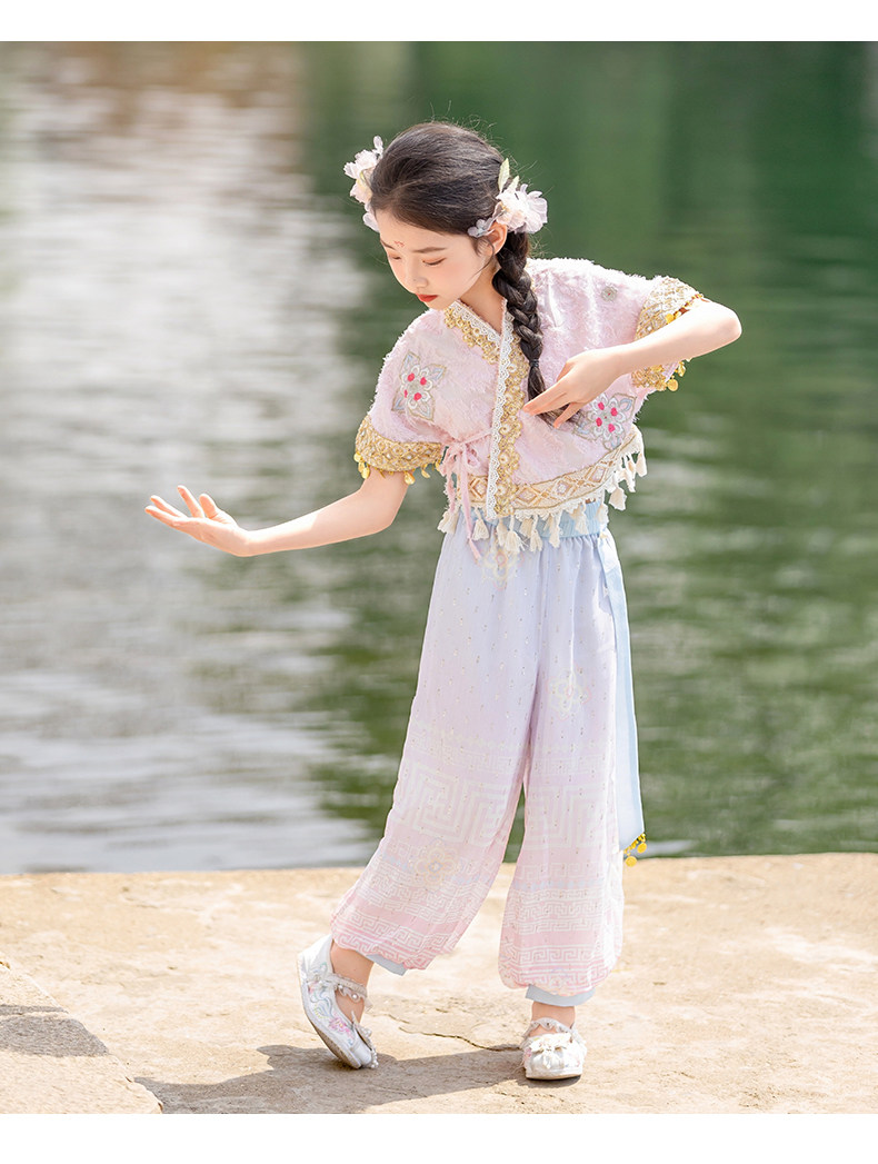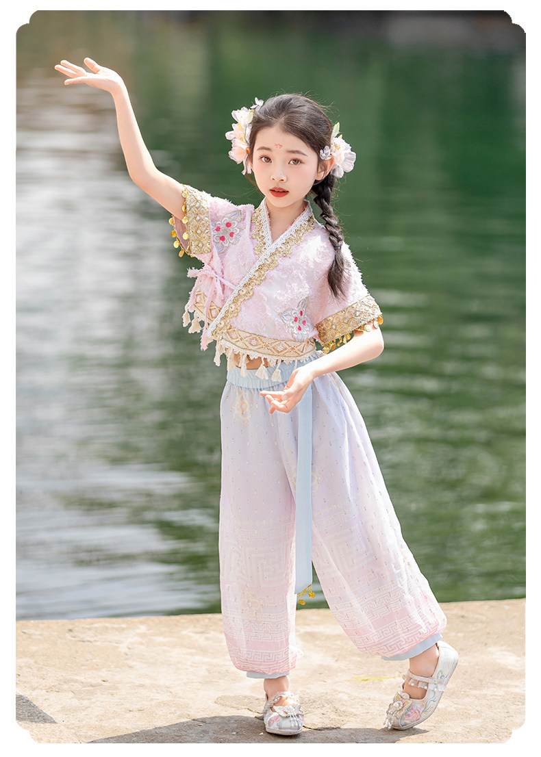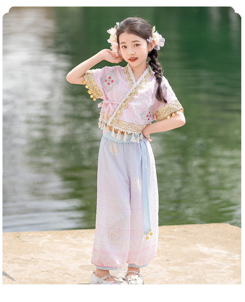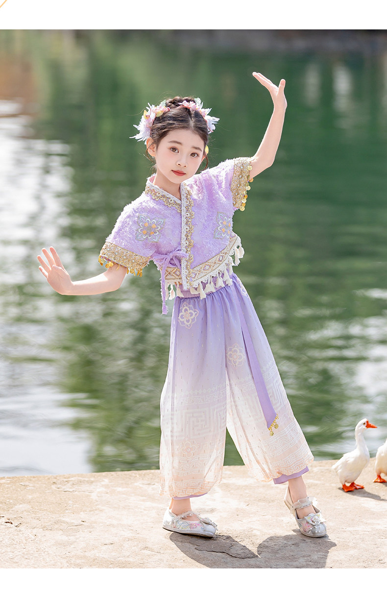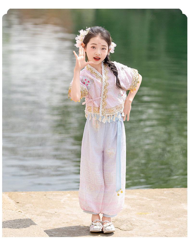 Minority Exotic Dai Clothing Girls Chinese Style Han Dynasty Tang Suit Kidsren's Dance Performance Clothing Set