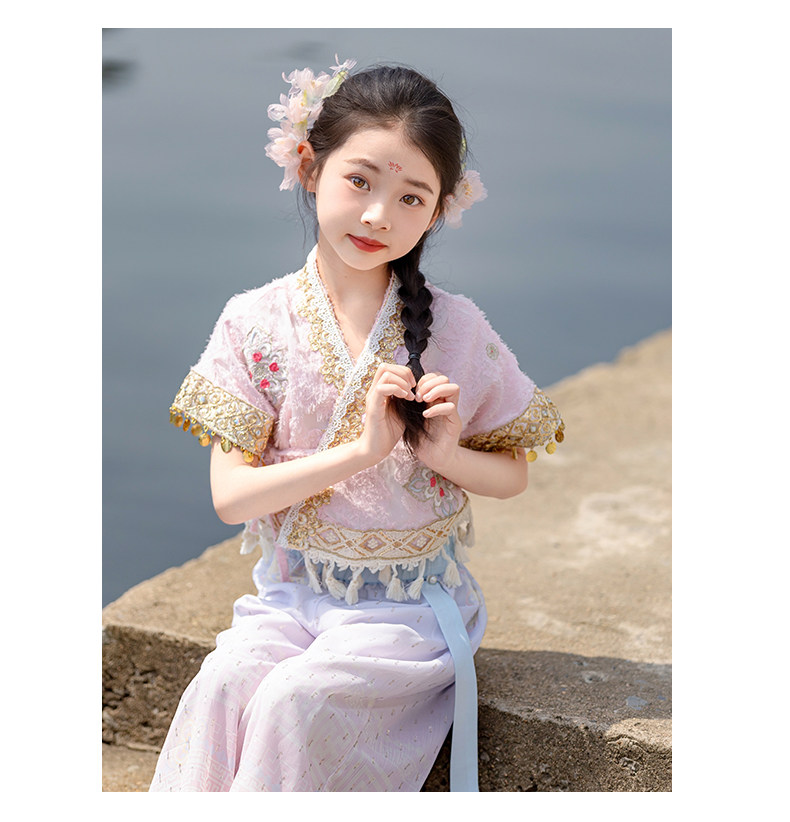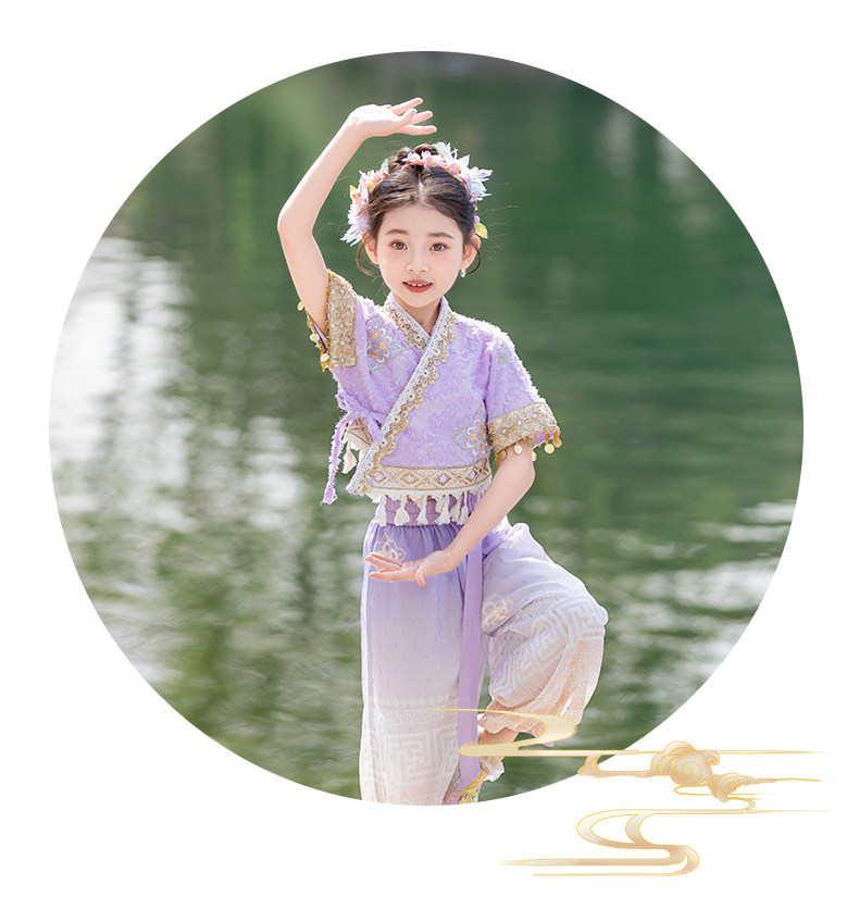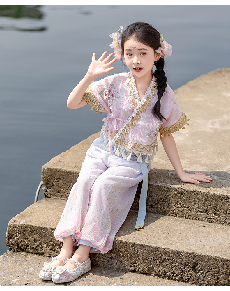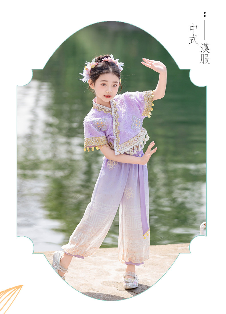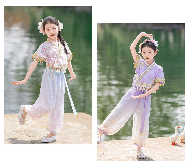 Minority Exotic Dai Clothing Girls Chinese Style Han Dynasty Tang Suit Kidsren's Dance Performance Clothing Set
