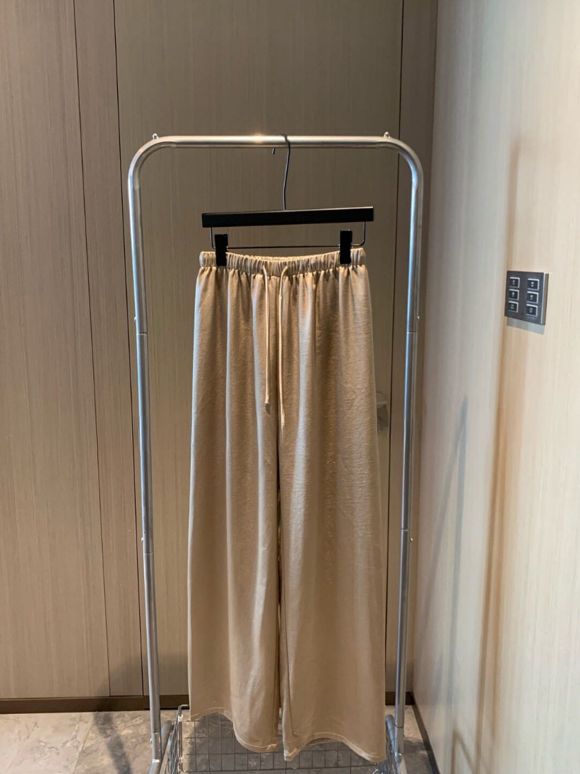 Popw LAOSHU Old Money Casual Imitation Acetate Summer Lazy Drawstring Elastic Waist Wide Leg Slimming Long Pants